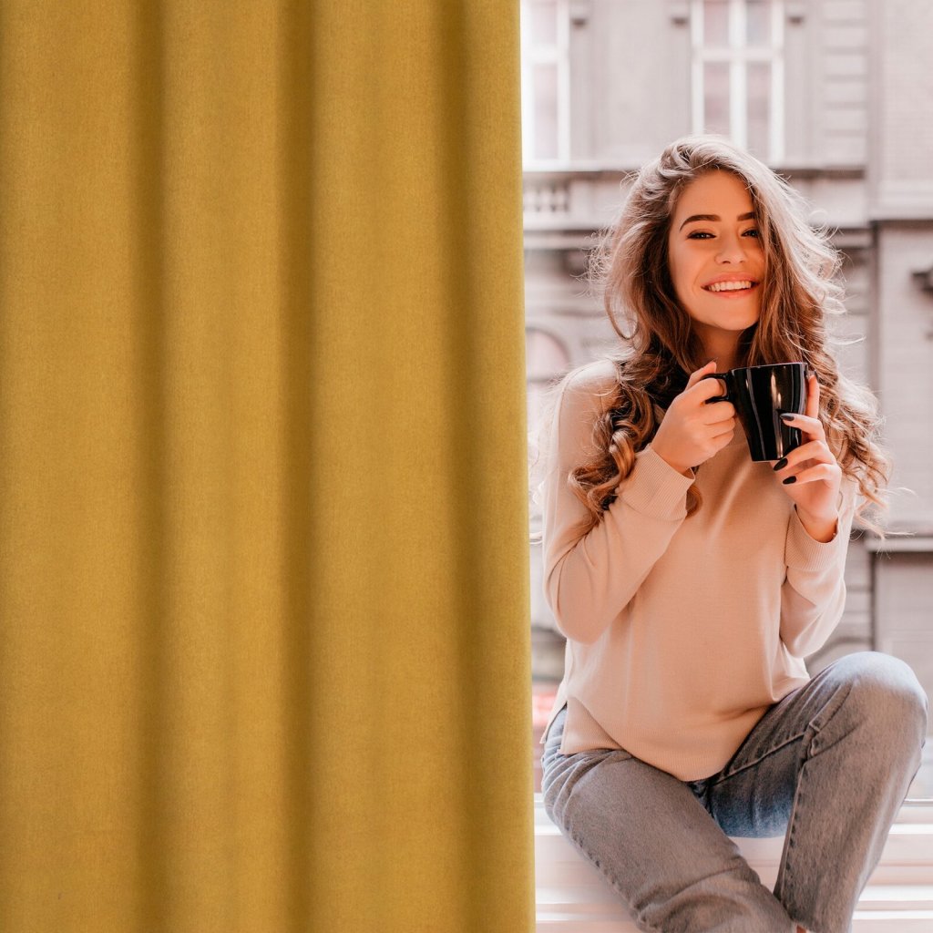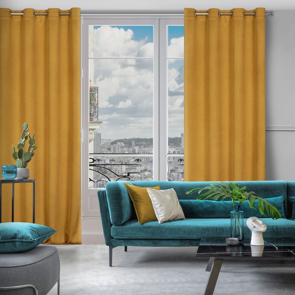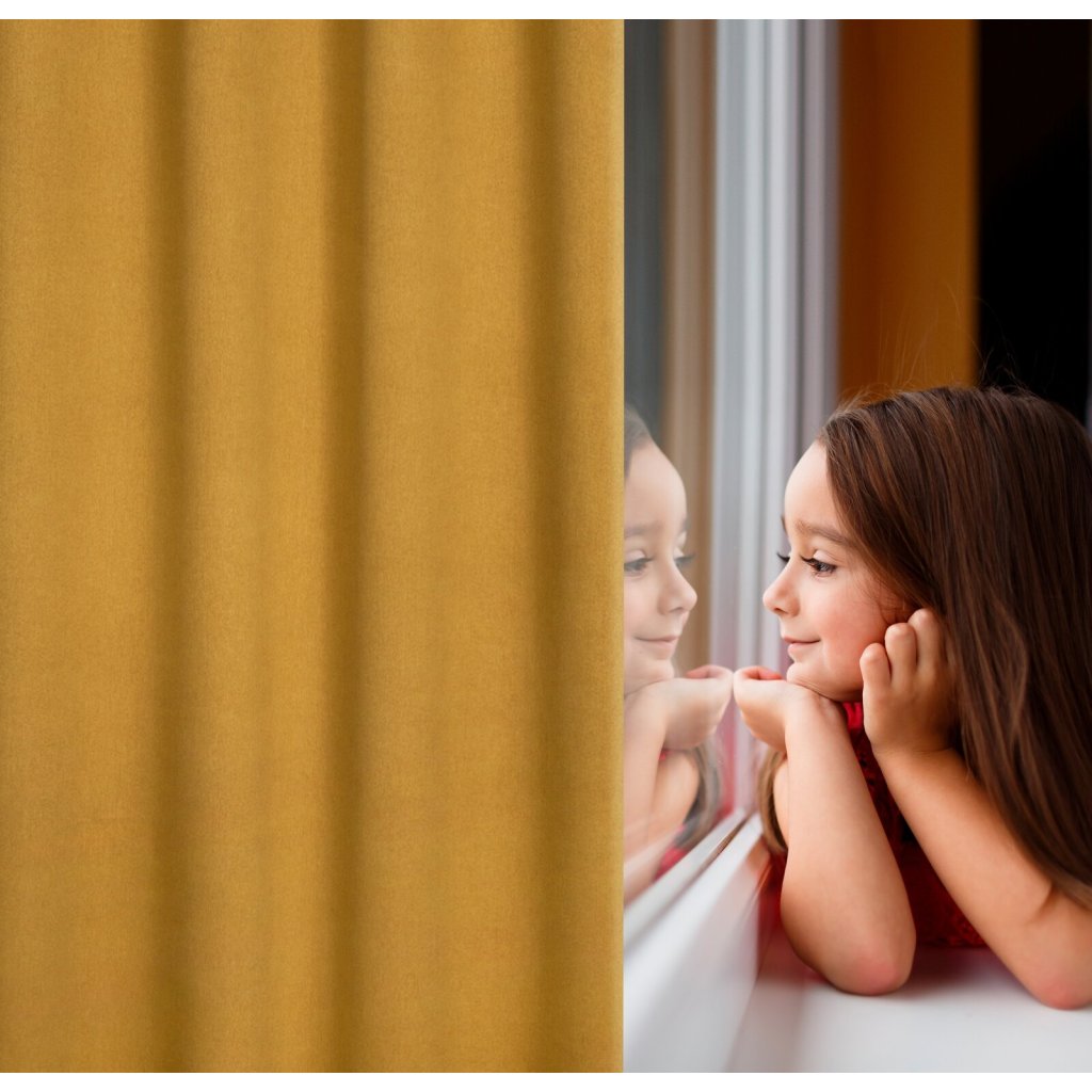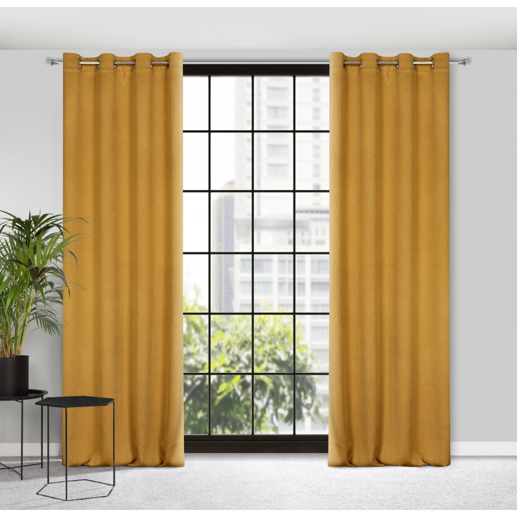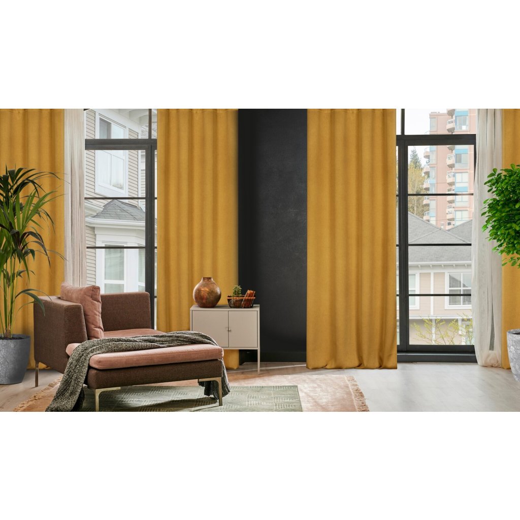 Zatemňovací jednobarevný strukturovaný závěs šířka: 135 cm, délka: 250 cm, barva: hořčicová, hmotnost: 340 GSM, složení: 100 % polyesterDoplňkové parametry
