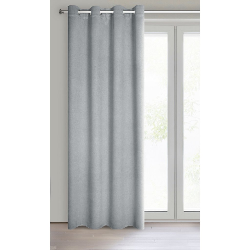 Jednobarevný strukturovaný zatemňovací závěs šířka: 135 cm, délka: 250 cm, barva: stříbrná, hmotnost: 340 GSM, složení: 100 % polyesterDoplňkové parametry