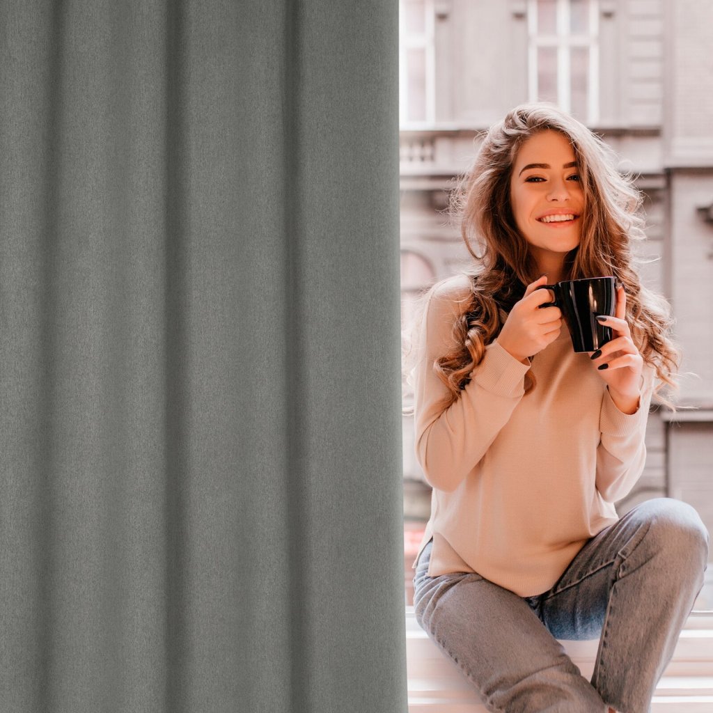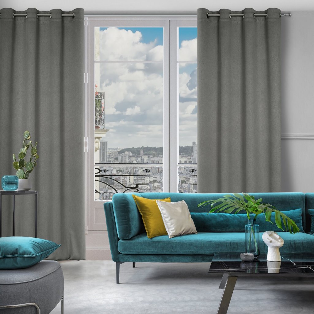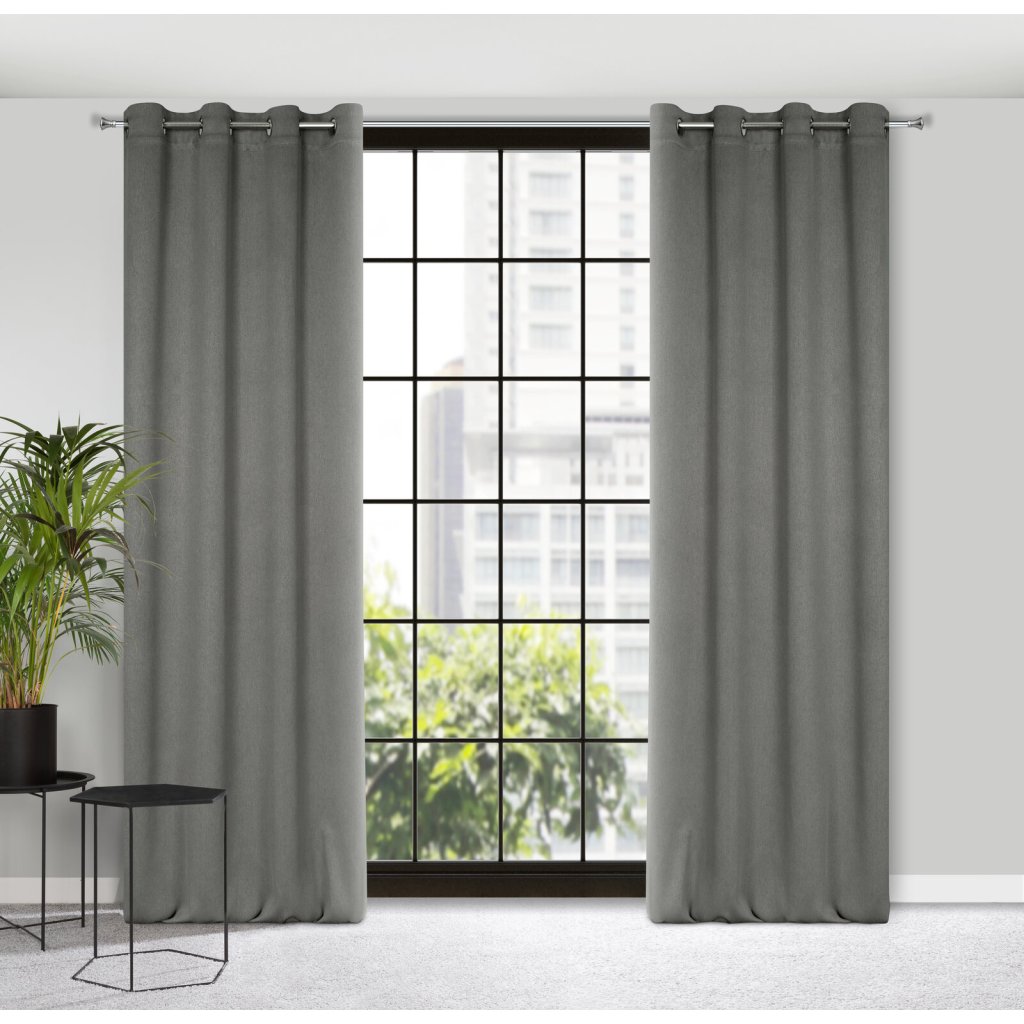 Zatemňovací jednobarevný strukturovaný závěs šířka: 135 cm, délka: 250 cm, barva: šedá, hmotnost: 340 GSM, složení: 100 % polyesterDoplňkové parametry