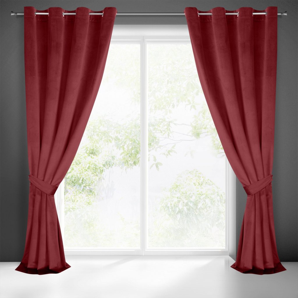 Sametový jednobarevný závěs se šňůrou šířka: 140 cm, délka: 270 cm, barva: bordó, hmotnost: 200 GSM, složení: 100 % polyesterDoplňkové parametry