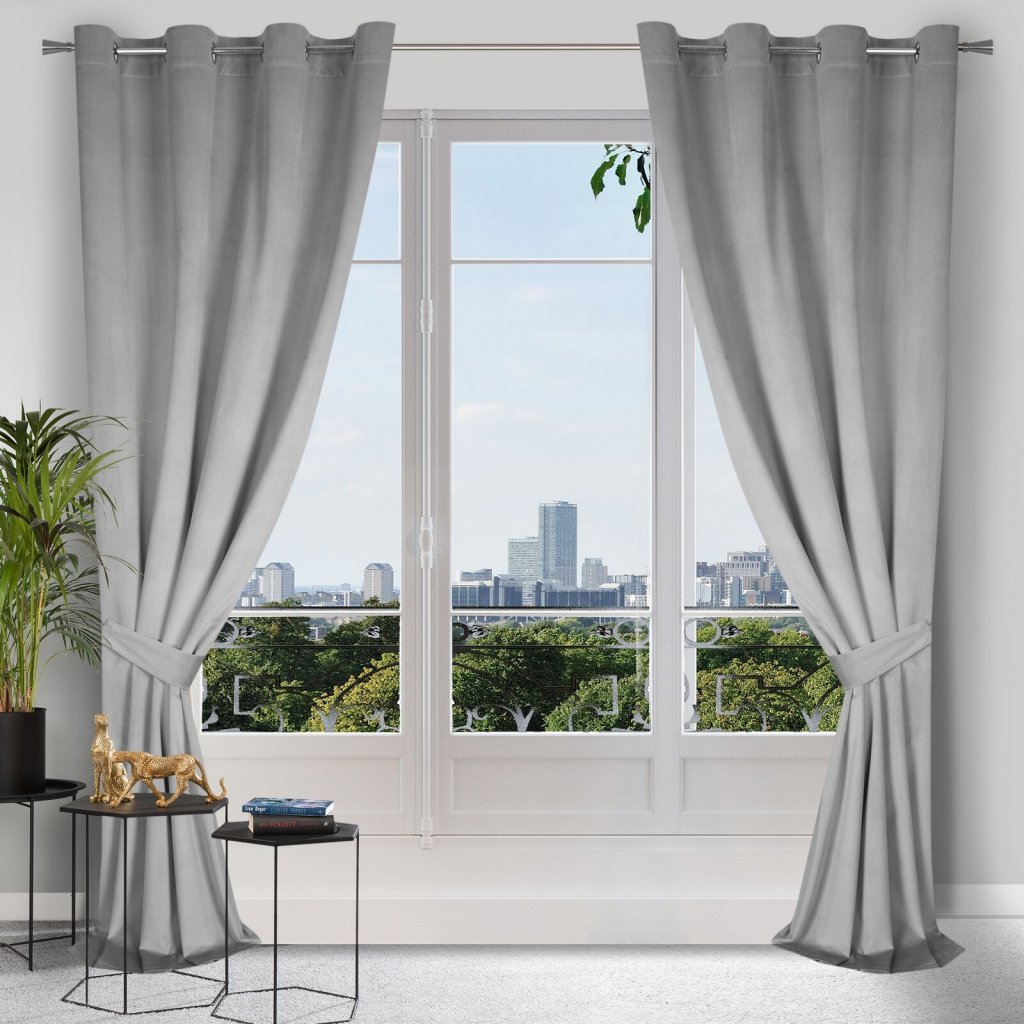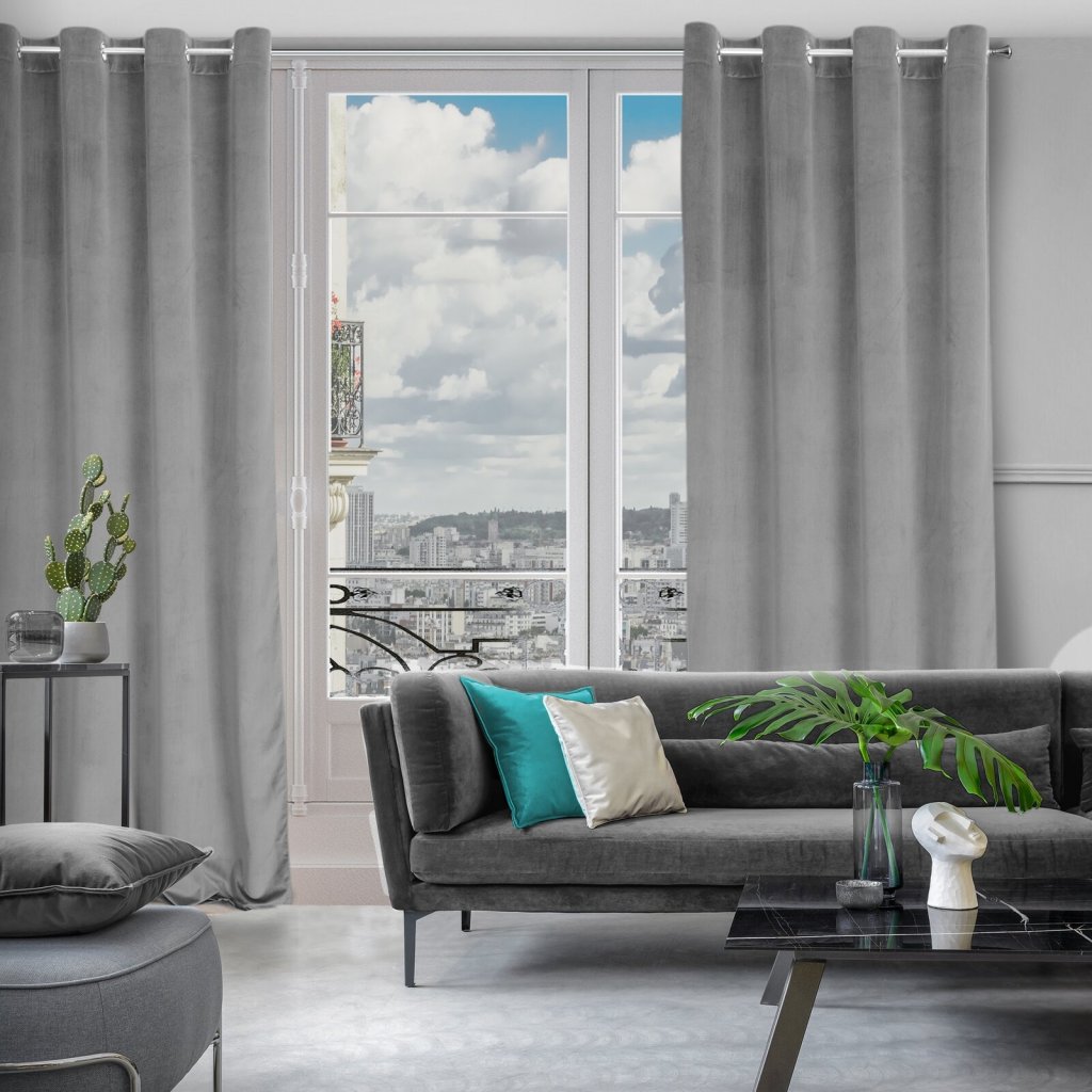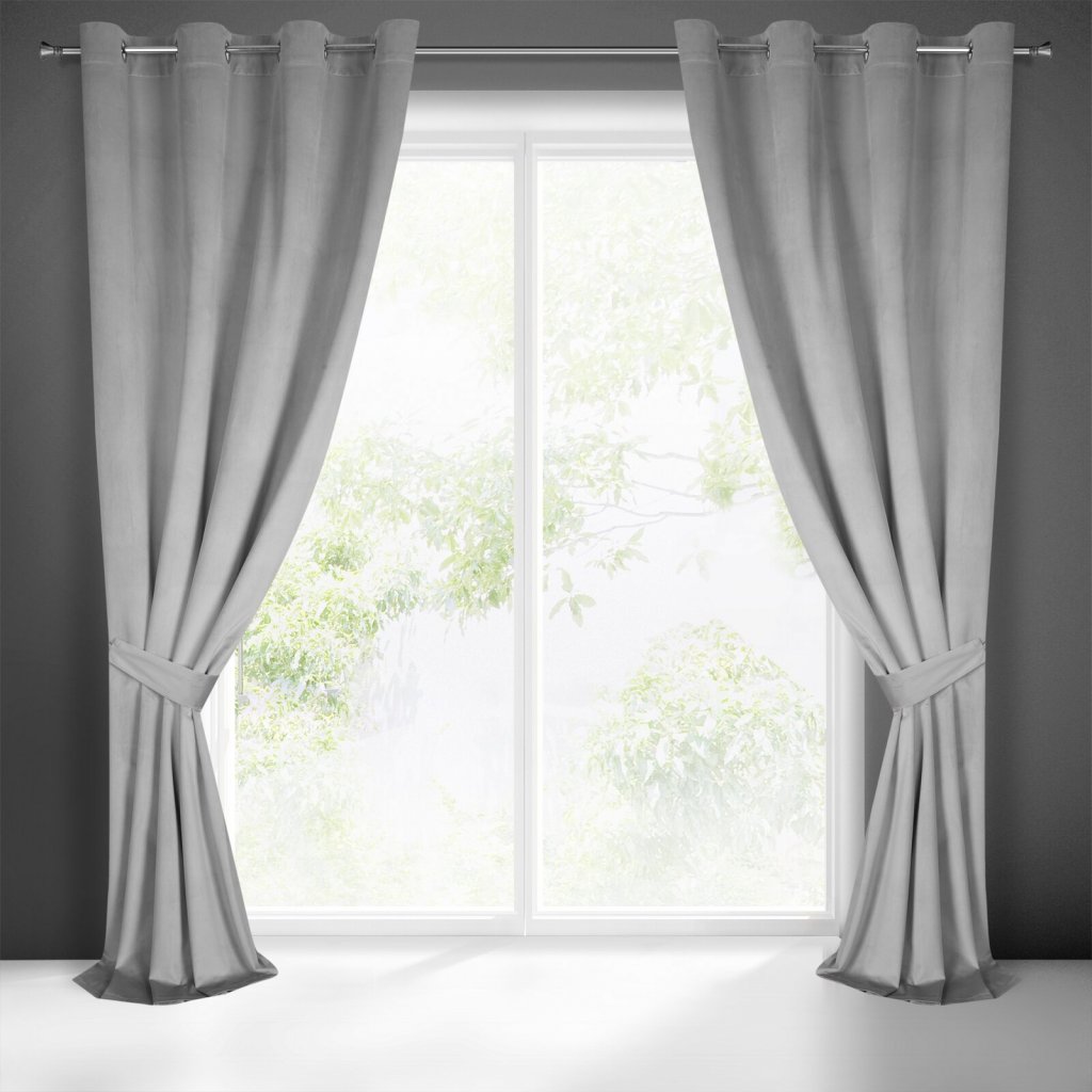Sametový jednobarevný závěs se šňůrou šířka: 140 cm, délka: 270 cm, barva: stříbrná, hmotnost: 200 GSM, složení: 100 % polyesterDoplňkové parametry
