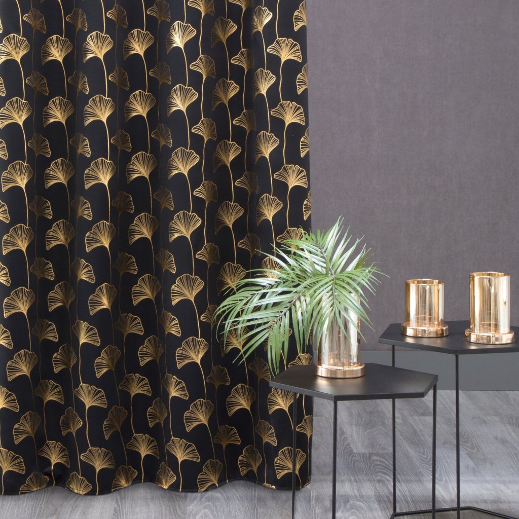 Zatemňovací závěs se zlatým potiskem šířka: 135 cm, délka: 250 cm, barva: černá, hmotnost: 190 GSM, složení: 100 % polyesterDoplňkové parametry