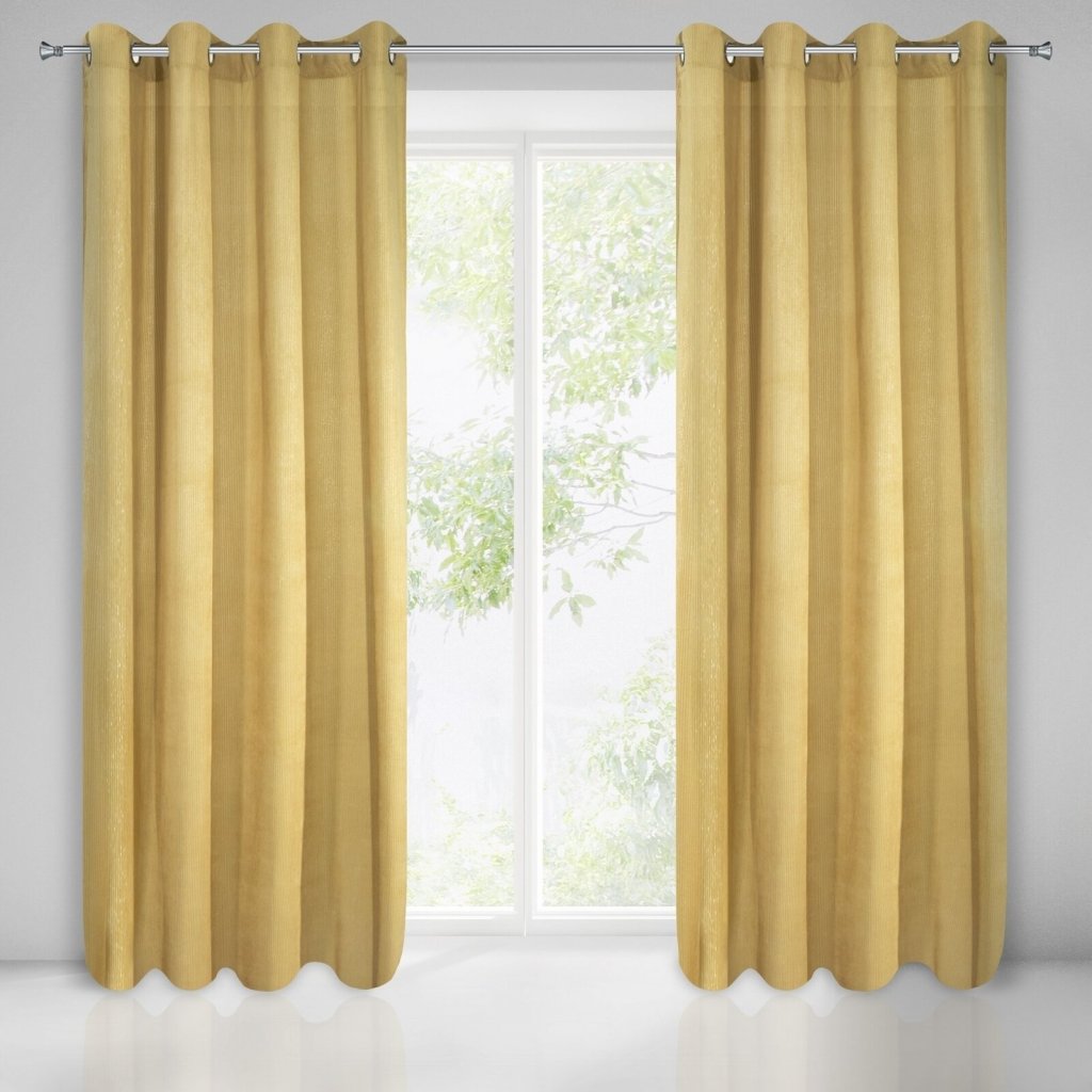 Závěs v manšestrové struktuře se stříbrným potiskem, šířka: 140 cm, délka: 270 cm, barva: zlatá, hmotnost: 200 GSM, složení: 100 % polyesterDoplňkové parametry