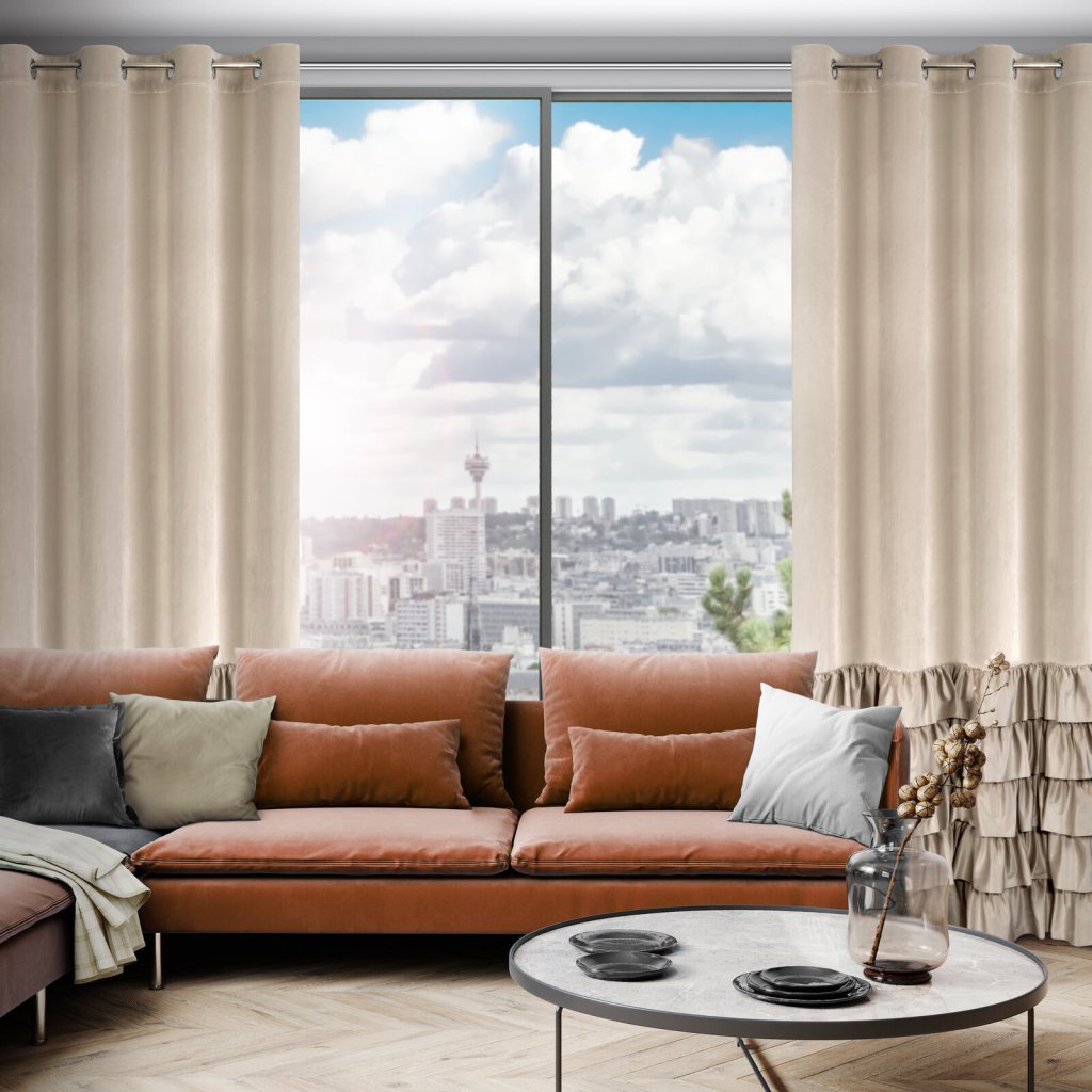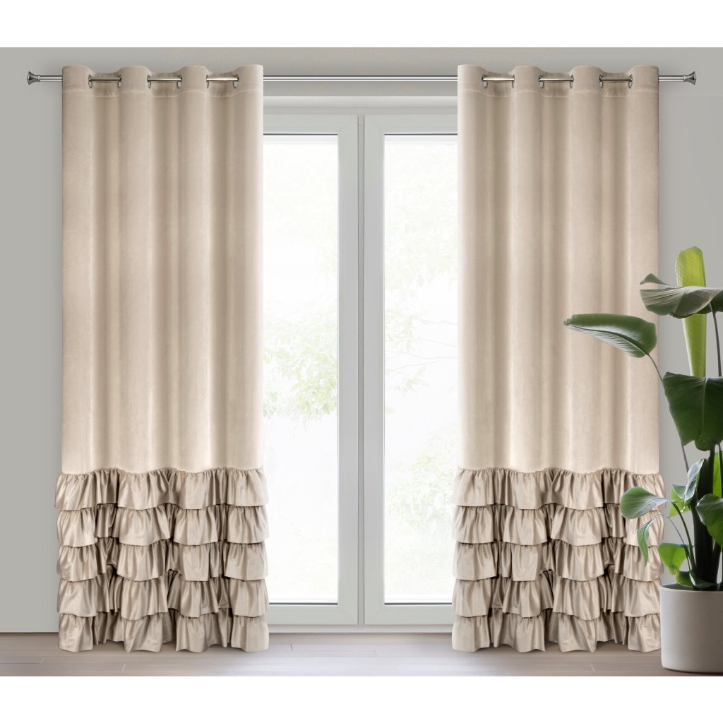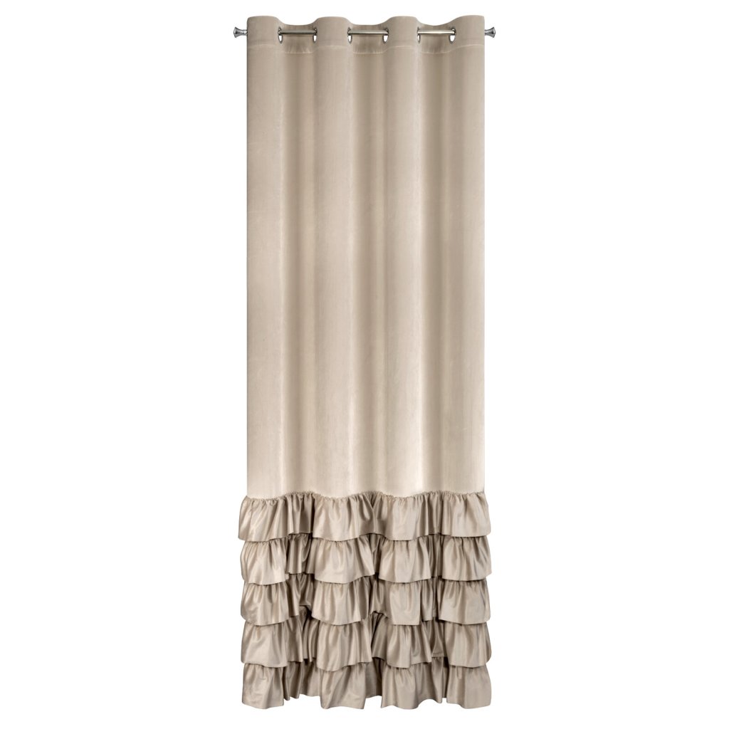 Hotový sametový závěs s volánky ve spodní části, šířka: 140 cm, délka: 250 cm, barva: béžová, hmotnost: 200 GSM, složení: 100% polyester.Doplňkové parametry