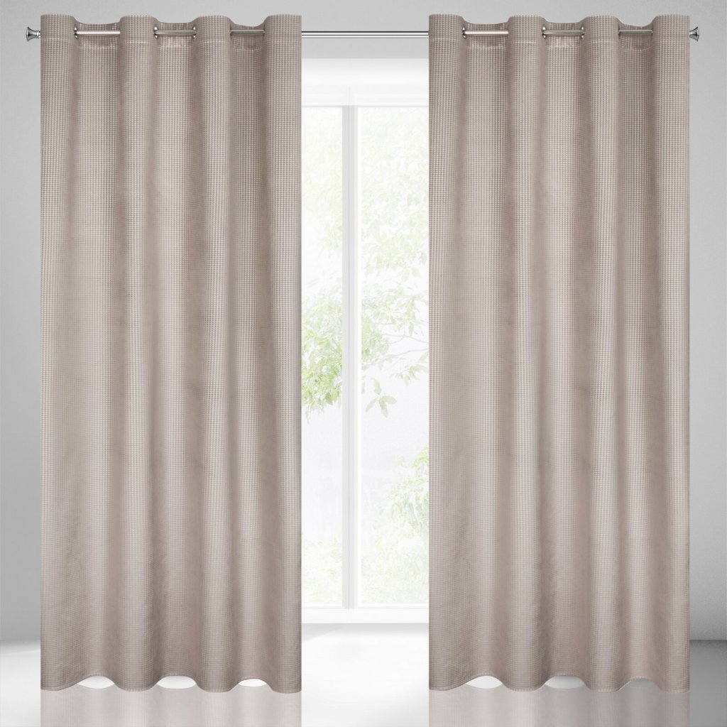 Závěs s potiskem ve vzoru pepita šířka: 140 cm, délka: 250 cm, barva: béžová, hmotnost: 210 GSM, složení: 100 % polyesterDoplňkové parametry