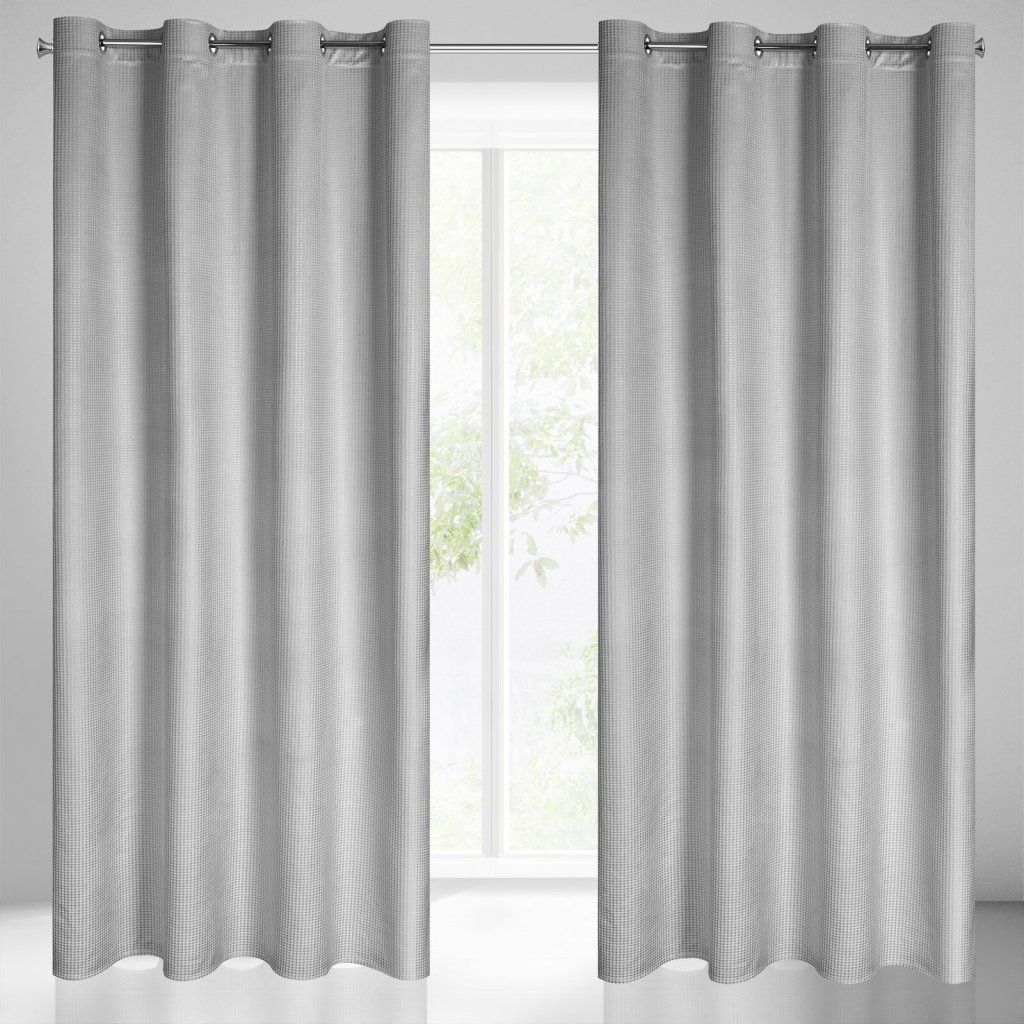 Závěs s potiskem ve vzoru pepita šířka: 140 cm, délka: 250 cm, barva: stříbrná, hmotnost: 210 GSM, složení: 100 % polyesterDoplňkové parametry