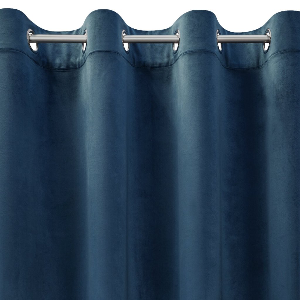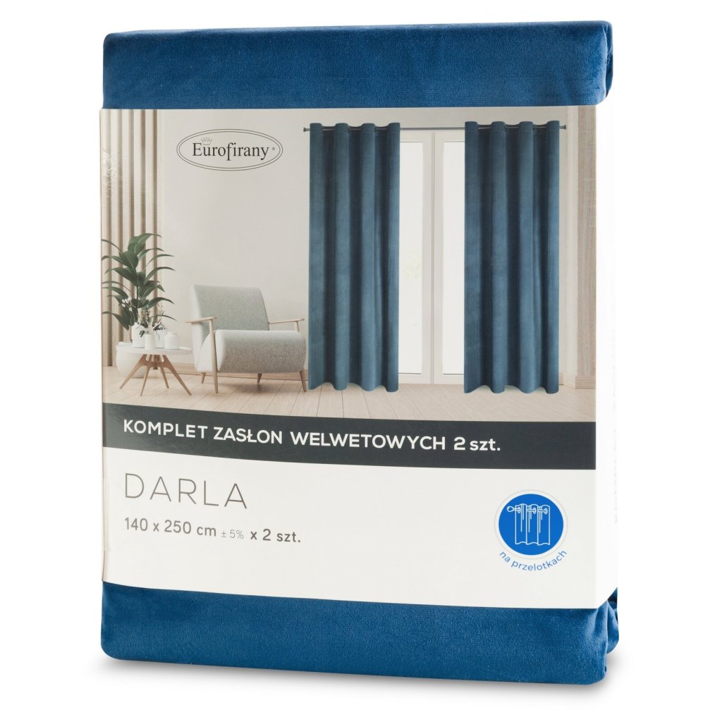 Dopřejte svému interiéru luxusní vzhled a útulnou atmosféru se sametovým závěsovým kompletem DARLA v elegantním tmavě modrém odstínu. Hladký, jemně lesklý povrch sametové tkaniny dodává prostoru sofistikovaný charakter. V balení se nacházejí dva kusy závěsů. Šířka: 140 cm, délka: 250 cm, barva: tmavomodrem, hmotnost: 200 GSM, složení: 100% polyester.Doplňkové parametry