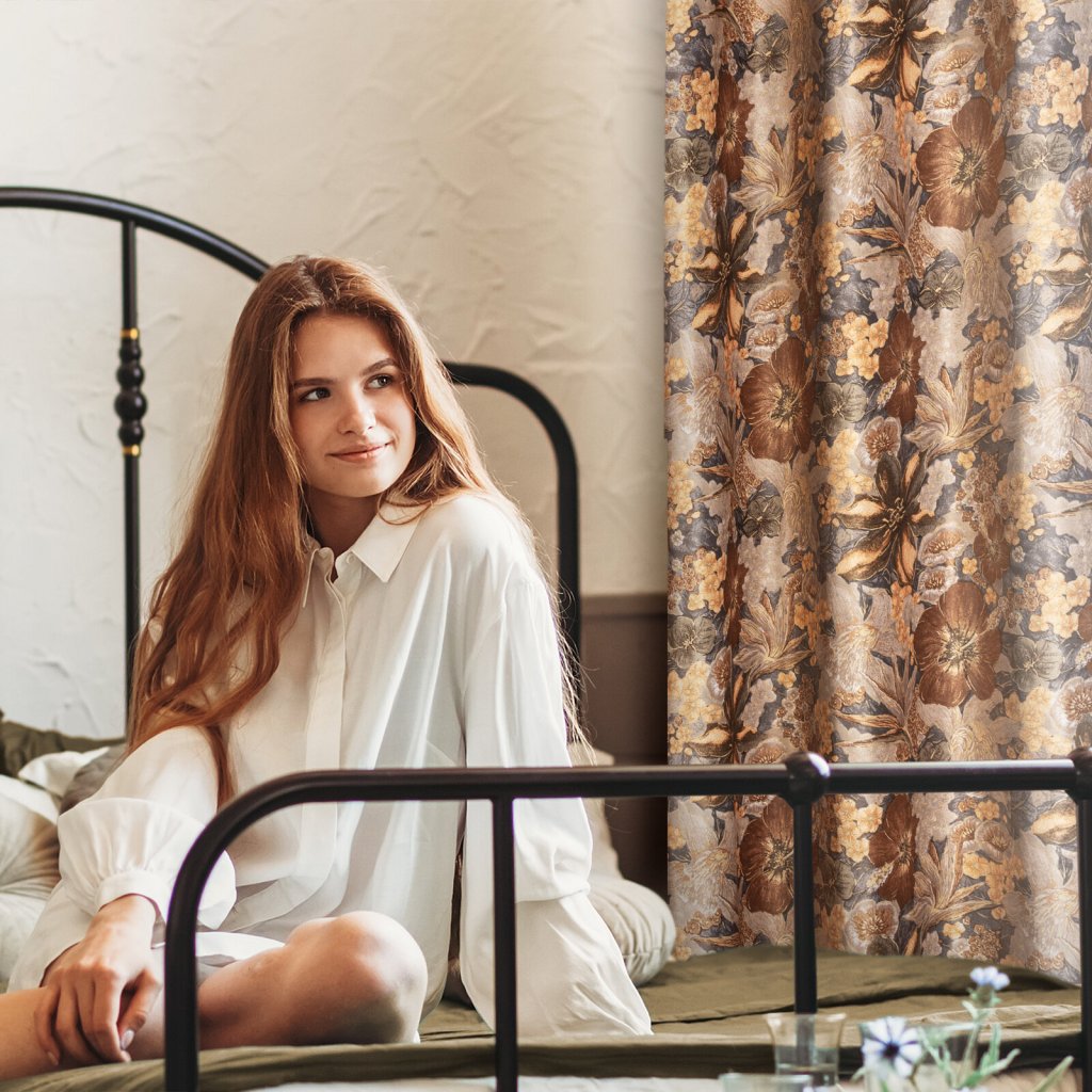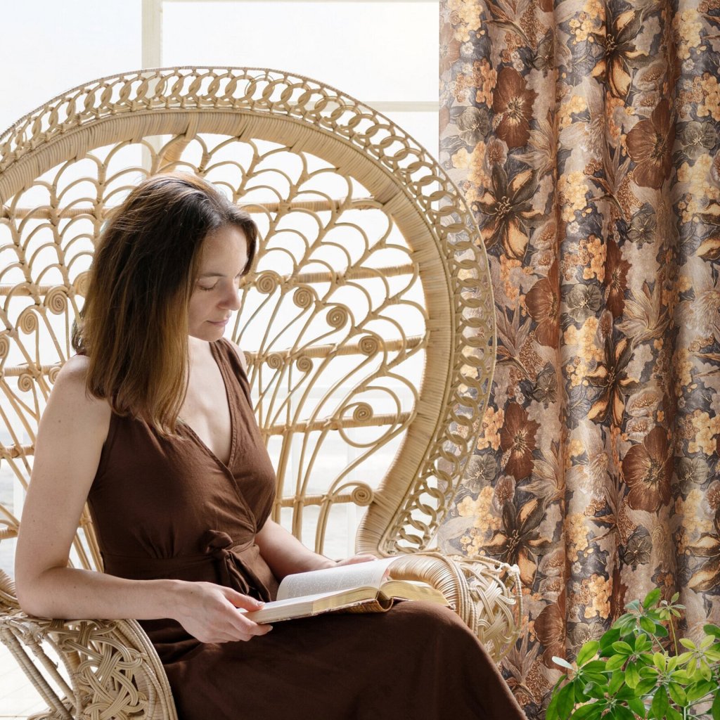 Sametový závěs s potiskem květin, šířka: 140 cm, délka: 250 cm, barva: vícebarevná, hmotnost: 200 GSM, složení: 100% polyester.Doplňkové parametry