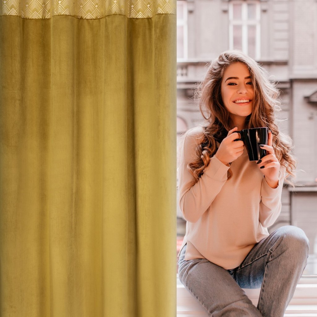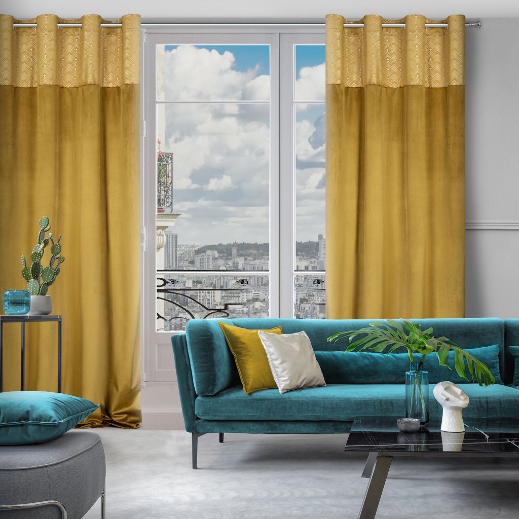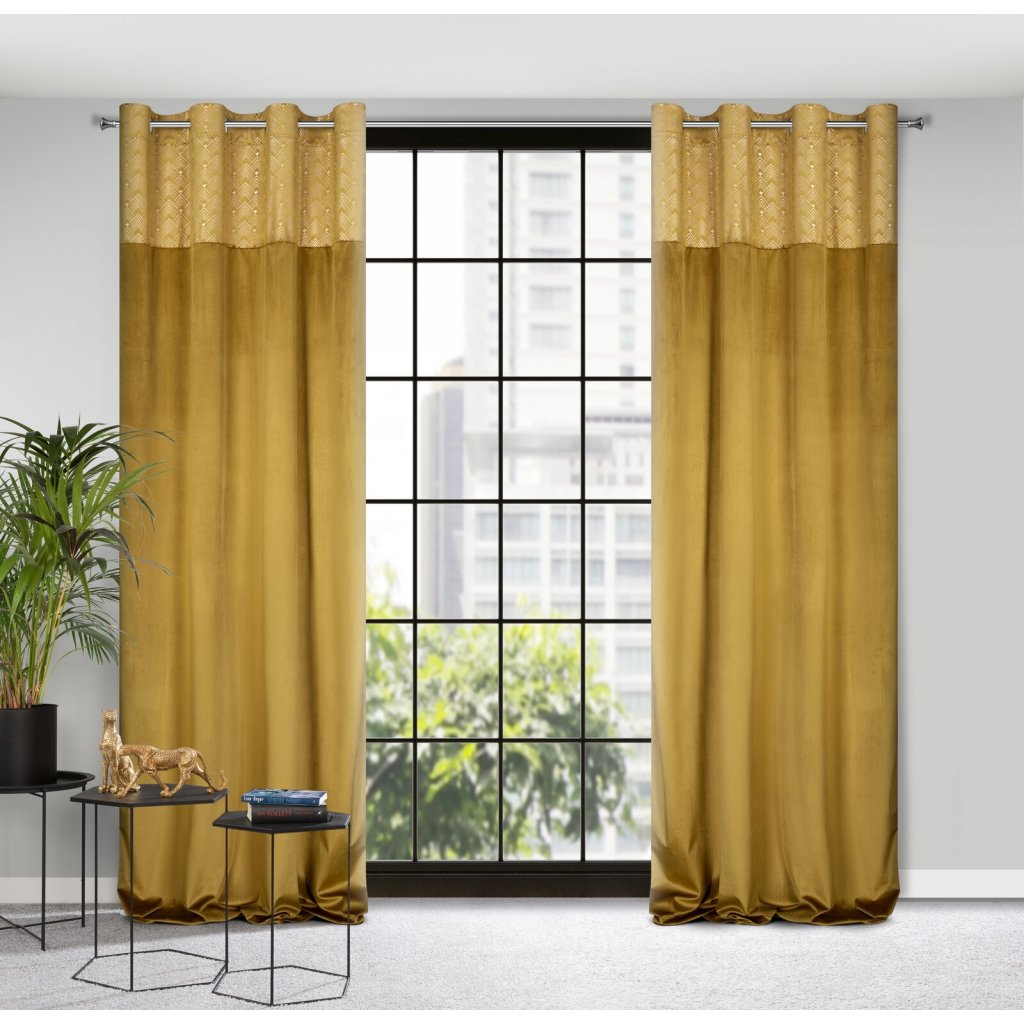 Sametový závěs s potiskem šířka: 140 cm, délka: 250 cm, barva: zlatá, hmotnost: 200 GSM, složení: 100 % polyesterDoplňkové parametry