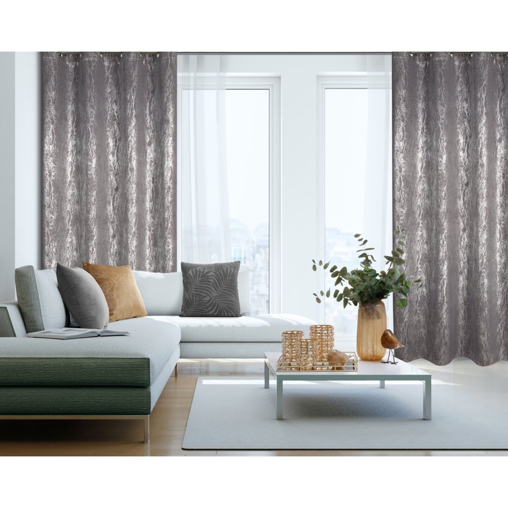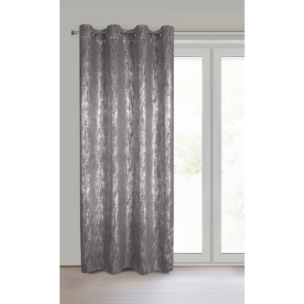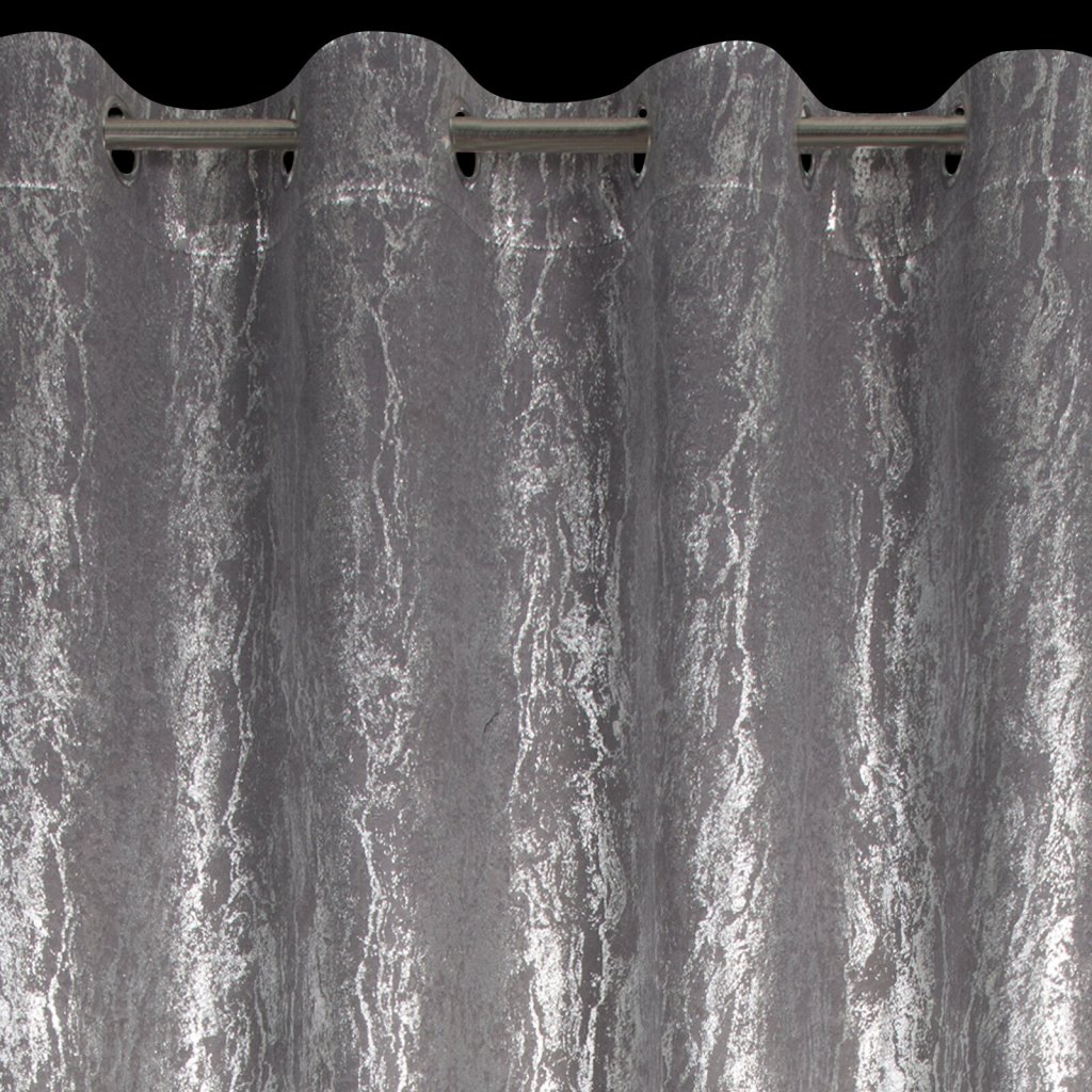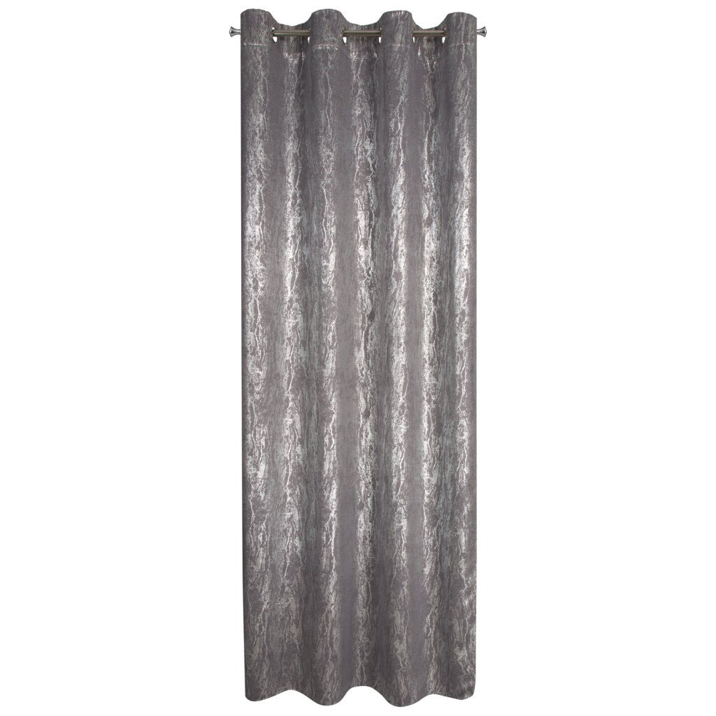 Hotový zatemňovací závěs s lesklým stříbrným potiskem, šířka: 140 cm, délka: 270 cm, barva: šedá, hmotnost: 230 GSM, složení: 100% polyester.Doplňkové parametry