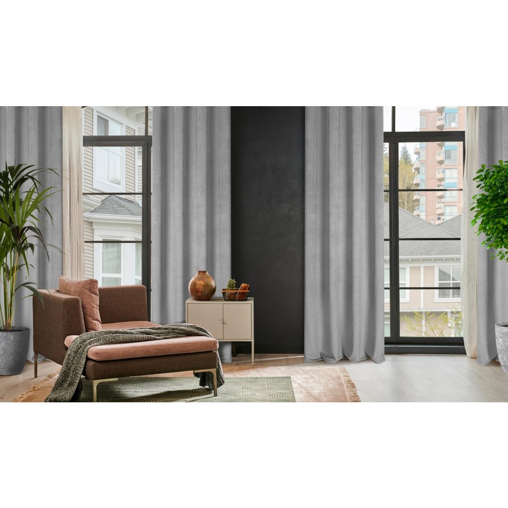 Lehký sametový závěs z měkké tkaniny s jemným leskem, který je charakteristický pro samety. Jemně vrstvené. Šířka: 140 cm, délka: 250 cm, barva: stříbrná, hmotnost: 210 GSM, složení: 100 % polyesterDoplňkové parametry