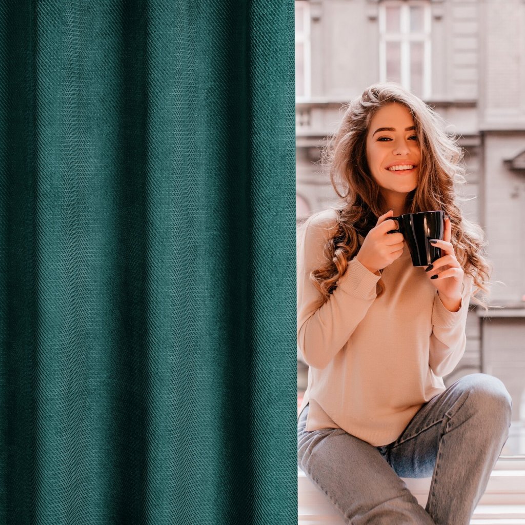 ZATEMŇOVACÍ ZÁVĚS NA KROUŽCÍCH ELIZA 140X250 CM TMAVĚZELENÁ