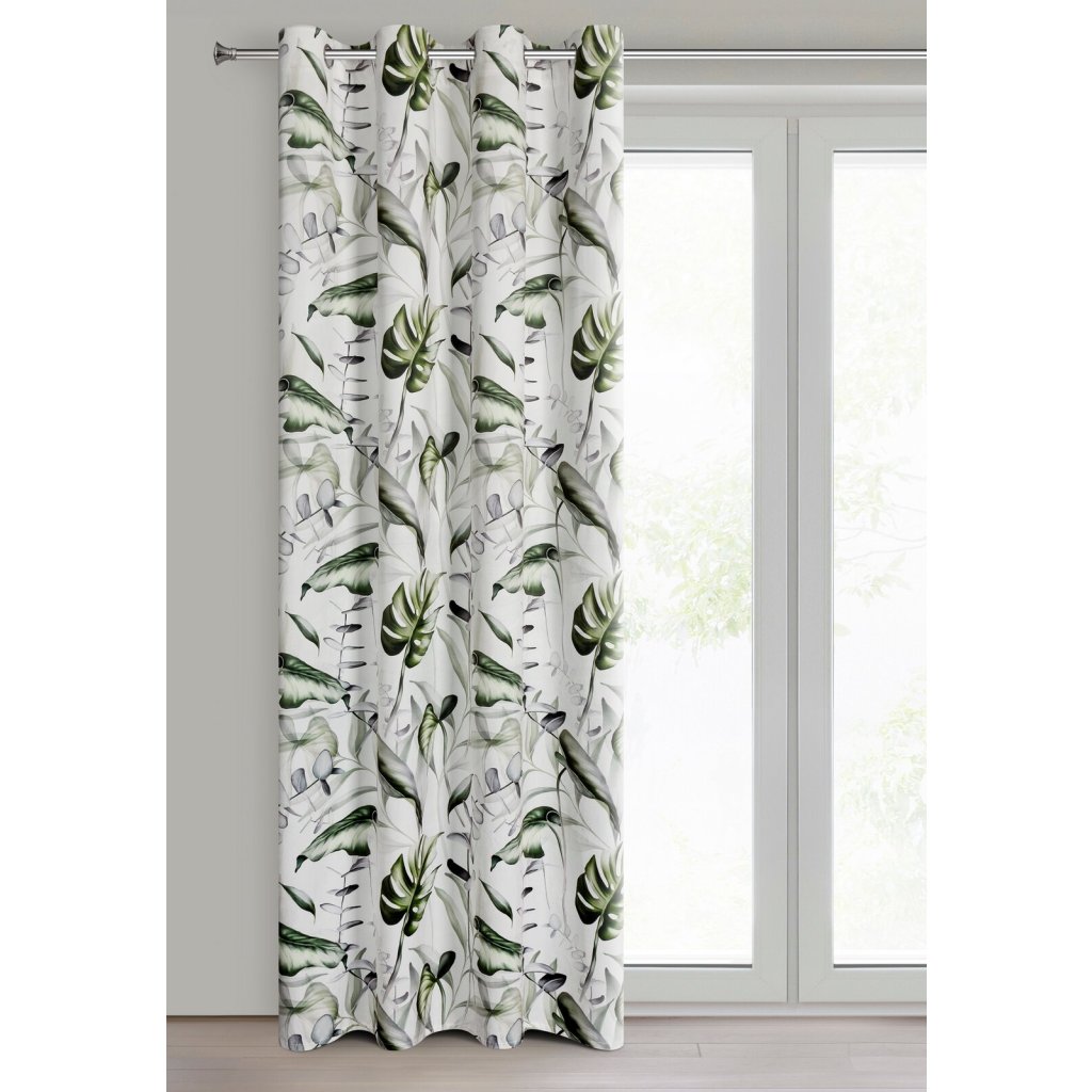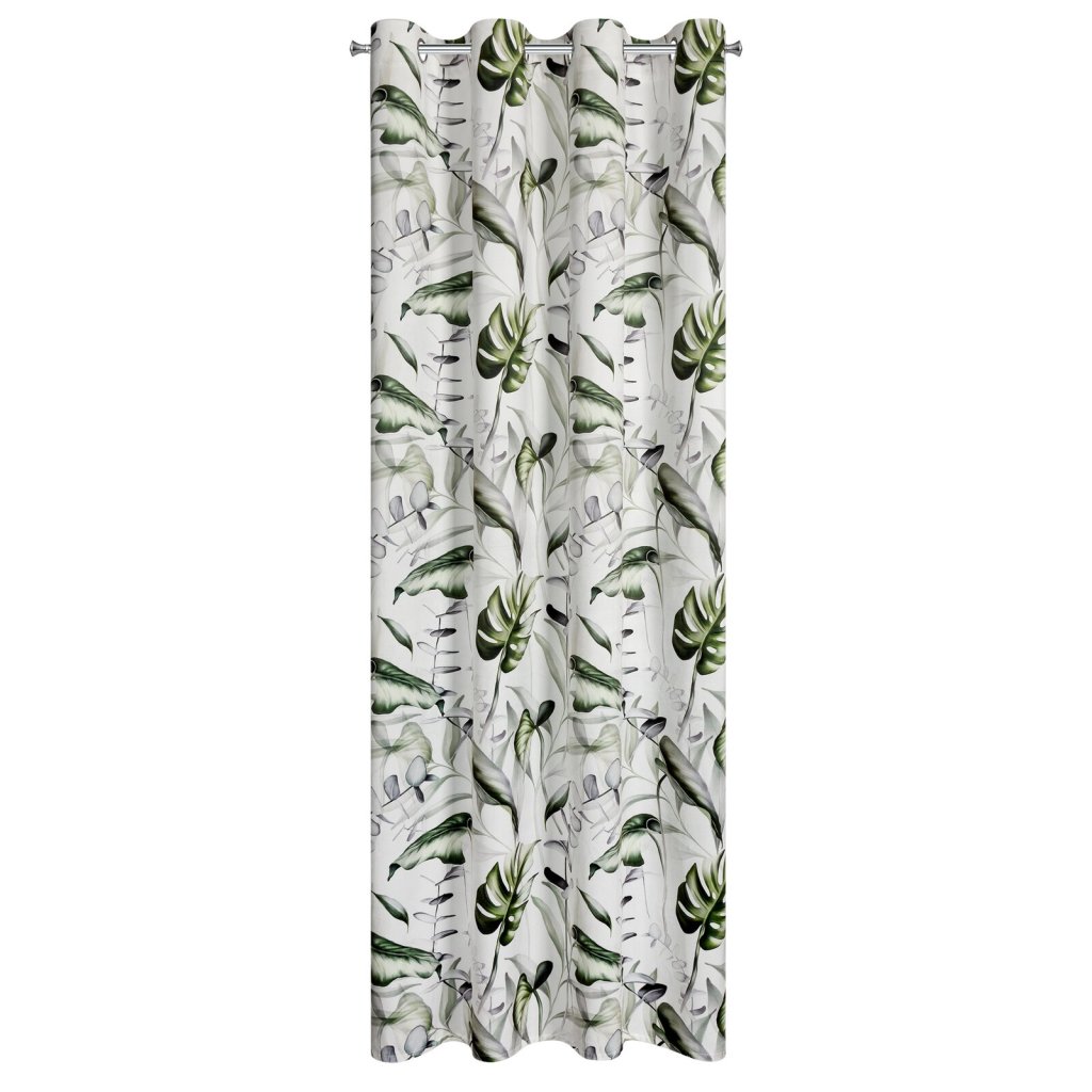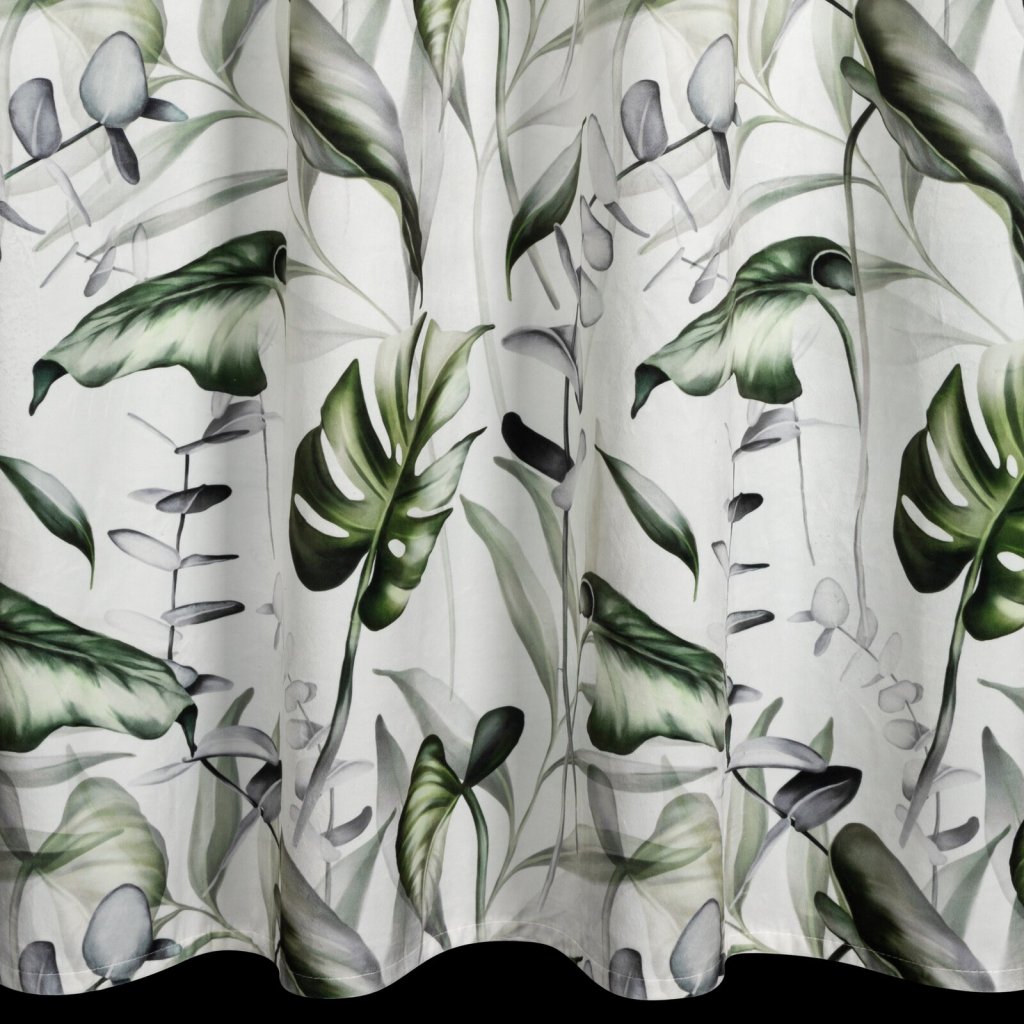 Hotový sametový závěs s botanickým potiskem, šířka: 140 cm, délka: 250 cm, barva: bílá/zelená, hmotnost: 200 GSM, složení: 100% polyester.Doplňkové parametry