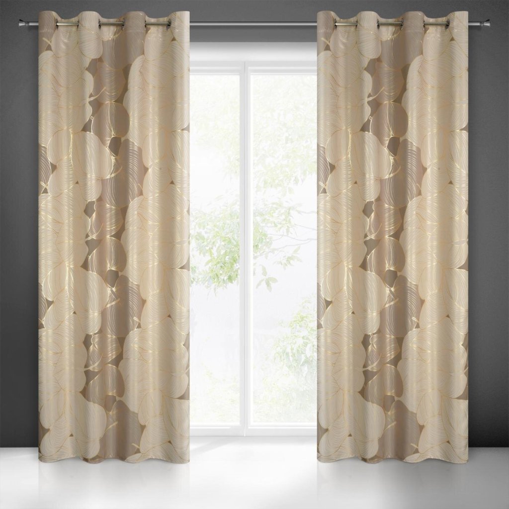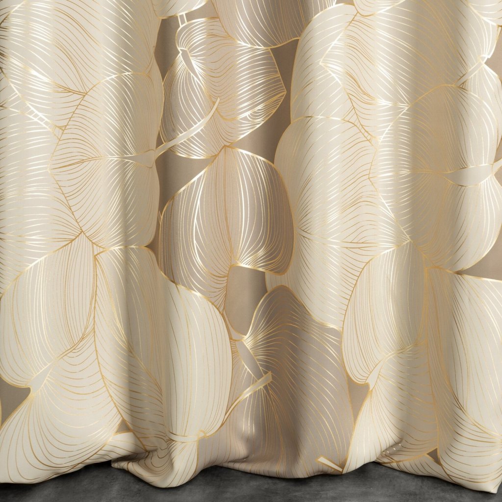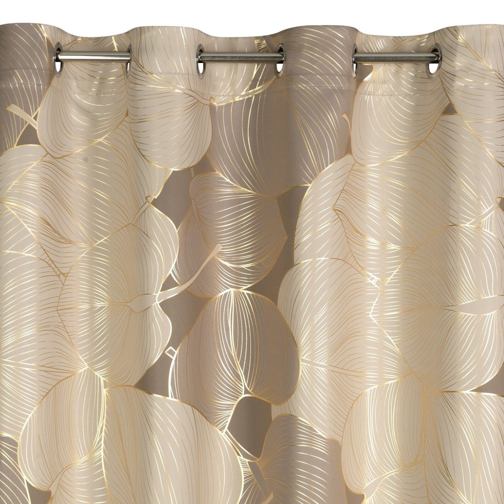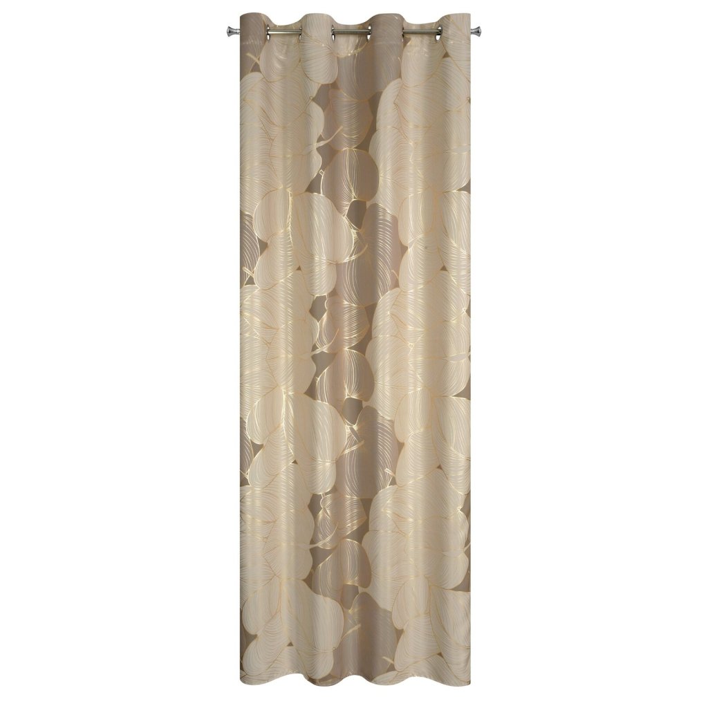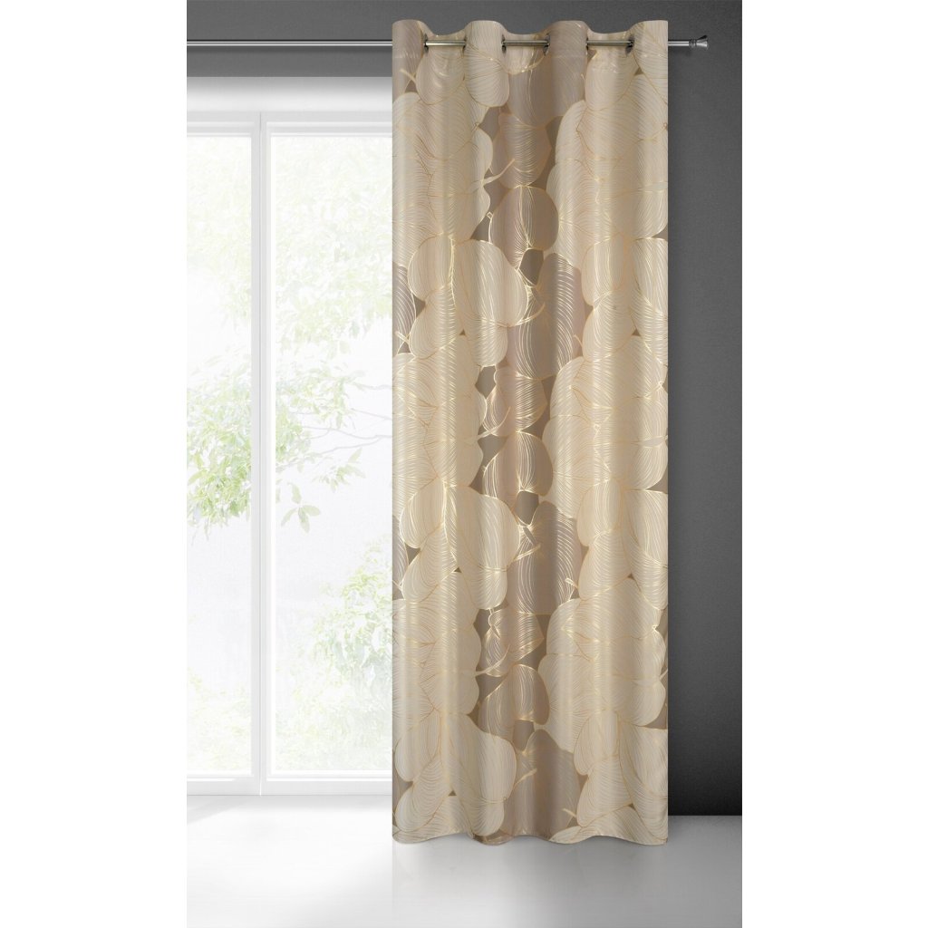 Zatemňovací závěs se zlatým potiskem a rostlinným motivem šířka: 140 cm, délka: 250 cm, barva: béžová, hmotnost: 200 GSM, složení: 100 % polyesterDoplňkové parametry