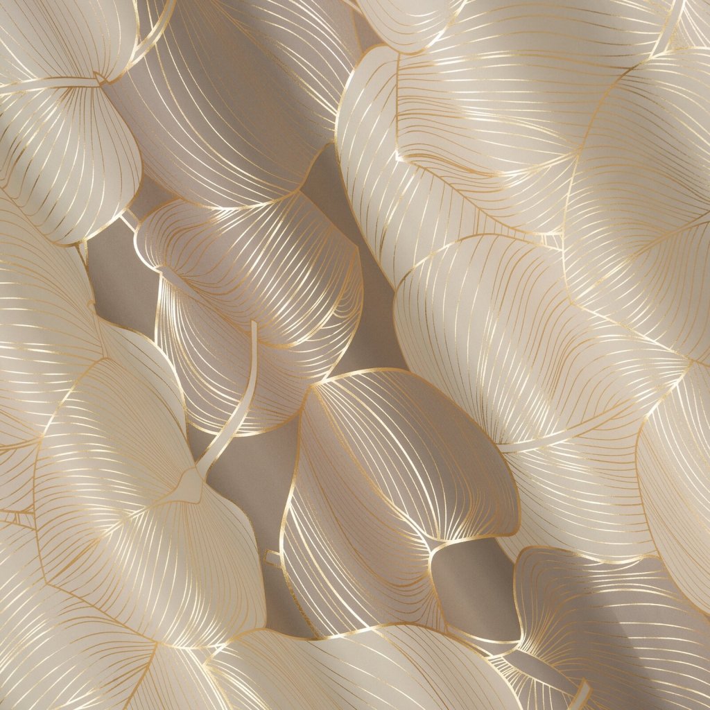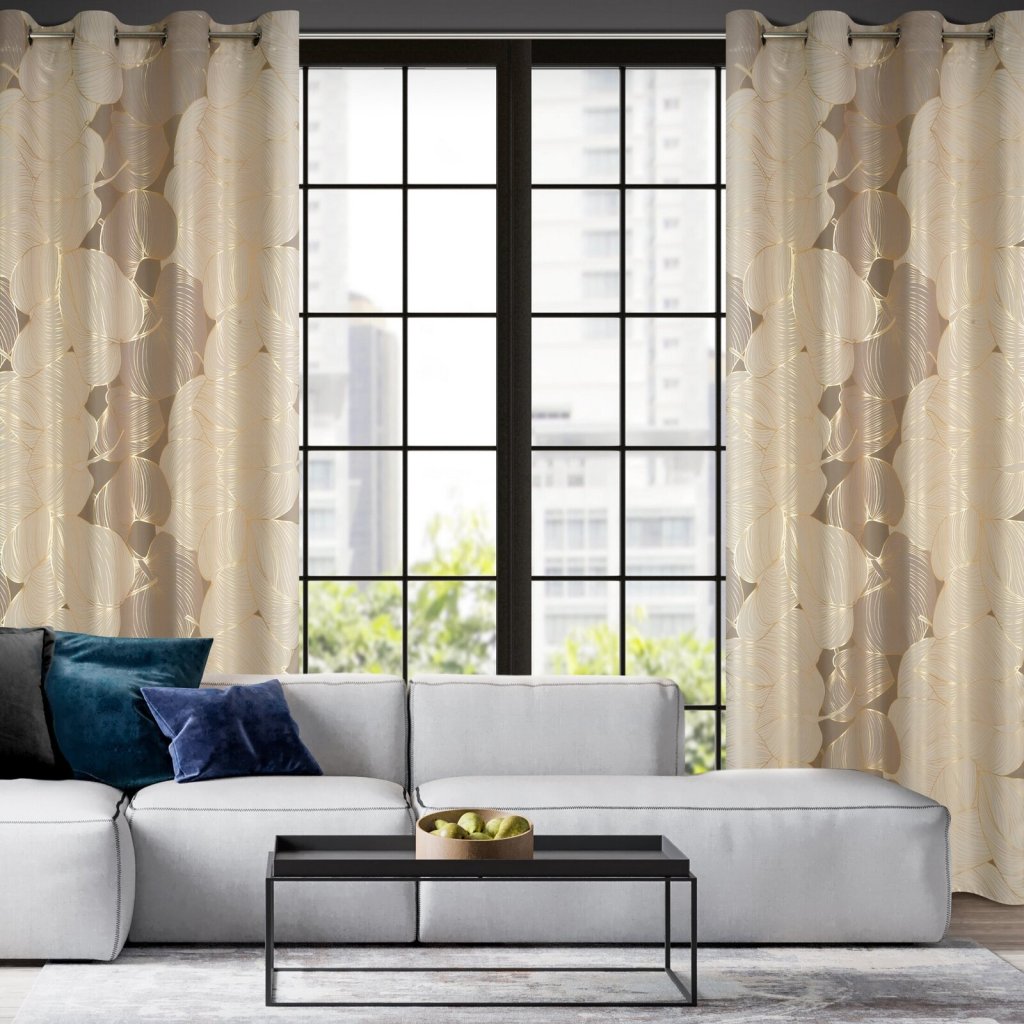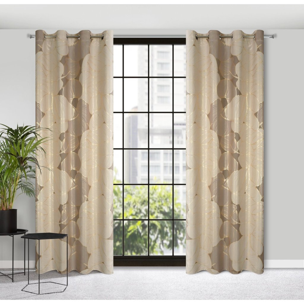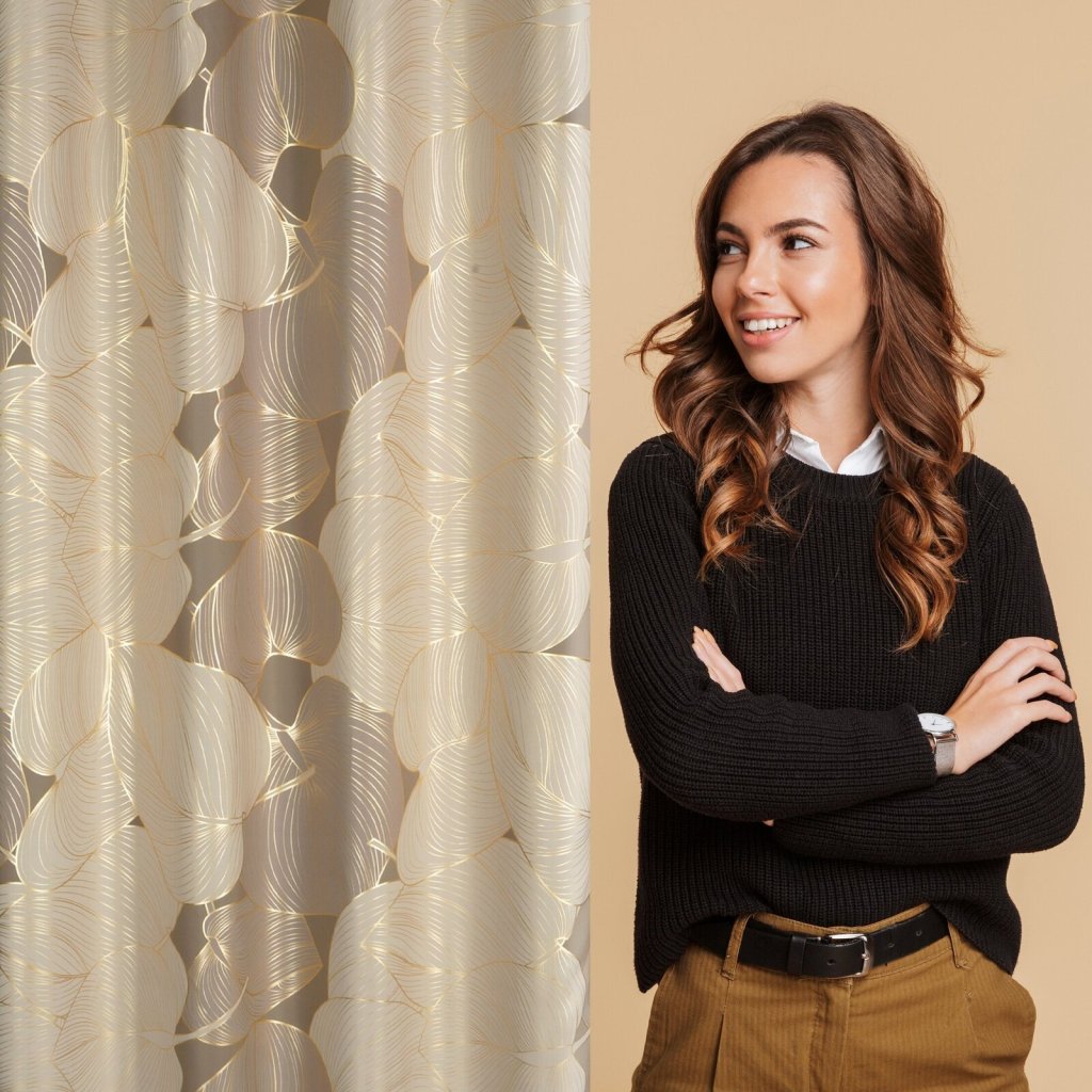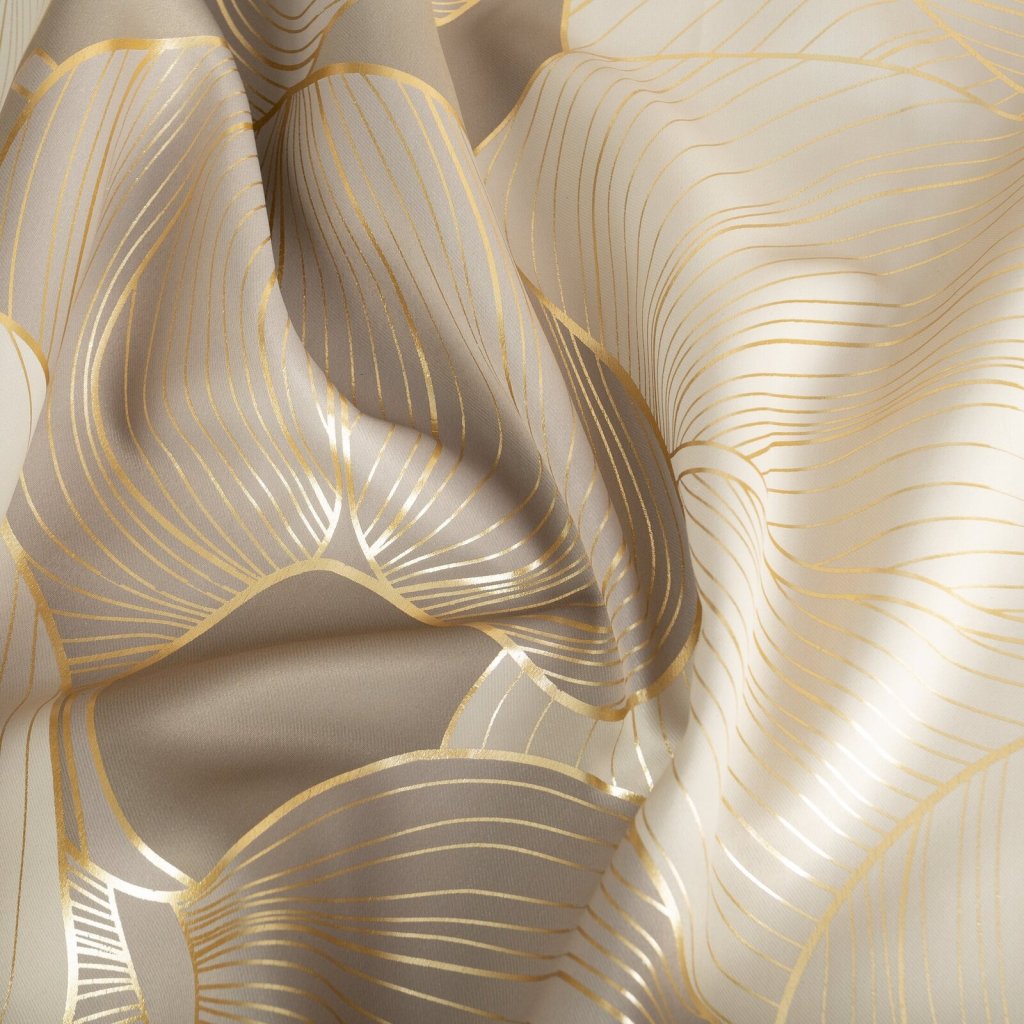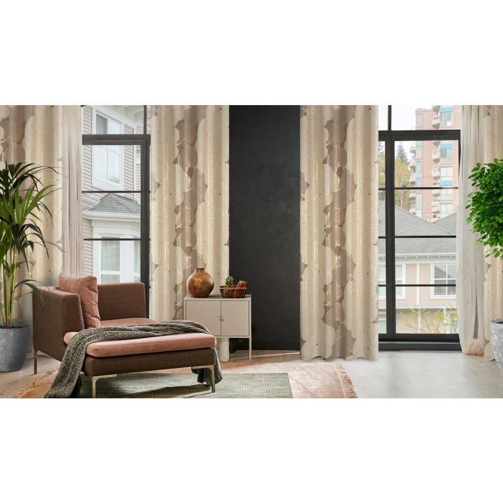Zatemňovací závěs se zlatým potiskem a rostlinným motivem šířka: 140 cm, délka: 250 cm, barva: béžová, hmotnost: 200 GSM, složení: 100 % polyesterDoplňkové parametry