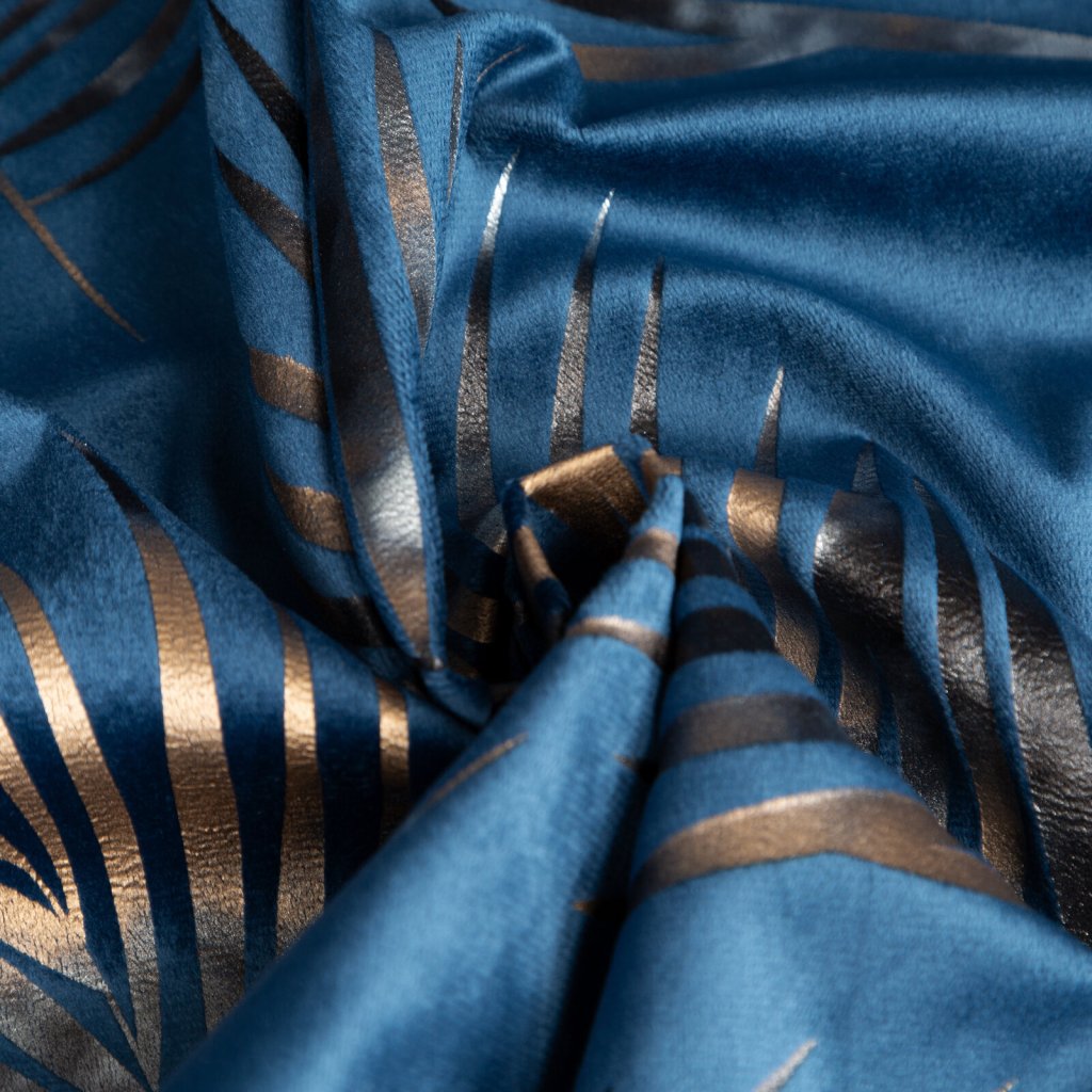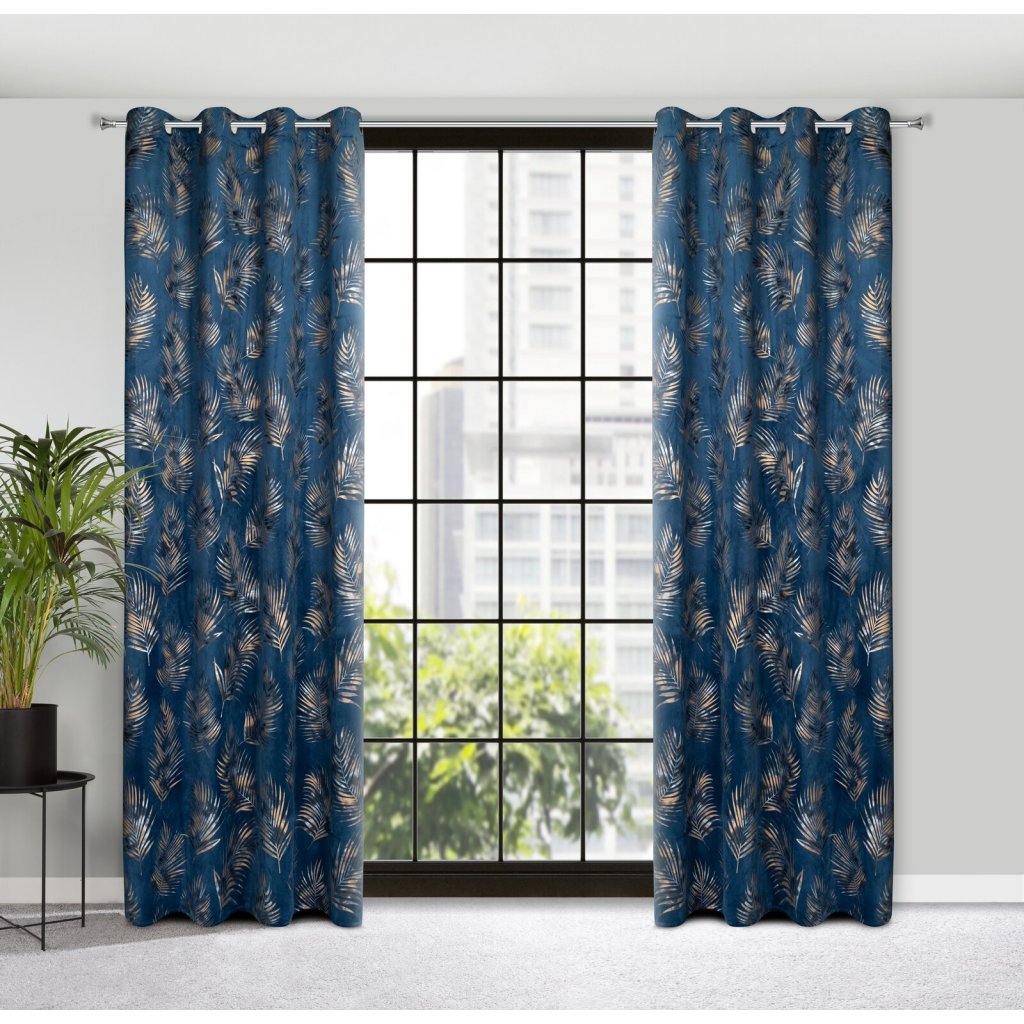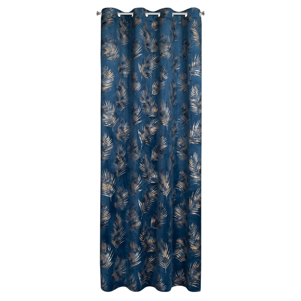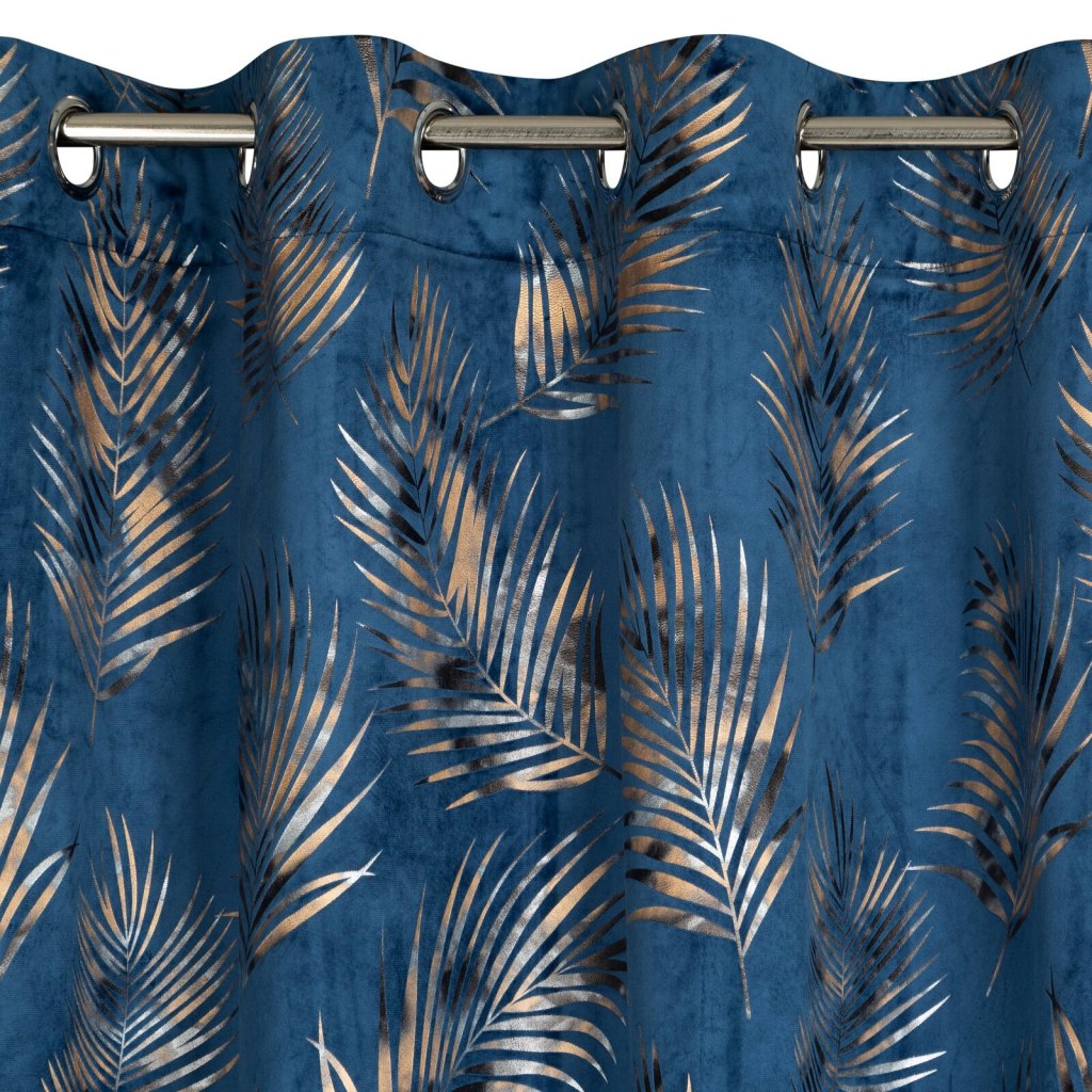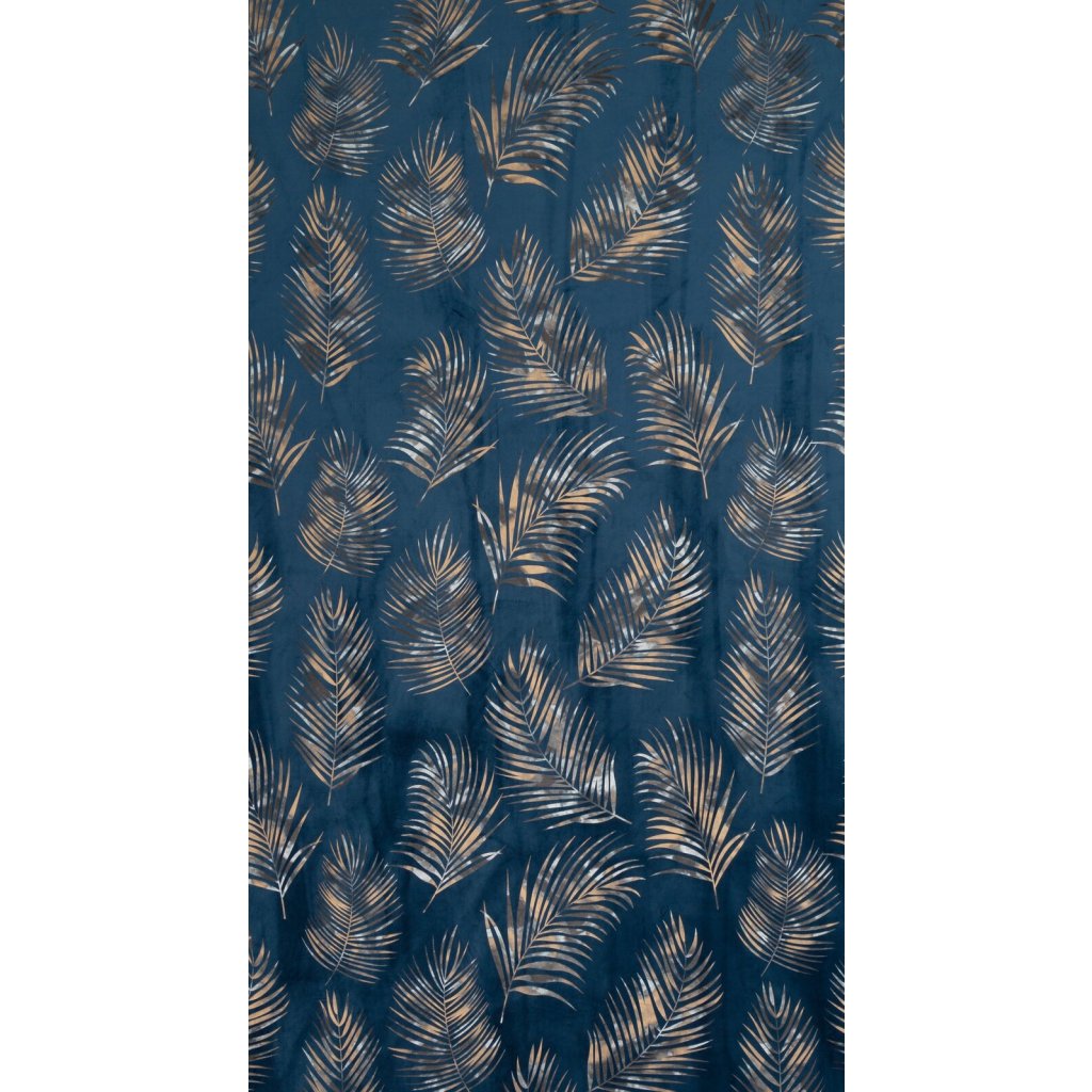 Motiv exotických palmových listů zdobících závěs GLORIA ze sametové látky příjemné na dotek dodá vašemu interiéru slavnostní charakter. třpytivý potisk exotických listů ve stříbrných a zlatých barvách aplikovaný na kontrastní pozadí, čímž vzniká mimořádná kompozice věnovaná moderním interiérům. Hrubší tkanina dokonale izoluje sluneční světlo a zajišťuje příjemnou atmosféru v místnosti, závěs má střední stupeň zatemnění. Šířka: 140 cm, délka: 250 cm, barva: vícebarevná, hmotnost: 200 GSM, složení: 100% polyester.Doplňkové parametry