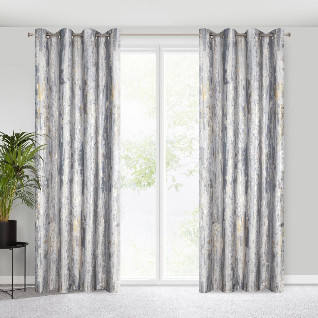 Sametový závěs s metalickým potiskem, šířka: 140 cm, délka: 250 cm, barva: stříbrná, hmotnost: 200 GSM, složení: 100% polyester.Doplňkové parametry