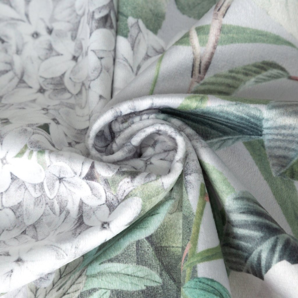 Sametový závěs s motivem květin. Závěsy dodávají prostoru elegantní a útulný nádech, přičemž díky přírodním prvkům, jako jsou rostliny, působí místnost harmonicky. Závěsy poskytují střední úroveň zatemnění. Šířka: 140 cm, délka: 250 cm, barva: vícebarevná, hmotnost: 200 GSM, složení: 100% polyester.Doplňkové parametry