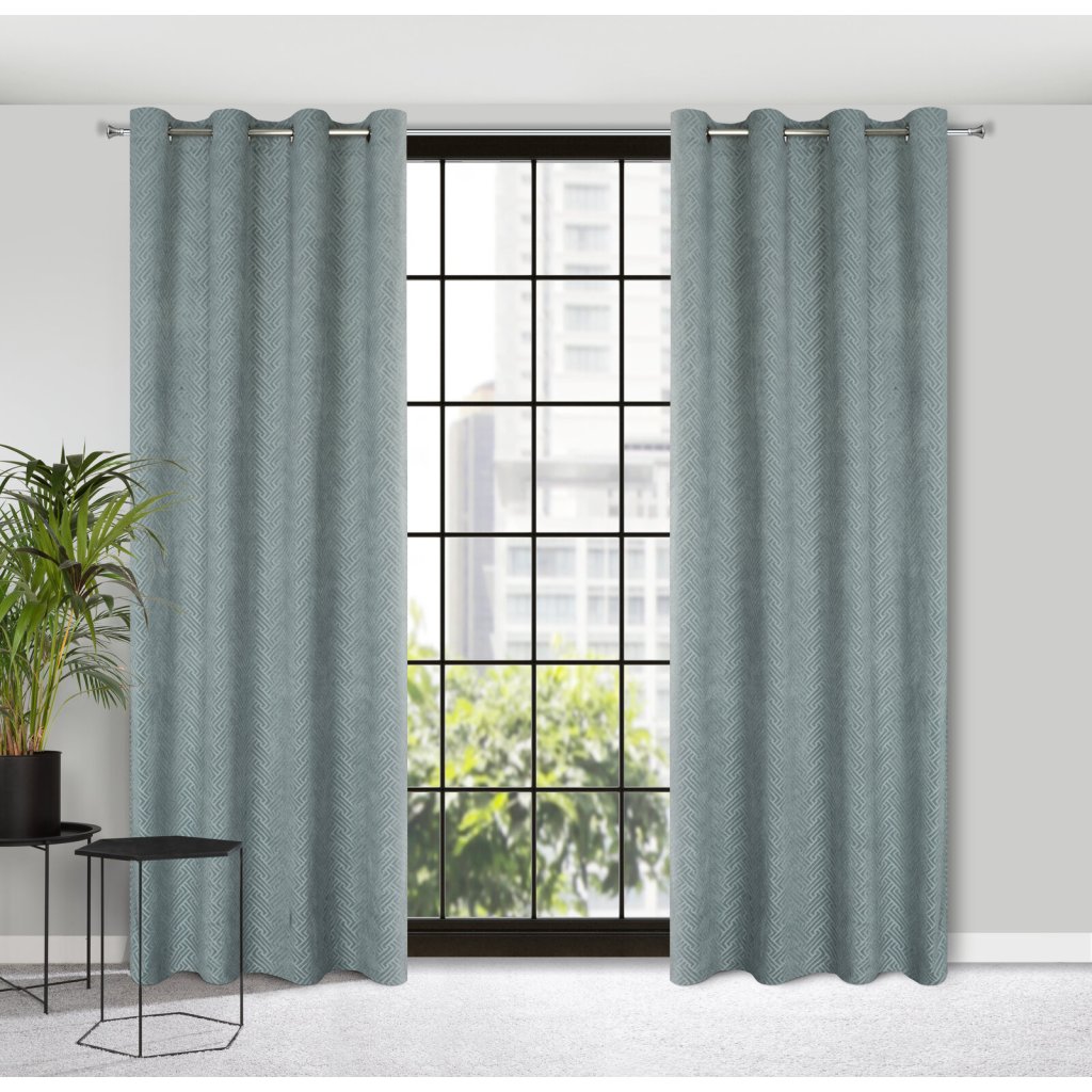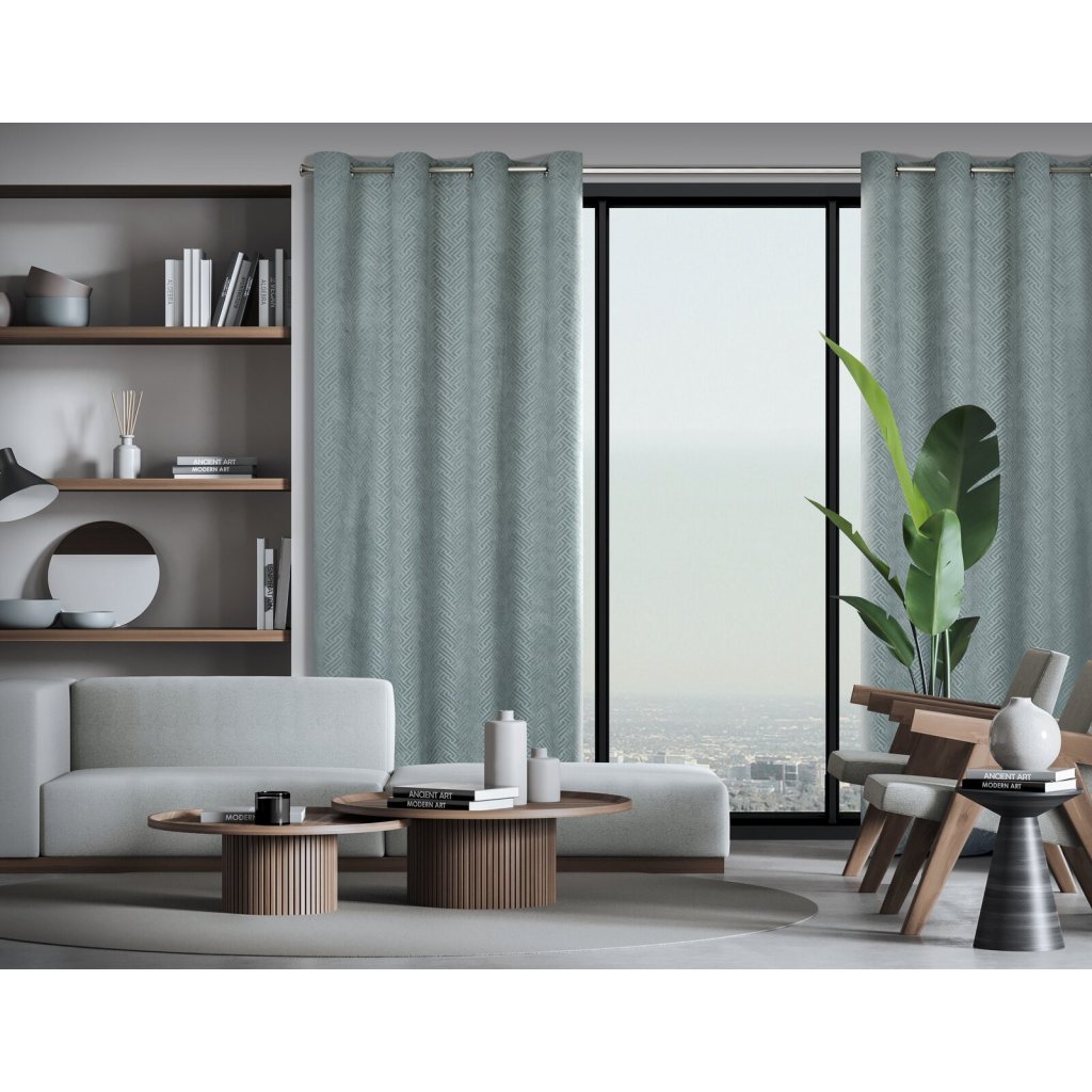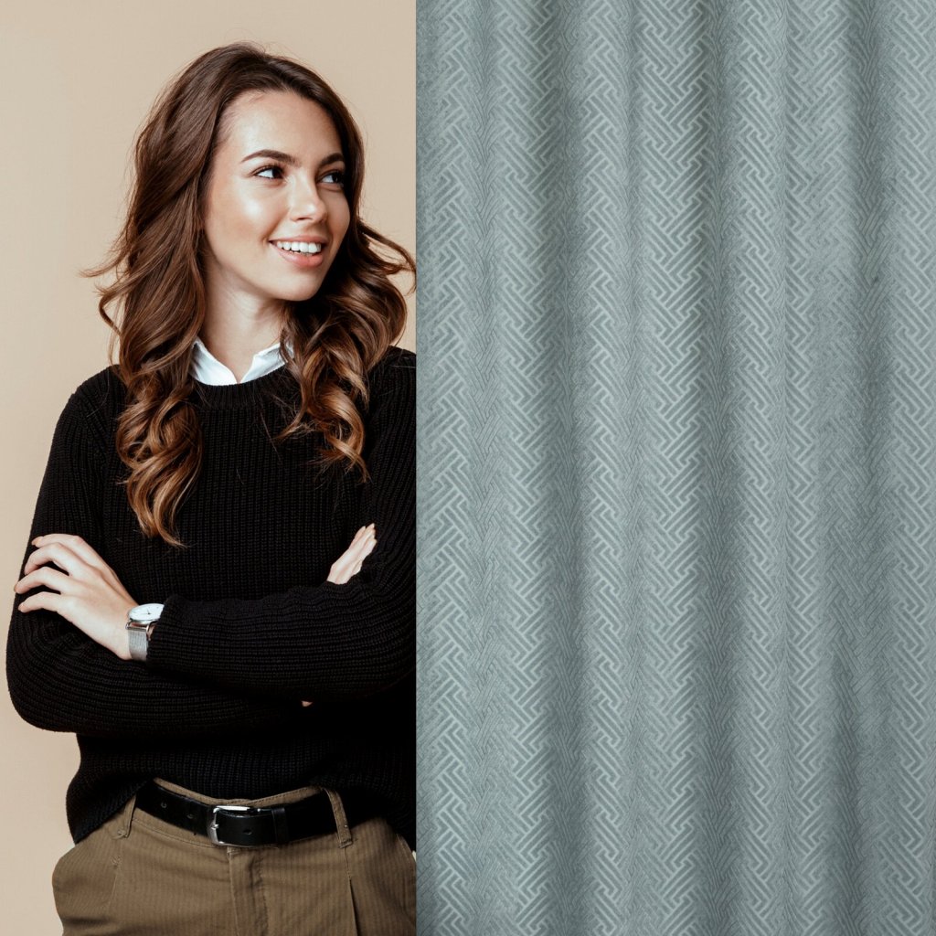 Žakárový sametový závěs s geometrickým vzorem šířka: 140 cm, délka: 250 cm, barva: šedá, hmotnost: 200 GSM, složení: 100 % polyesterDoplňkové parametry