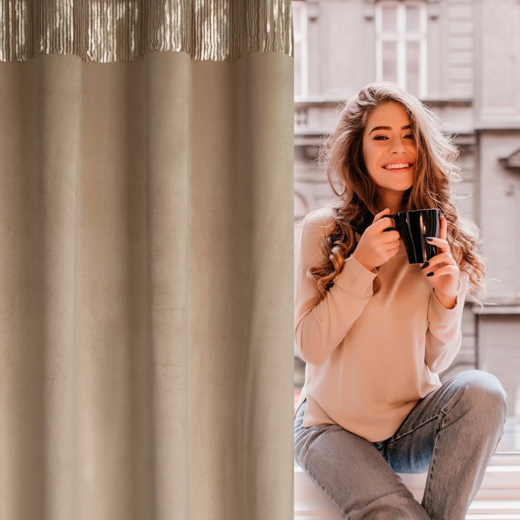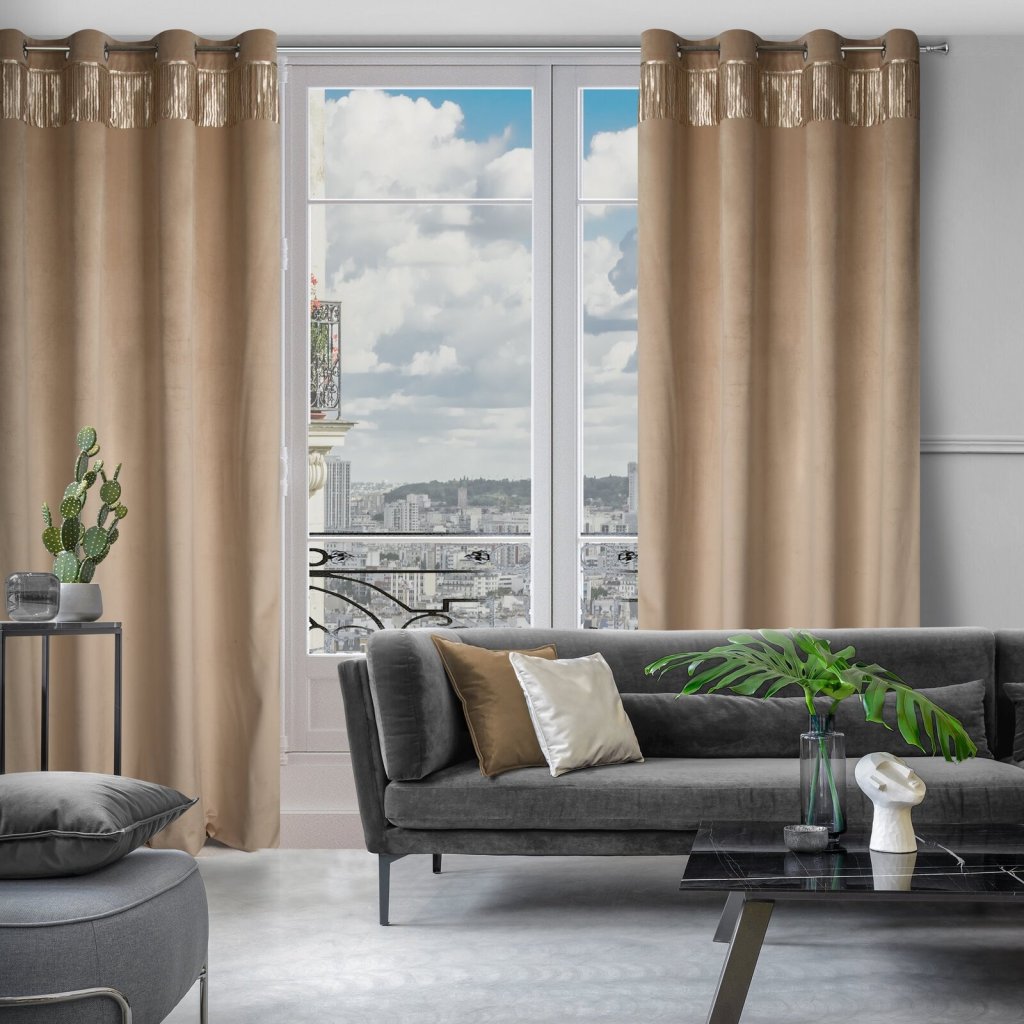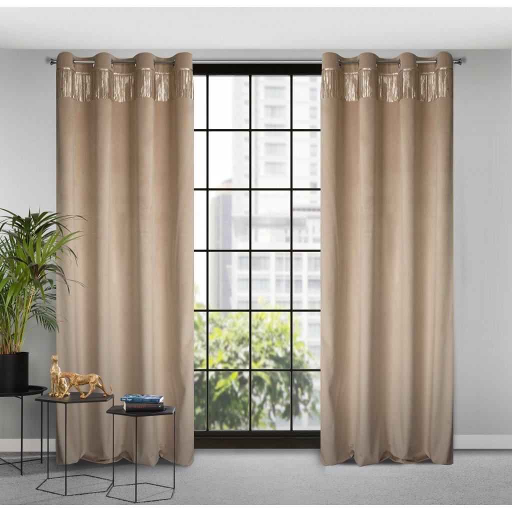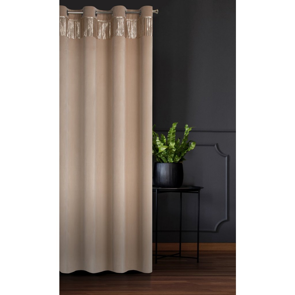 Sametový jednobarevný závěs s ozdobnou páskou s flitry šířka: 140 cm, délka: 250 cm, barva: béžová, hmotnost: 290 GSM, složení: 100 % polyesterDoplňkové parametry