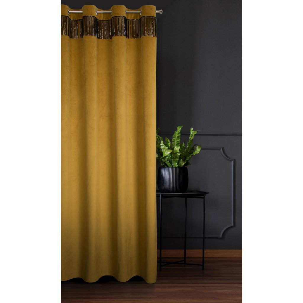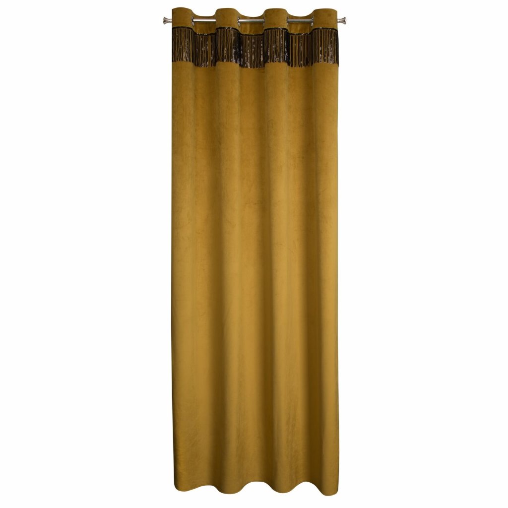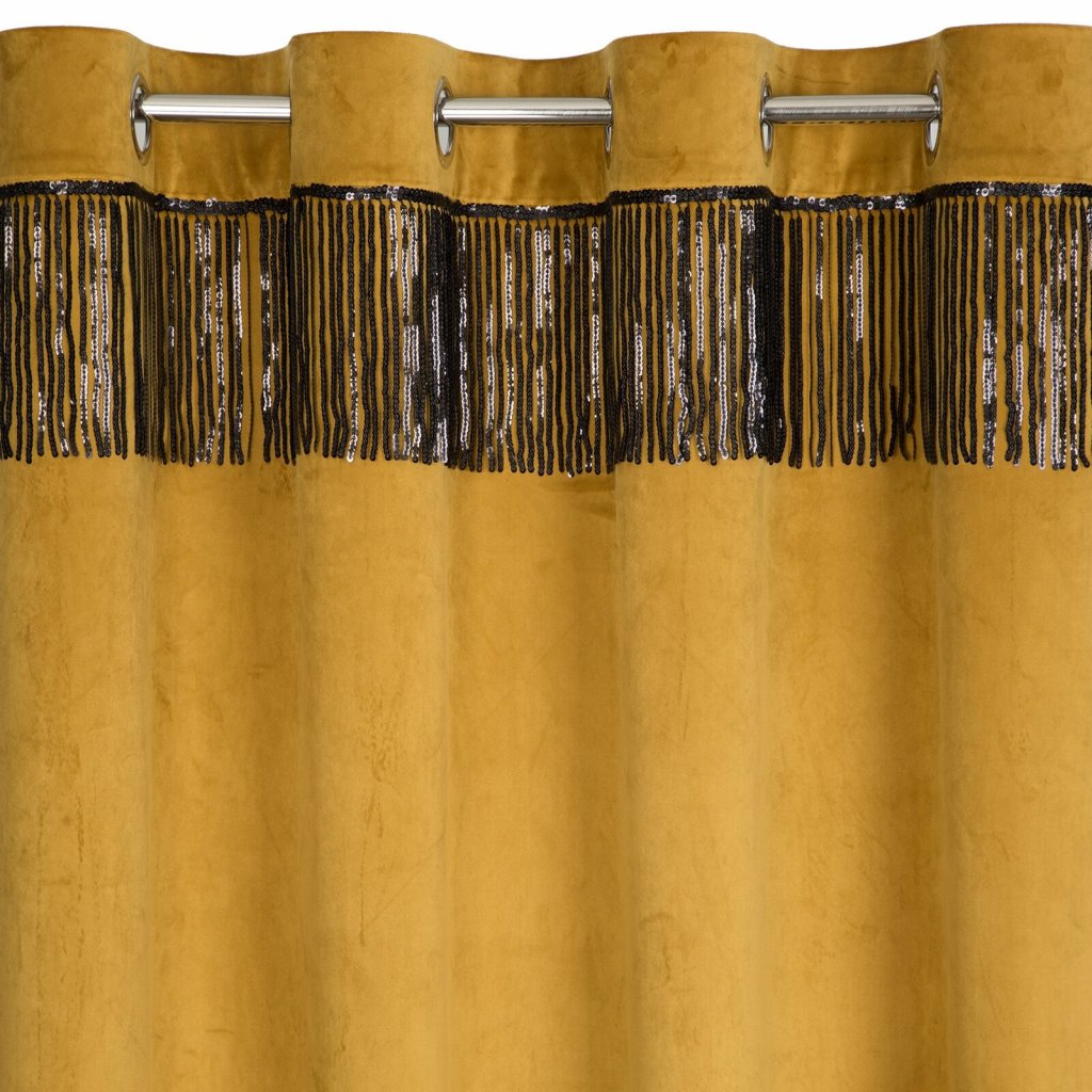 Sametový jednobarevný závěs s ozdobnou páskou s flitry šířka: 140 cm, délka: 250 cm, barva: zlatá, hmotnost: 290 GSM, složení: 100 % polyesterDoplňkové parametry
