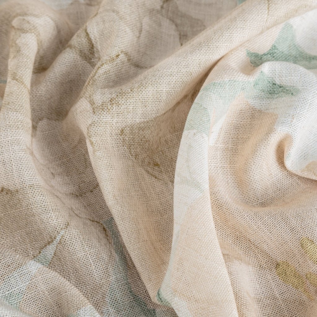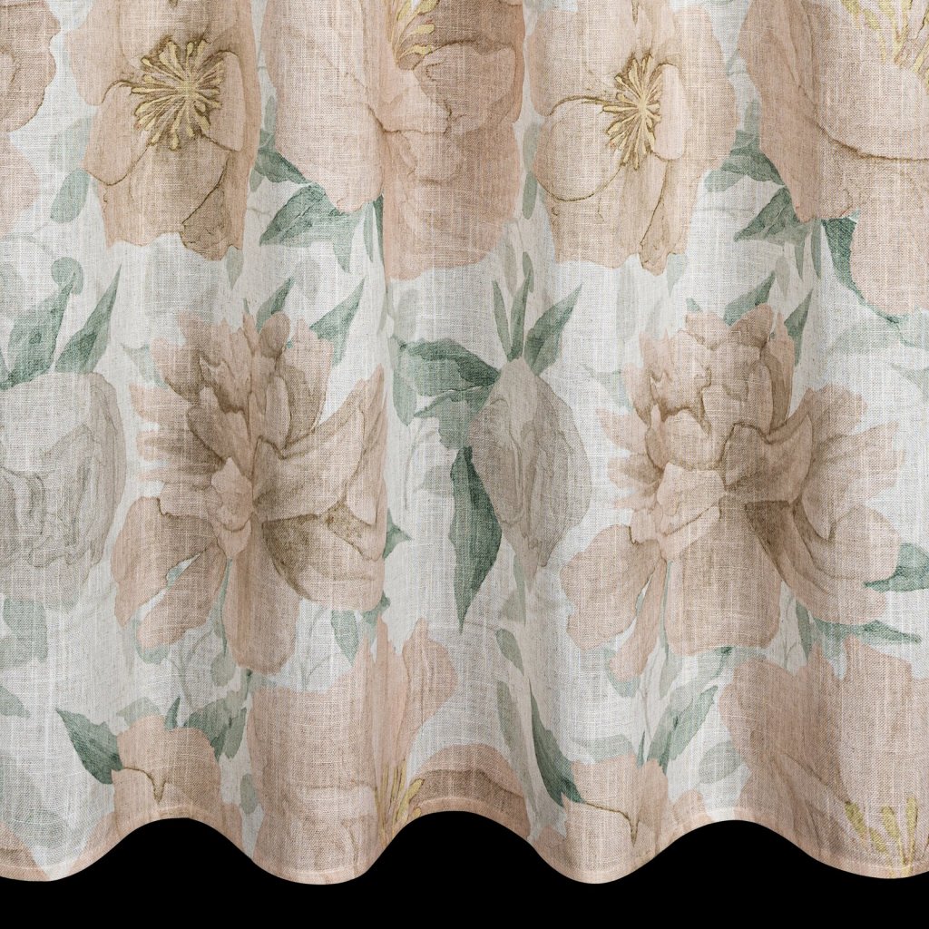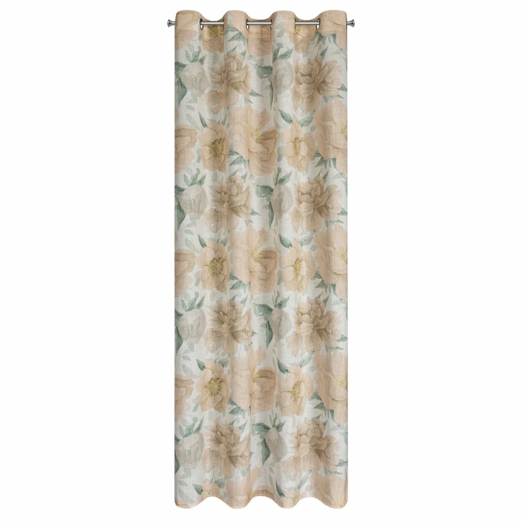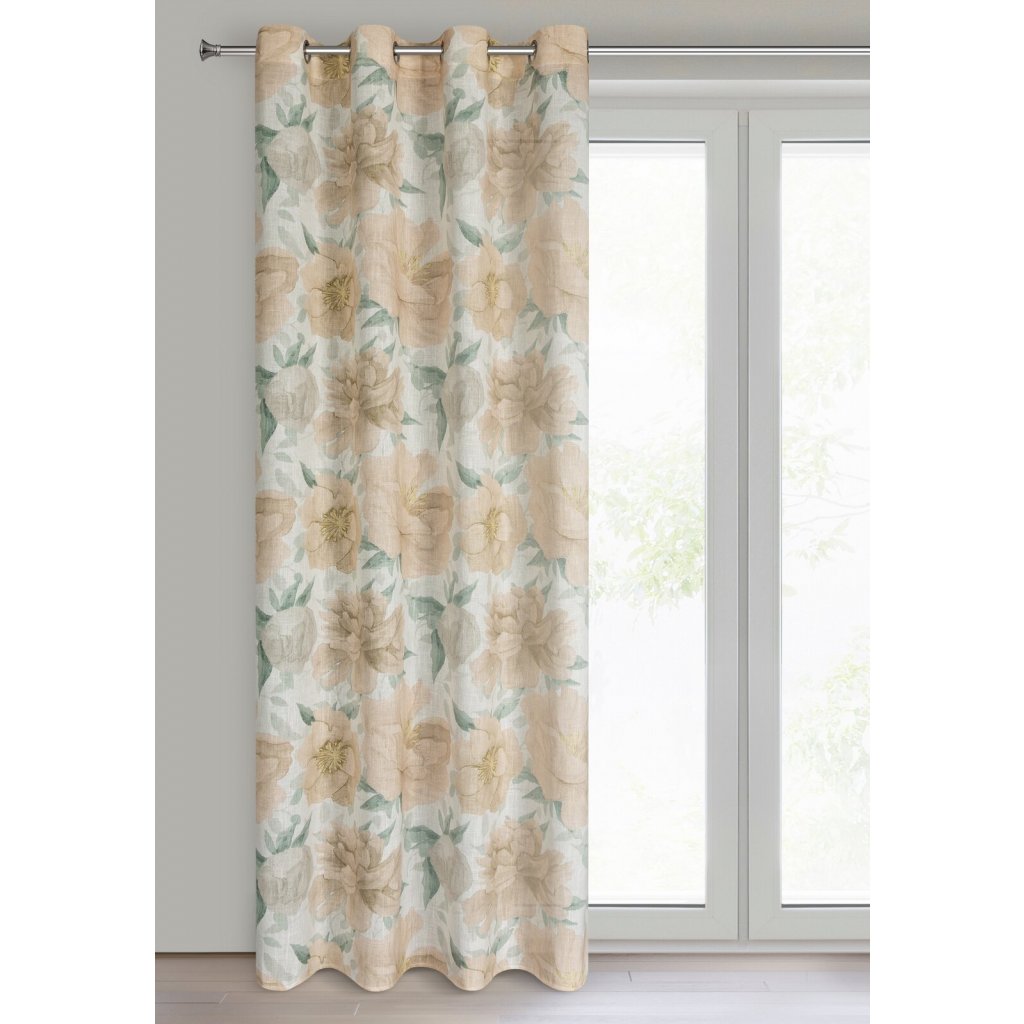 Hotový závěs s motivem květin a s nádechem lnu, šířka: 140 cm, délka: 250 cm, barva: vícebarevná, hmotnost: 220 GSM, složení: 15% len, 85% polyester.Doplňkové parametry