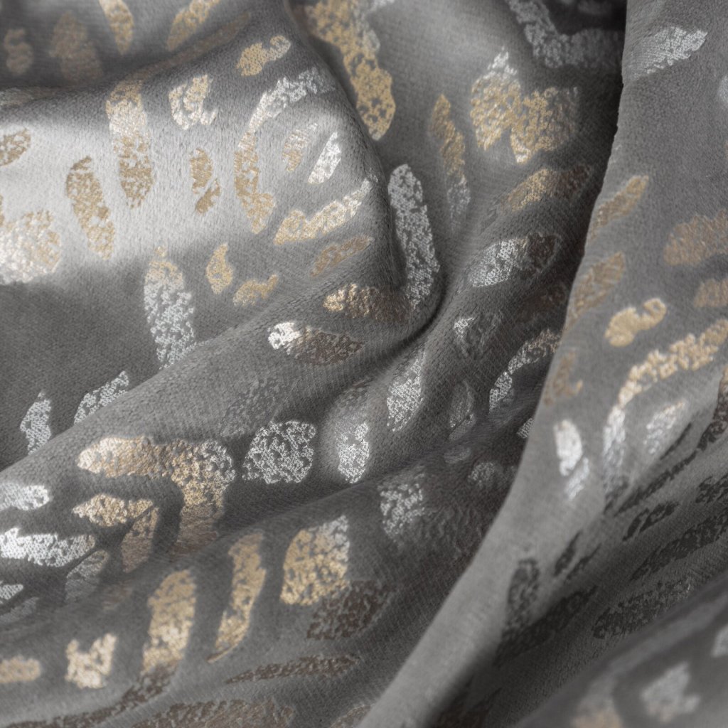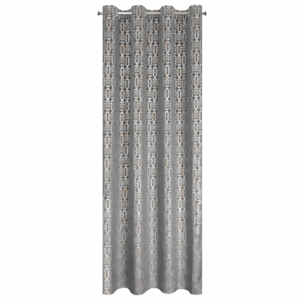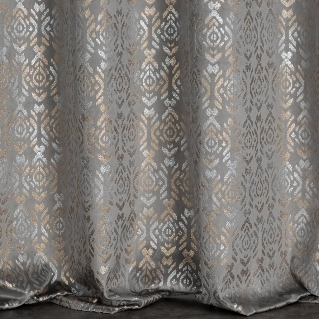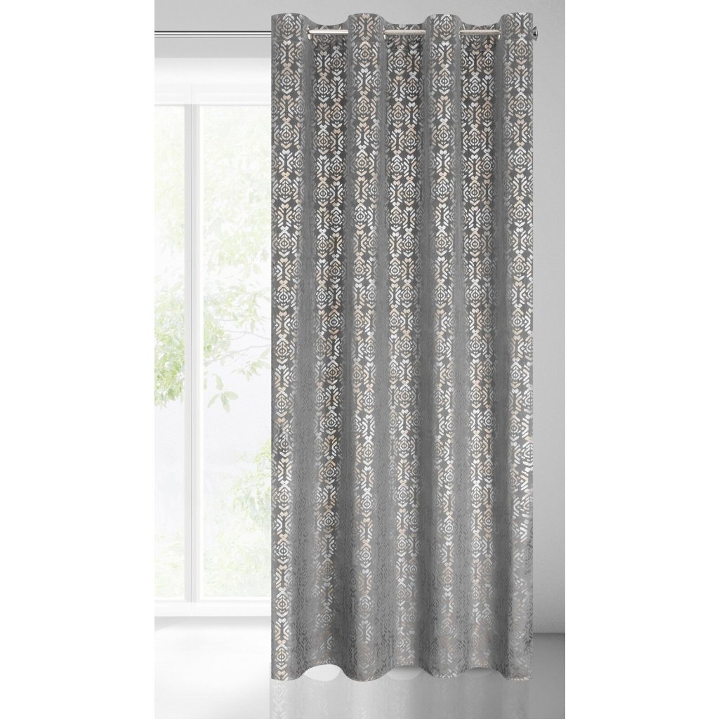 Sametový závěs se zlatým a stříbrným potiskem šířka: 140 cm, délka: 250 cm, barva: šedá, hmotnost: 200 GSM, složení: 100 % polyesterDoplňkové parametry