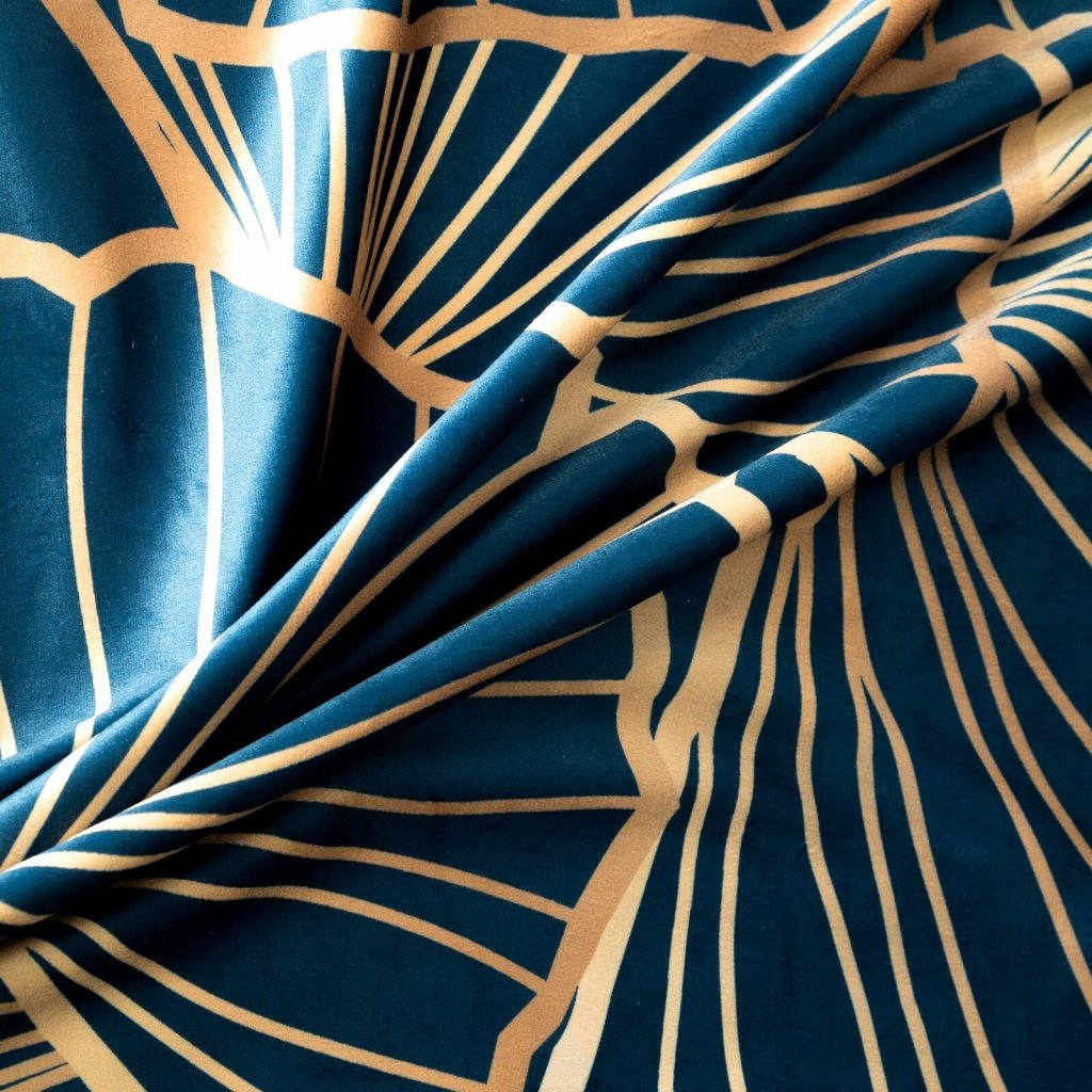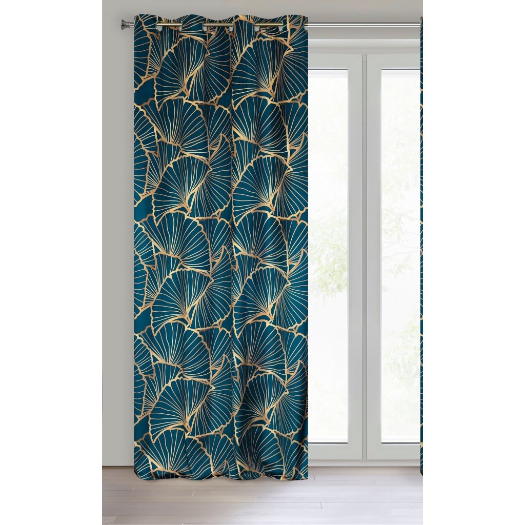 Sametový závěs Limited Collection zdobený potiskem. Šířka: 140 cm, délka: 250 cm, barva: tmavě modrá, hmotnost: 200 GSM, složení: 100 % polyesterDoplňkové parametry