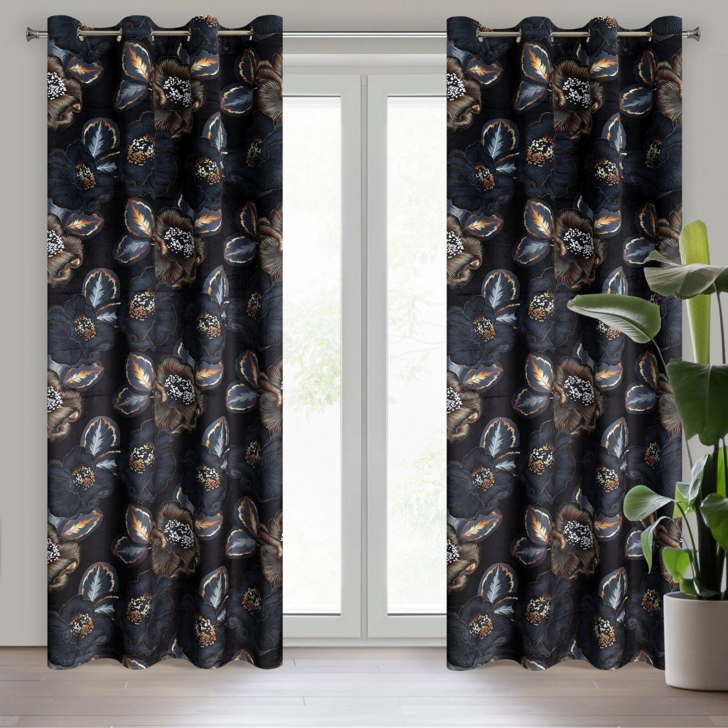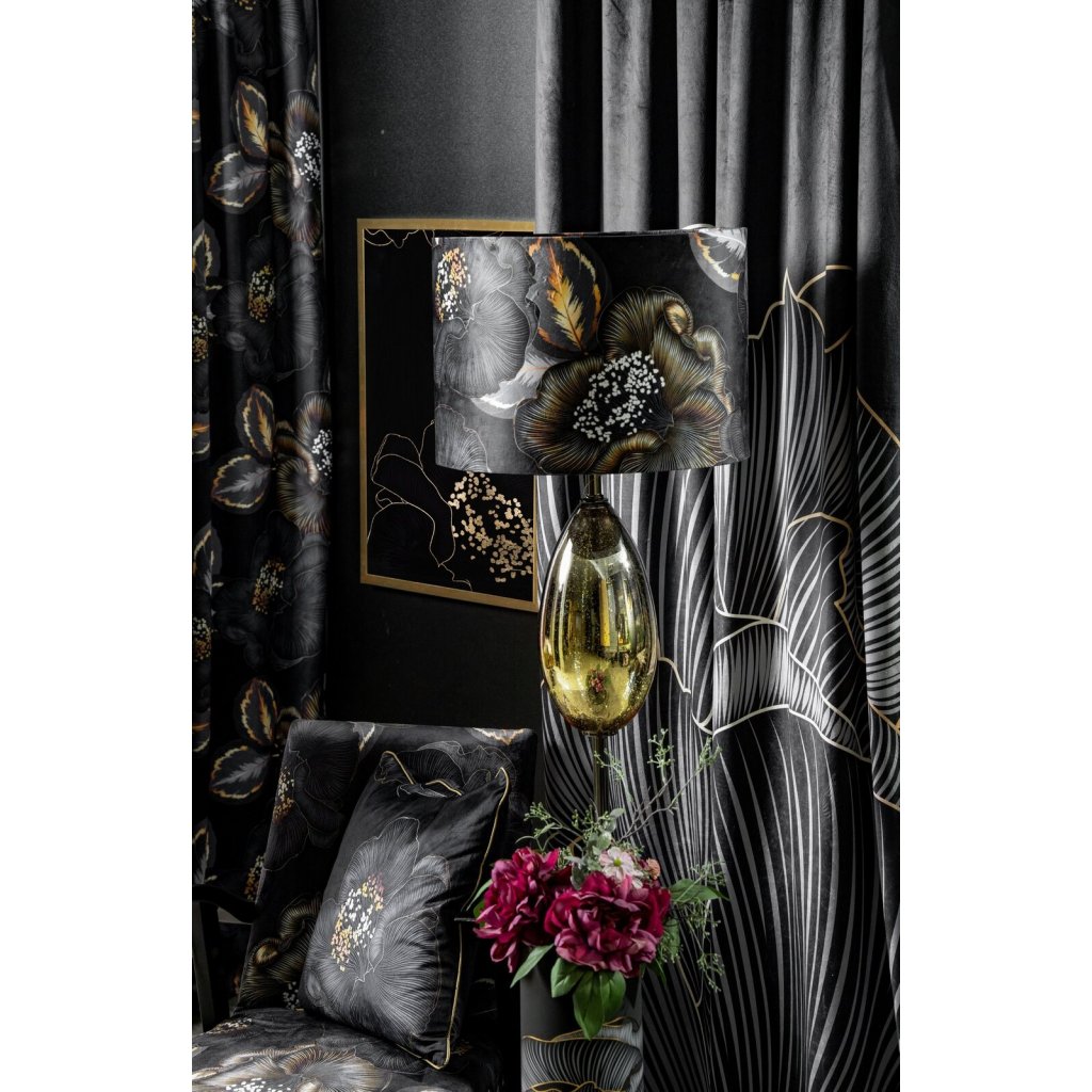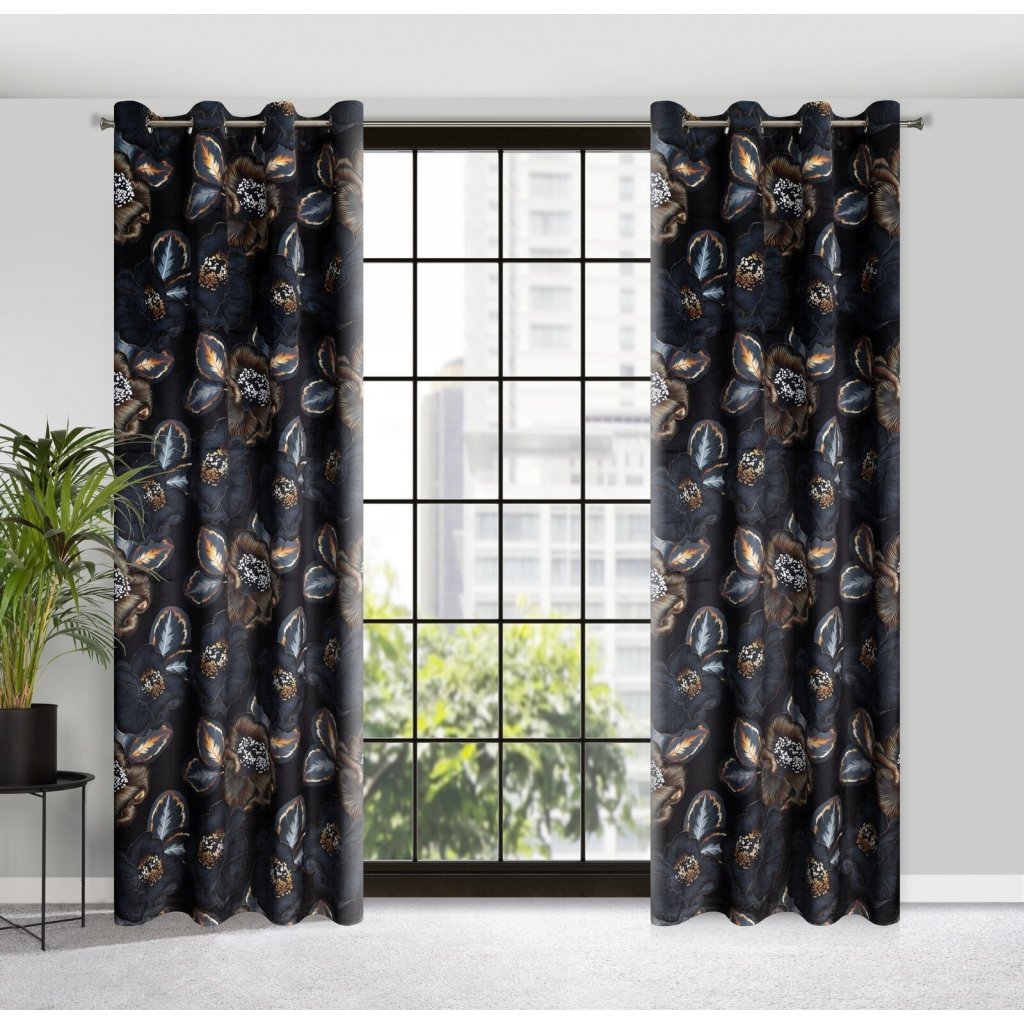 ZATEMŇOVACÍ ZÁVĚS NA KROUŽCÍCH LIMITED COLLECTION PEONIA2 140X250 CM ČERNÁ