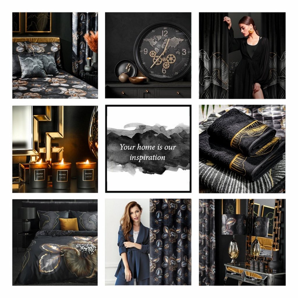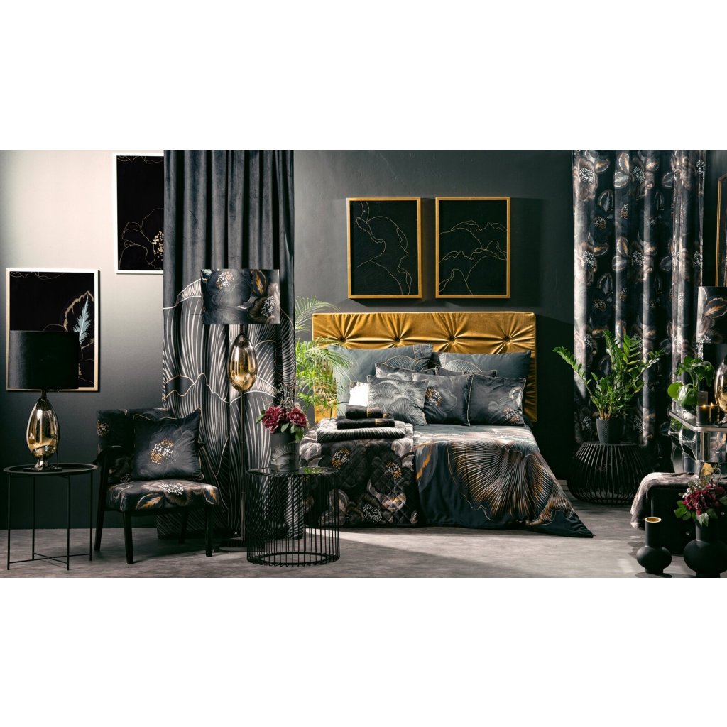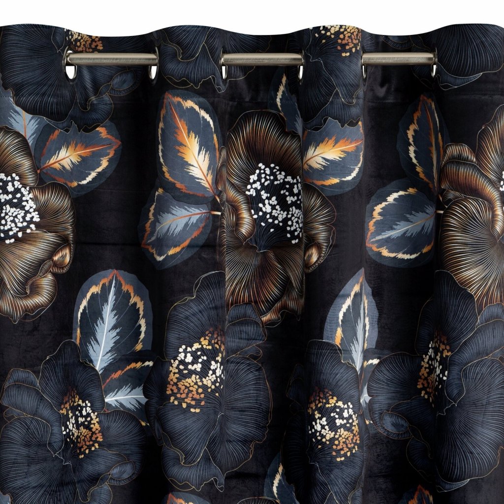 ZATEMŇOVACÍ ZÁVĚS NA KROUŽCÍCH LIMITED COLLECTION PEONIA2 140X250 CM ČERNÁ