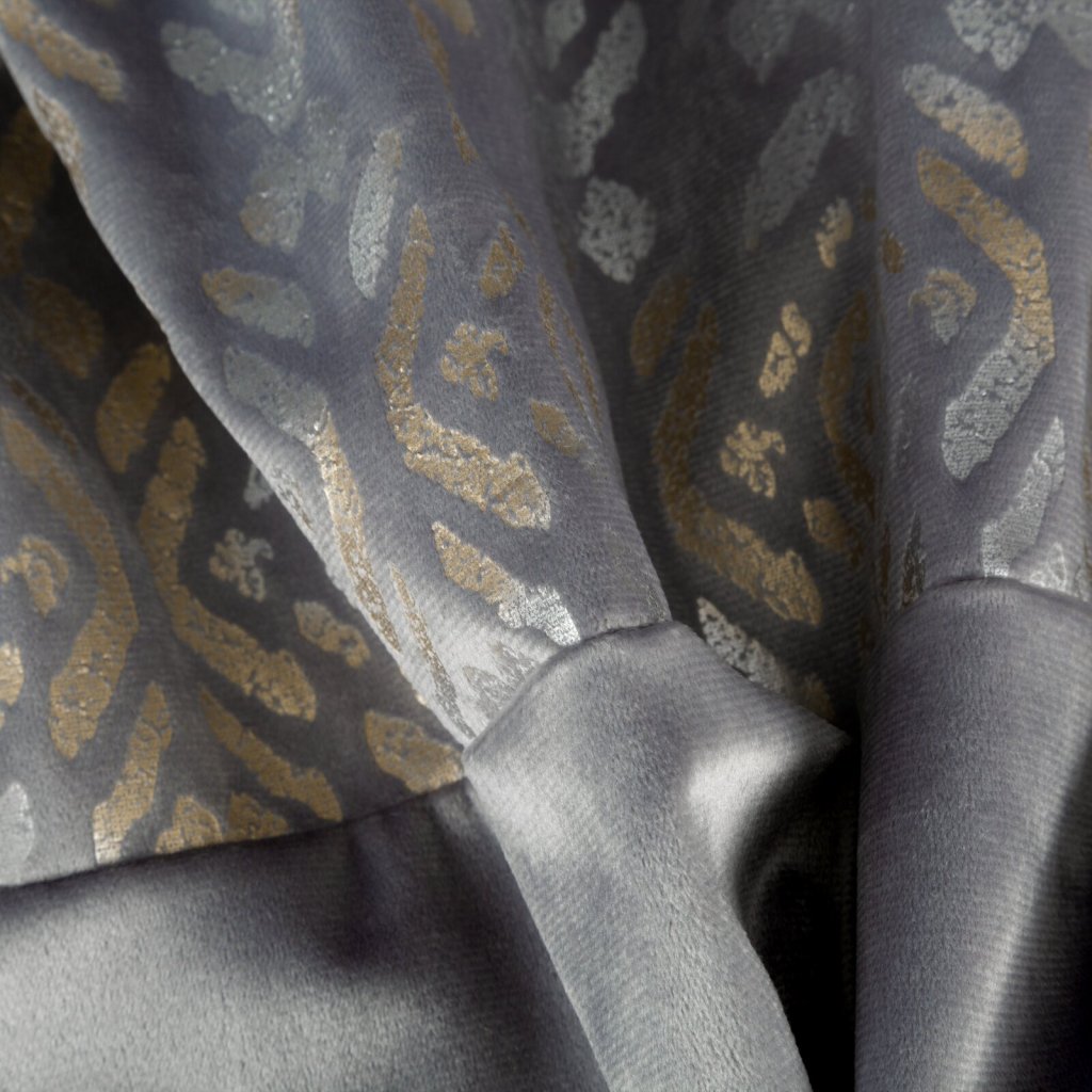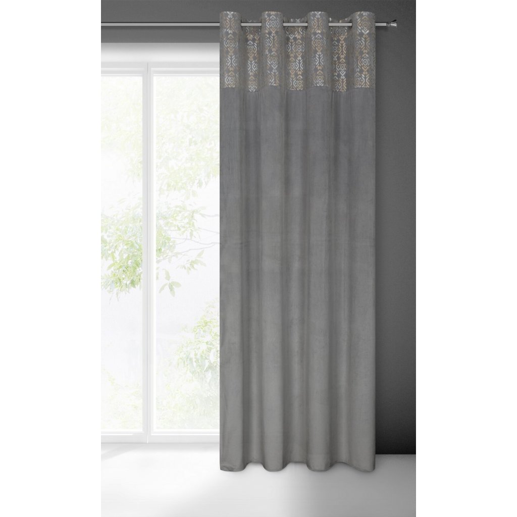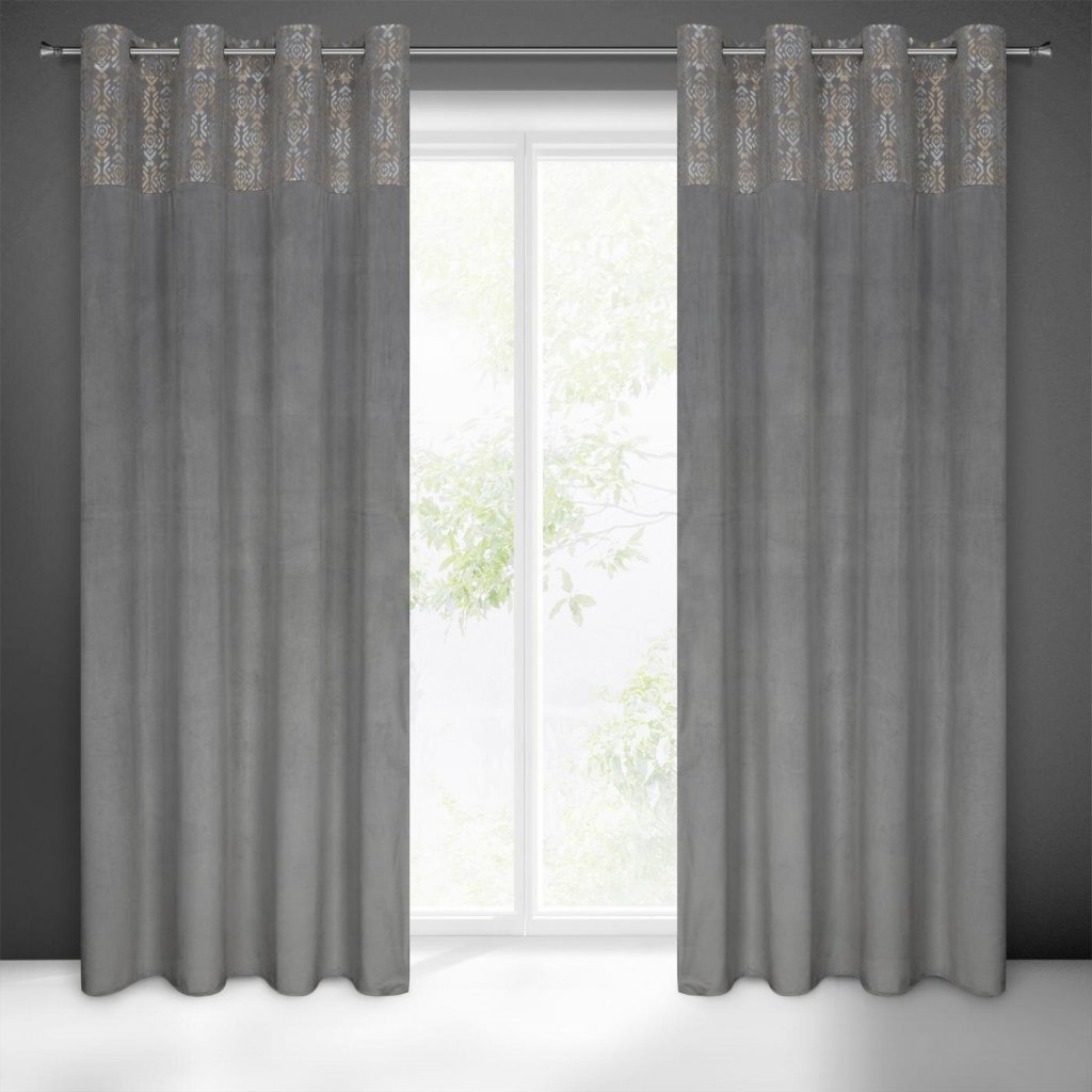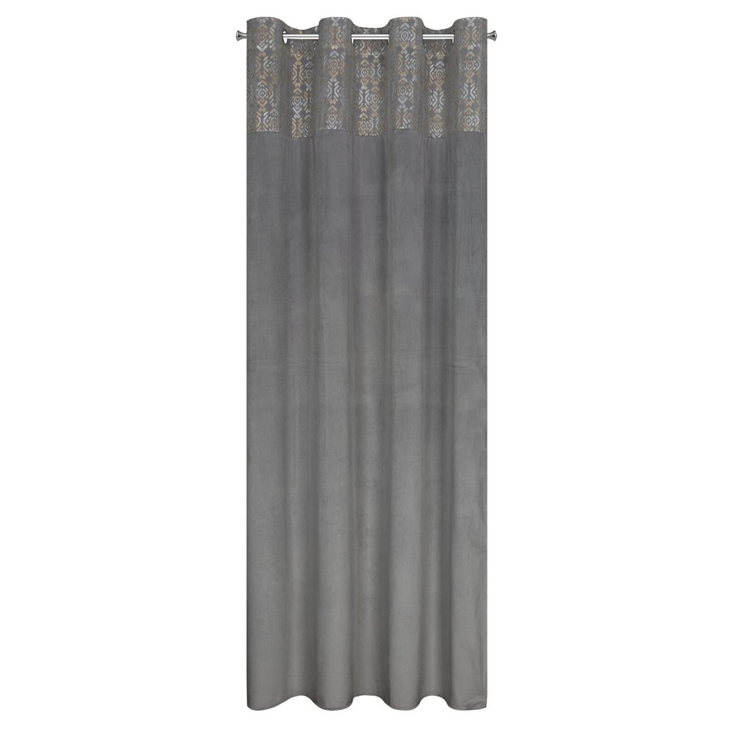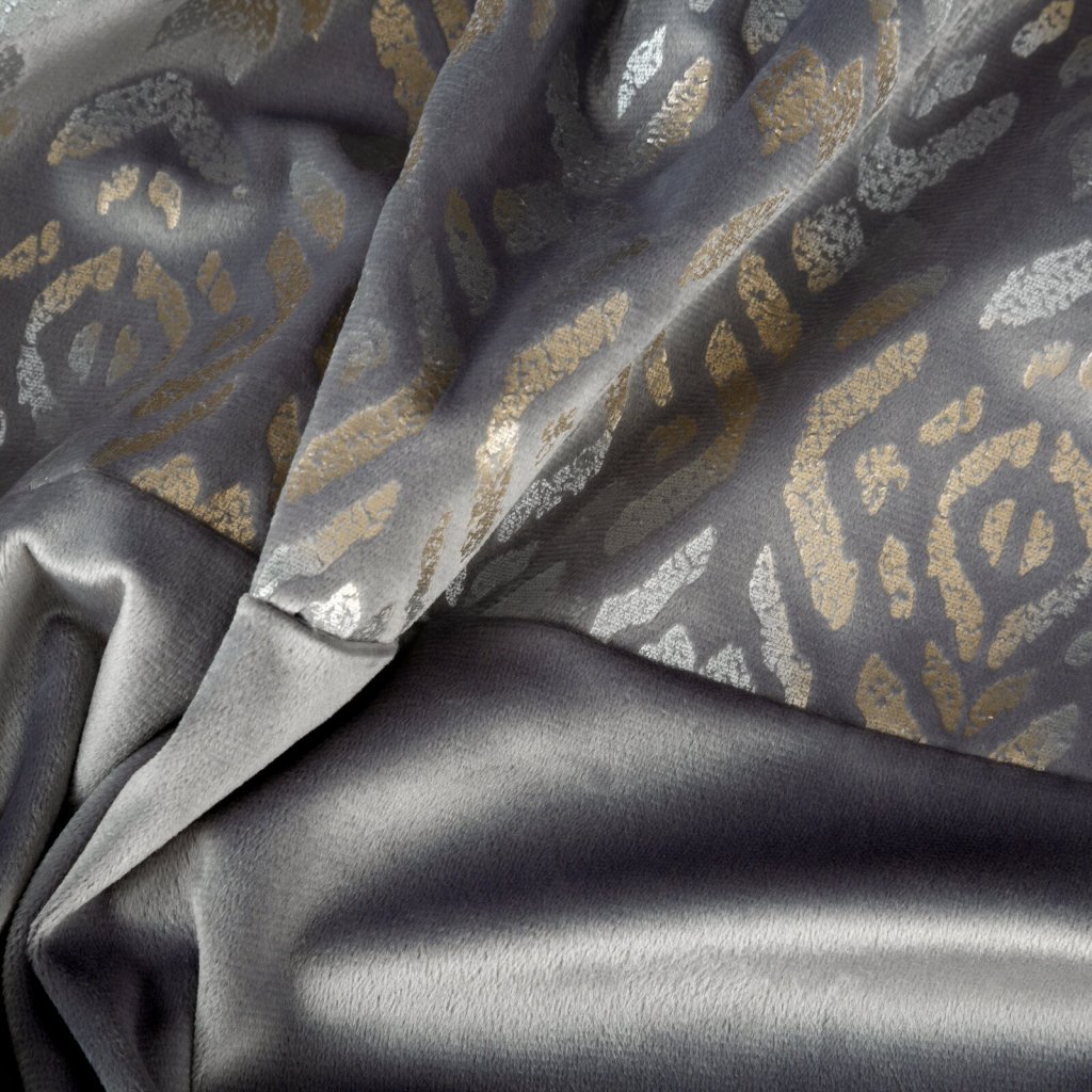 Sametový závěs se zlatým a stříbrným potiskem, šířka: 140 cm, délka: 250 cm, barva: stříbrná, Hmotnost: 200 GSM, Složení: 100 % polyesterDoplňkové parametry