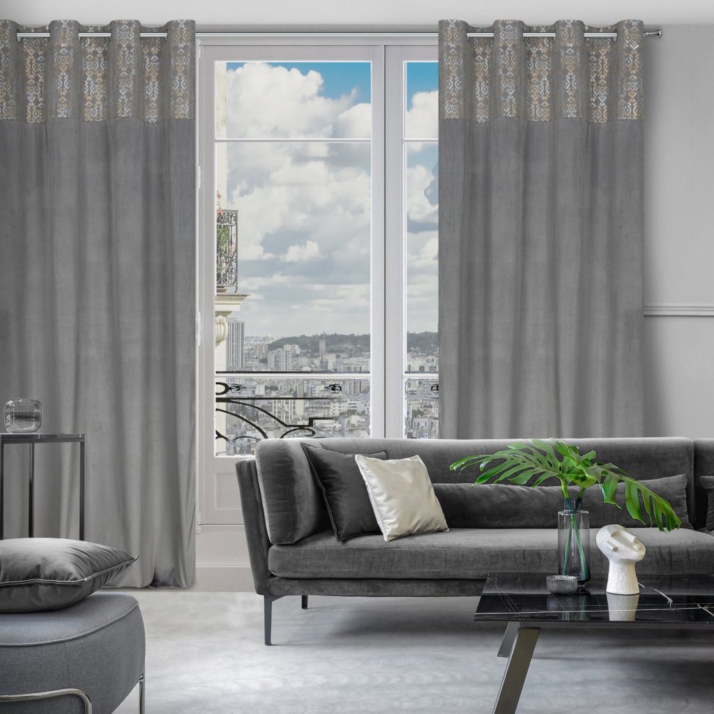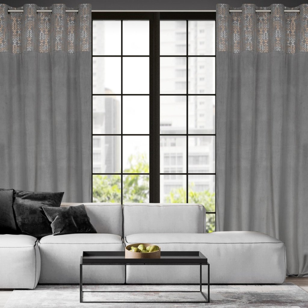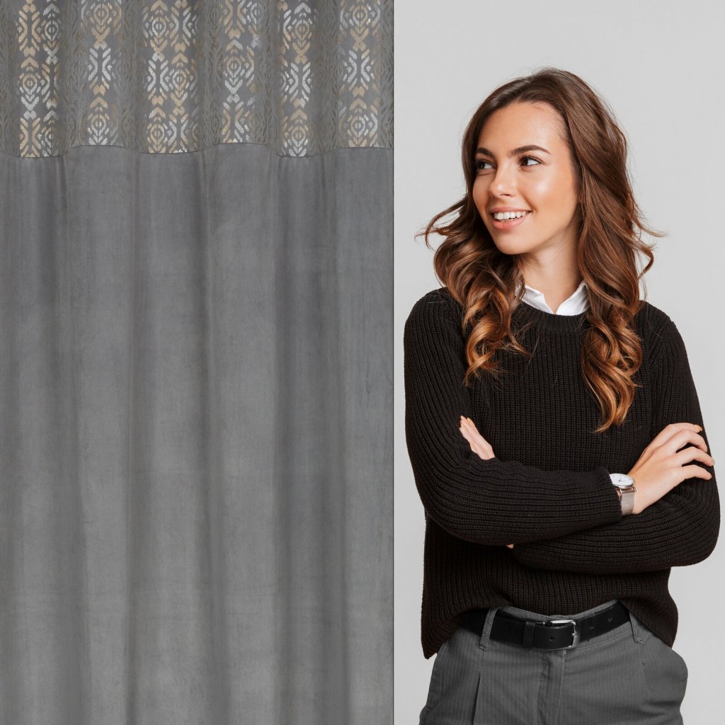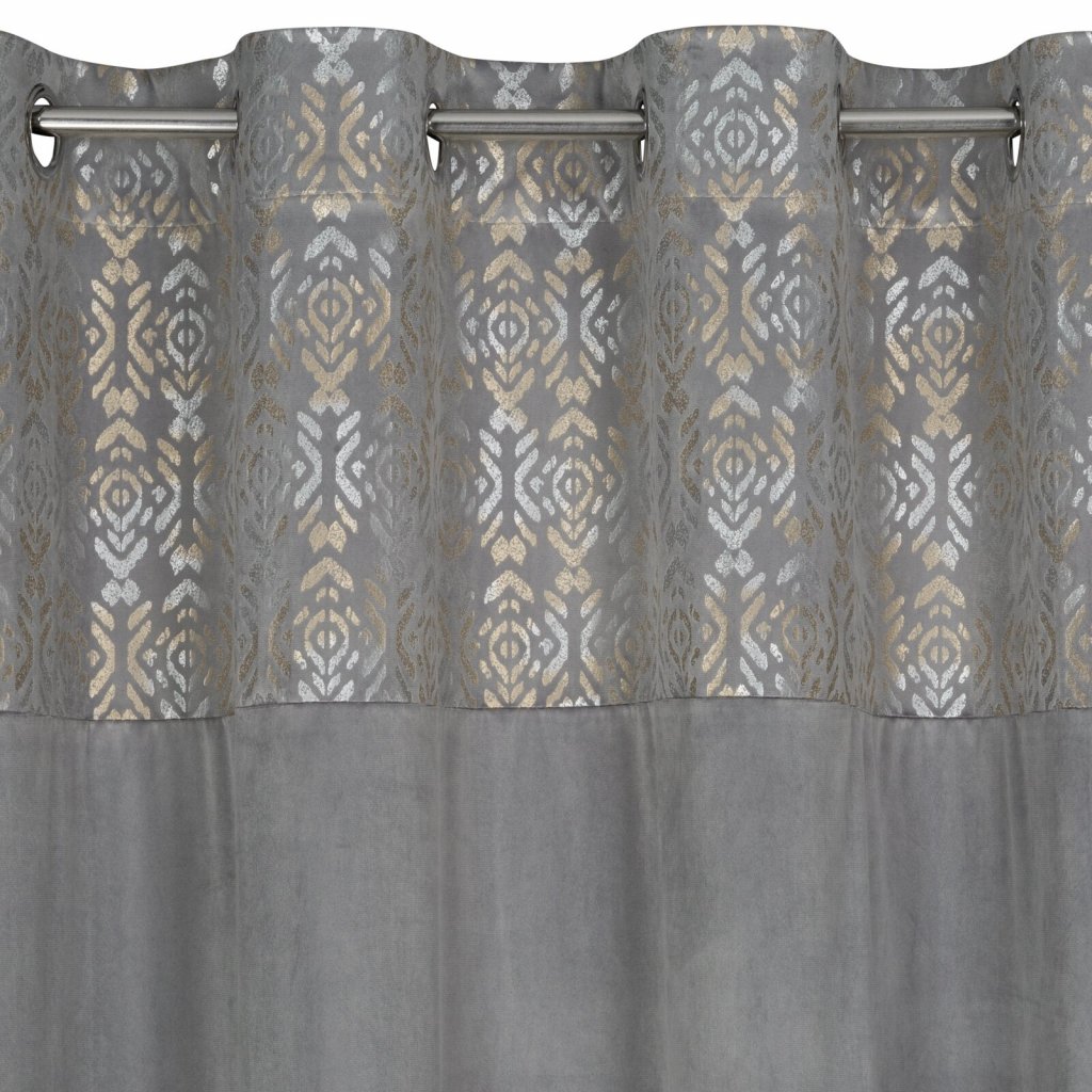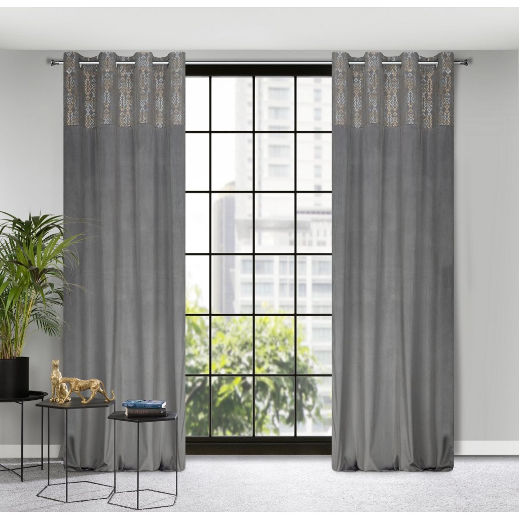 Sametový závěs se zlatým a stříbrným potiskem, šířka: 140 cm, délka: 250 cm, barva: stříbrná, Hmotnost: 200 GSM, Složení: 100 % polyesterDoplňkové parametry
