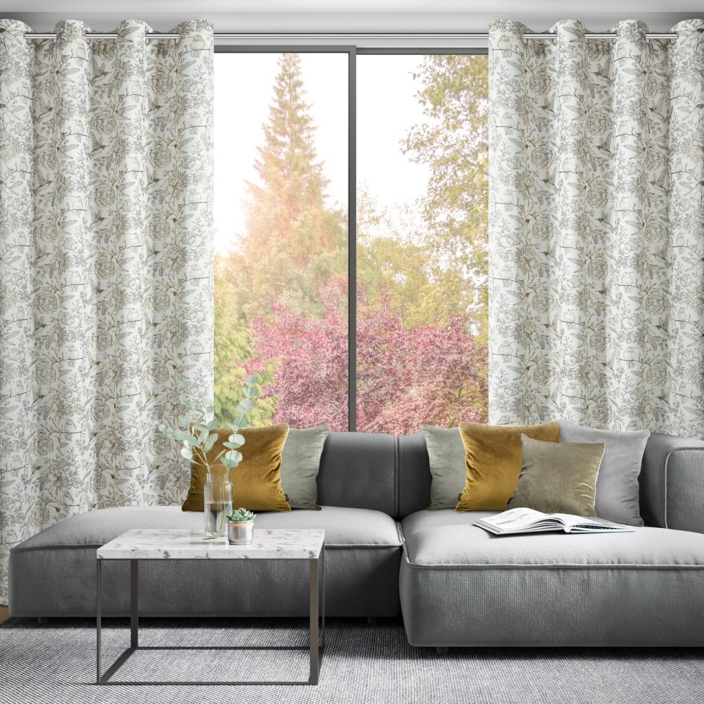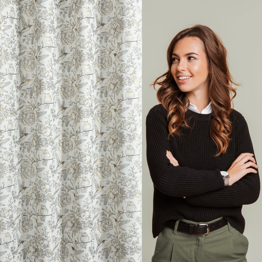 Hotový závěs LUCINA2 zdobí rostlinný motiv, který přináší do místnosti svěží, harmonickou a přírodní atmosféru. Potisk doplňují jemné, třpytivé zlaté akcenty, které zácloně dodávají elegantní, lehký a poutavý vzhled. Šířka: 140 cm, délka: 250 cm, barva: vícebarevná, hmotnost: 200 GSM, složení: 4% len, 96% polyester.Doplňkové parametry