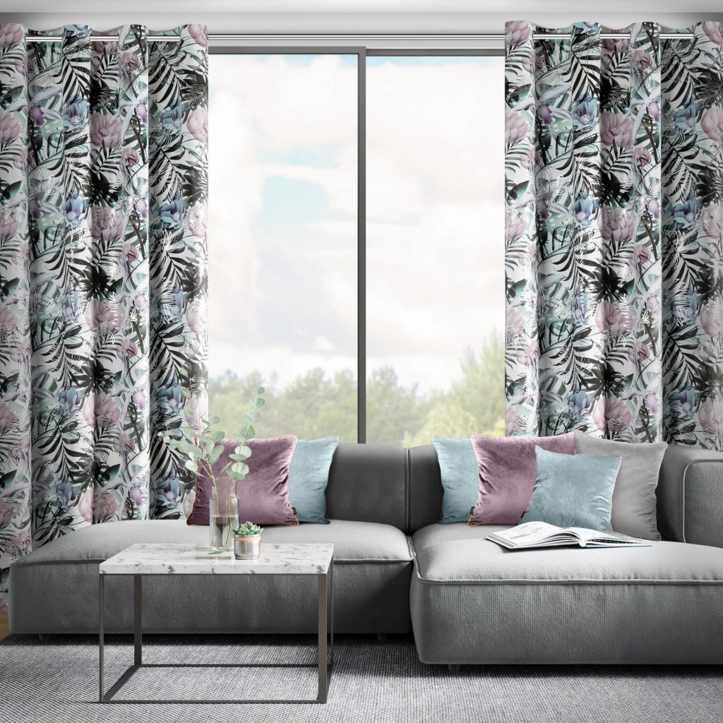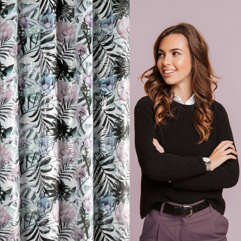 Sametový závěs s květinovým potiskem, šířka: 140 cm, délka: 250 cm, barva: vícebarevná, hmotnost: 200 GSM, složení: 100% polyester.Doplňkové parametry