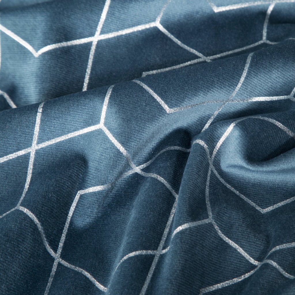 Moderní, až futuristický závěs zdobený hustě tkanou stříbrnou nití dokonale odráží světlo. Lehká tkanina se snadno aranžuje do měkkých, lesklých vln. šířka: 140 cm, délka: 250 cm, barva: modrá, hmotnost: 210 GSM, složení: 100 % polyesterDoplňkové parametry