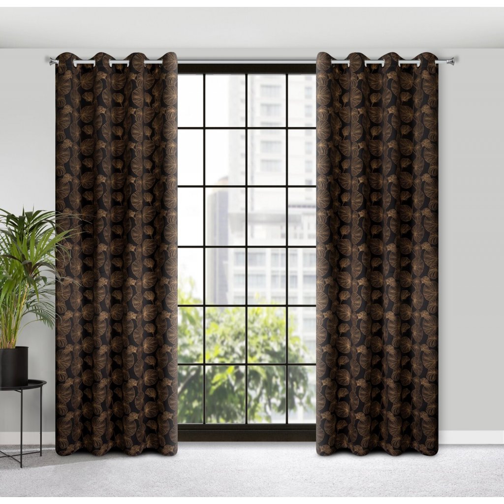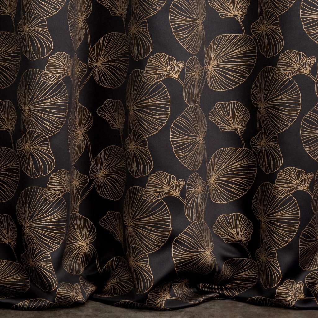 Zatemňovací závěs se zlatým potiskem šířka: 140 cm, délka: 250 cm, barva: černá, hmotnost: 230 GSM, složení: 100% polyester.Doplňkové parametry