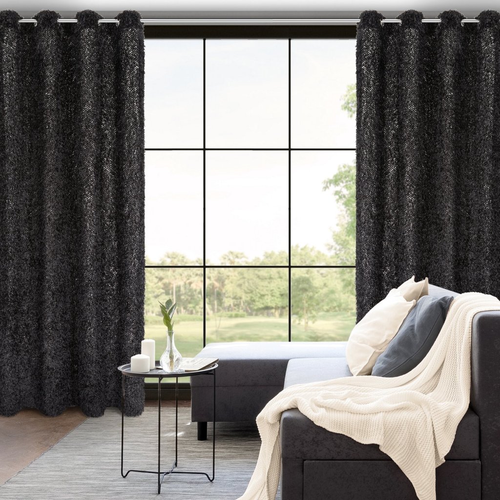 Hotový závěs s třásněmi, šířka: 140 cm, délka: 250 cm, barva: černá, hmotnost: 230 GSM, složení: 100% polyester.Doplňkové parametry
