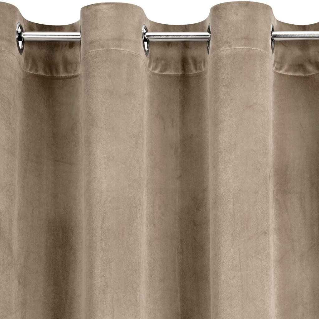 Jemný sametový závěs s matným povrchem. Tkanina se středními vlastnostmi zatemnění dodává interiéru elegantní charakter. Šířka: 140 cm, délka: 260 cm, barva: tmavě béžová, hmotnost: 200 GSM, složení: 100% polyester.Doplňkové parametry