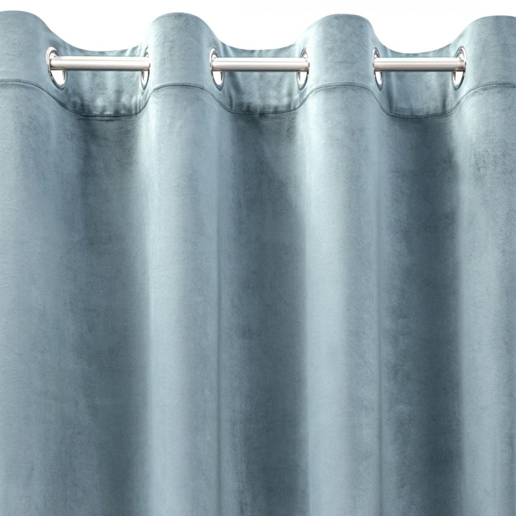 Jemný sametový závěs s matným povrchem. Masivní tkanina se středními vlastnostmi zatemnění dodává interiéru elegantní charakter, šířka: 140 cm, délka: 250 cm, barva: světle modrá, hmotnost: 200 GSM, složení: 100% polyester.Doplňkové parametry