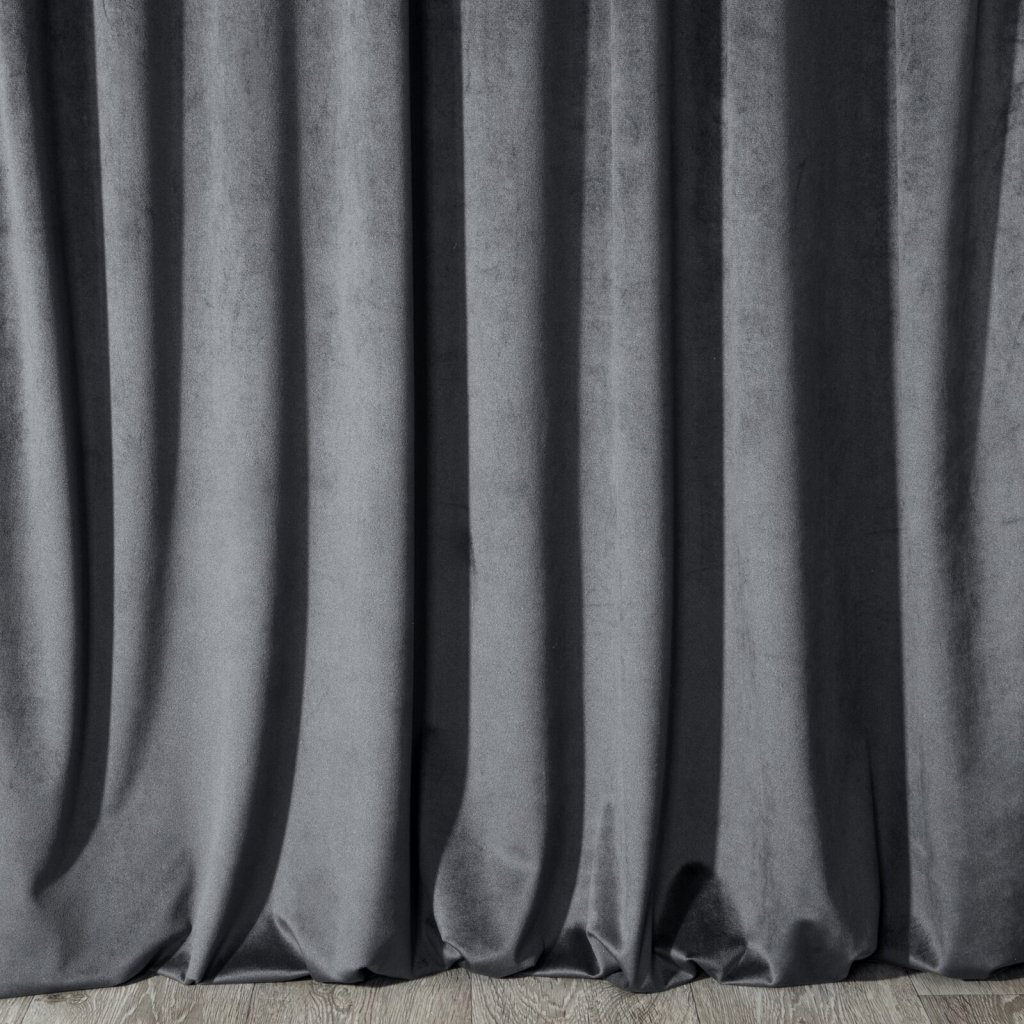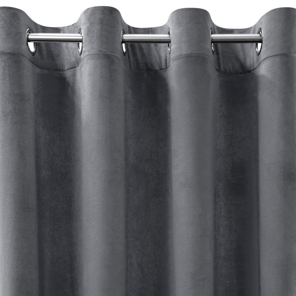 Jemný sametový závěs s matným povrchem. Hrubá tkanina se středními vlastnostmi zatemnění dodává interiéru elegantní charakter. Šířka: 140 cm, délka: 250 cm, barva: grafitová, hmotnost: 200 GSM, složení: 100% polyester.Doplňkové parametry