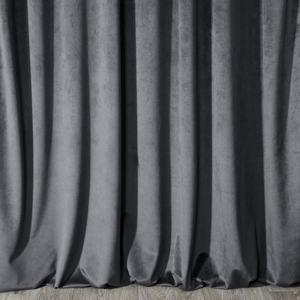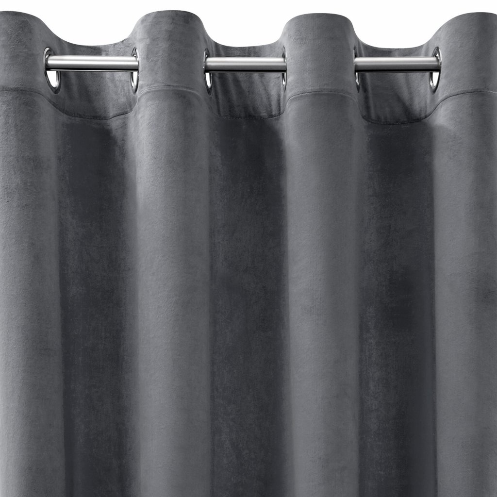 Měkký sametový závěs s matným povrchem. Měkká tkanina se středně silným stíněním dodává interiéru elegantní charakter. Šířka: 140 cm, délka: 250 cm, barva: grafitová, hmotnost: 200 GSM, složení: 100 % polyesterDoplňkové parametry