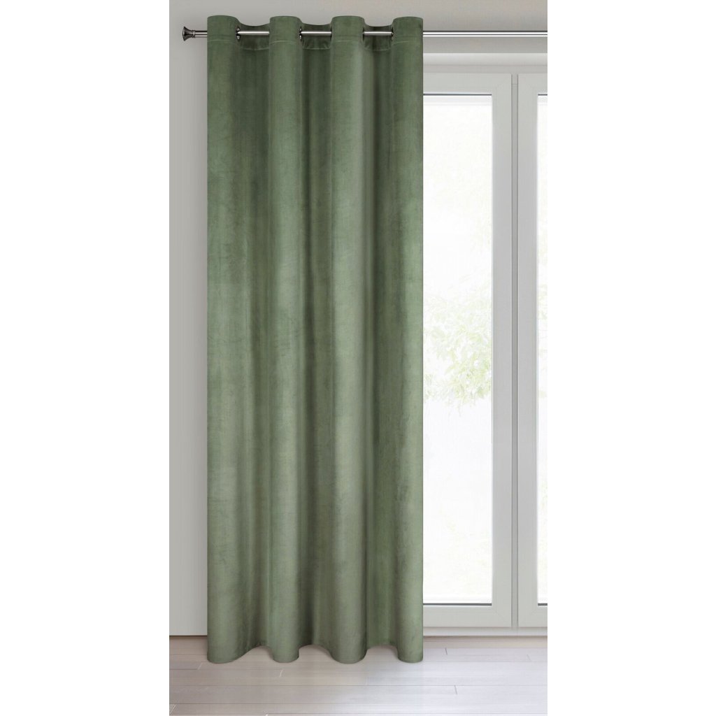 Jemný sametový závěs s matným povrchem. Hrubá tkanina se středními vlastnostmi zatemnění dodává interiéru elegantní charakter. Šířka: 140 cm, délka: 250 cm, barva: olivová, hmotnost: 200 GSM, složení: 100% polyester.Doplňkové parametry