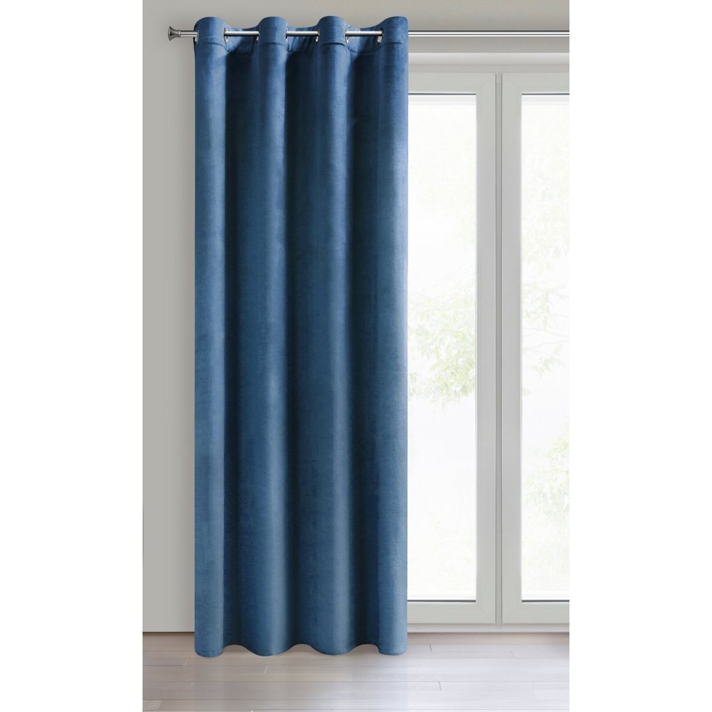 Jemný sametový závěs s matným povrchem. Masivní tkanina se středními vlastnostmi zatemnění dodává interiéru elegantní charakter, šířka: 140 cm, délka: 250 cm, barva: tmavě modrá, hmotnost: 200 GSM, složení: 100% polyester.Doplňkové parametry