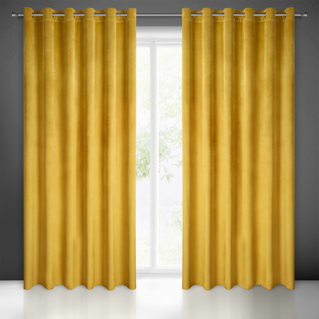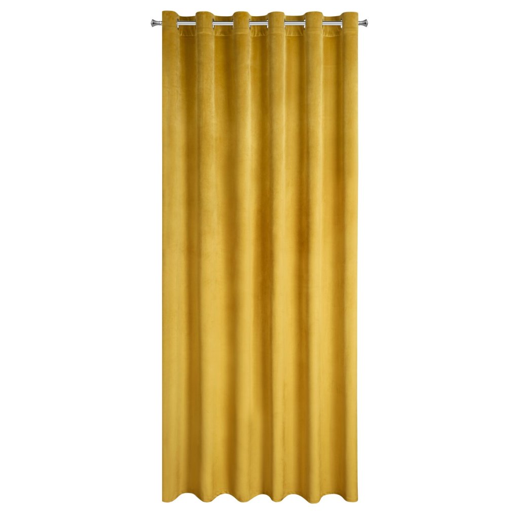 Měkký sametový závěs s matným povrchem. Měkká tkanina se středně silným stíněním dodává interiéru elegantní charakter. Šířka: 215 cm, délka: 250 cm, barva: hořčicová, hmotnost: 200 GSM, složení: 100 % polyesterDoplňkové parametry