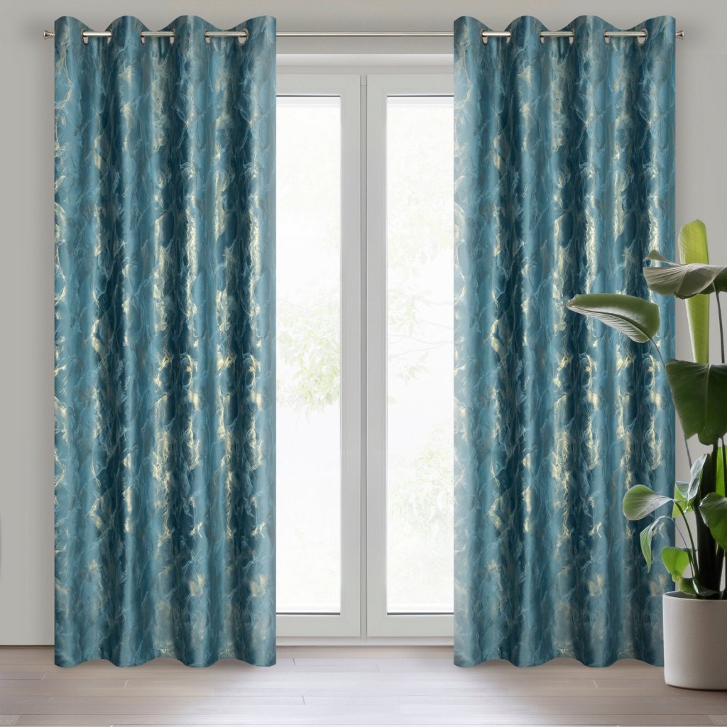 Sametový závěs s metalickým potiskem, šířka: 140 cm, délka: 270 cm, barva: tmavě modrá, hmotnost: 200 GSM, složení: 100% polyester.Doplňkové parametry