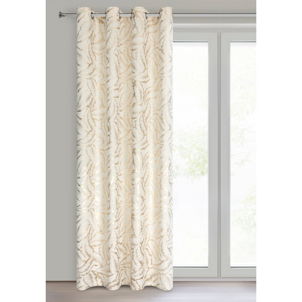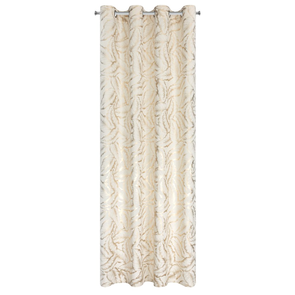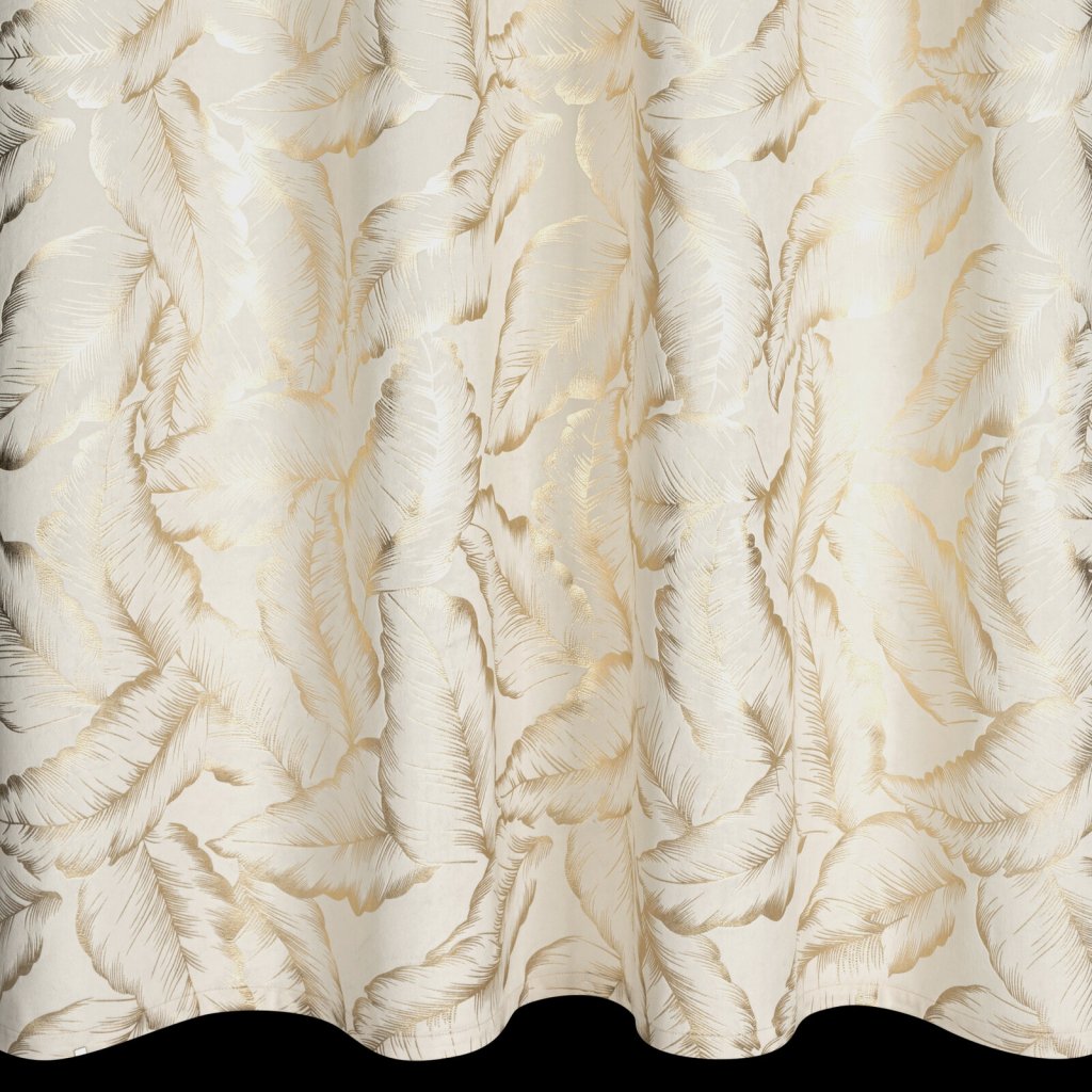 Kolekce závěsů Milena s moderním lesklým potiskem listů na jemné sametové látce. Hladká látka v jednotné barvě odráží světlo, což způsobuje mírný lesk v závislosti na úhlu dopadu světla. Šířka: 140 cm, délka: 250 cm, barva: krémová a šampaňská, hmotnost: 200 GSM, složení: 100% polyester.Doplňkové parametry