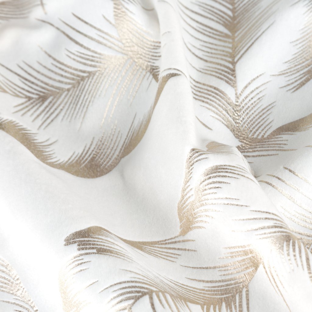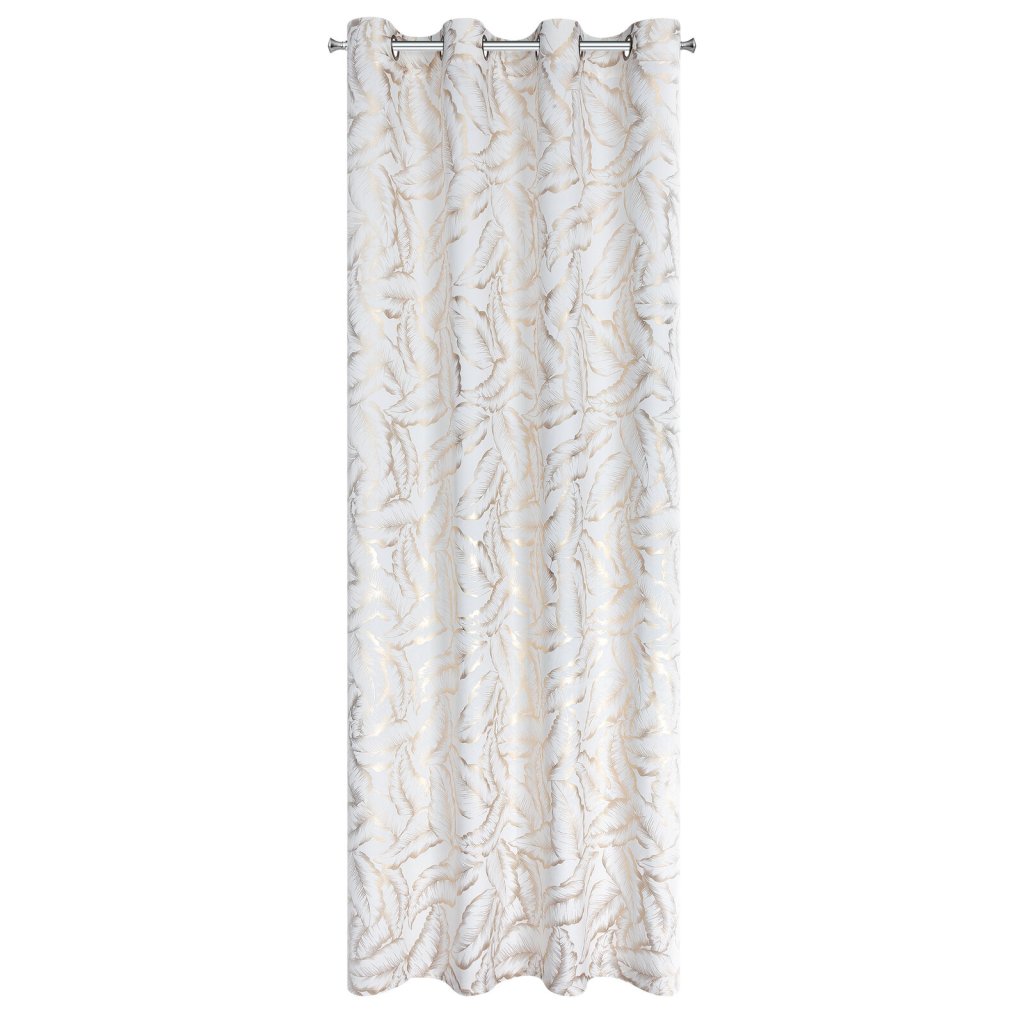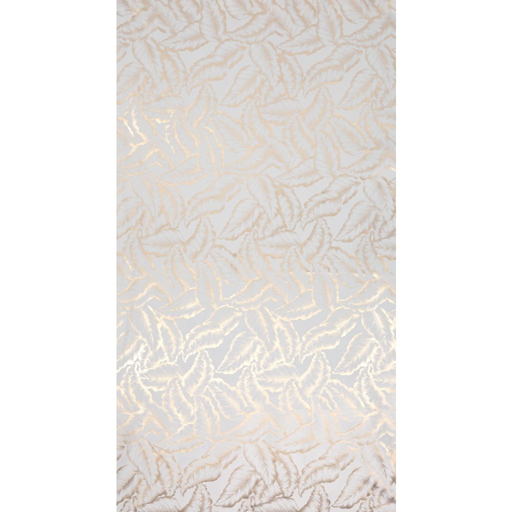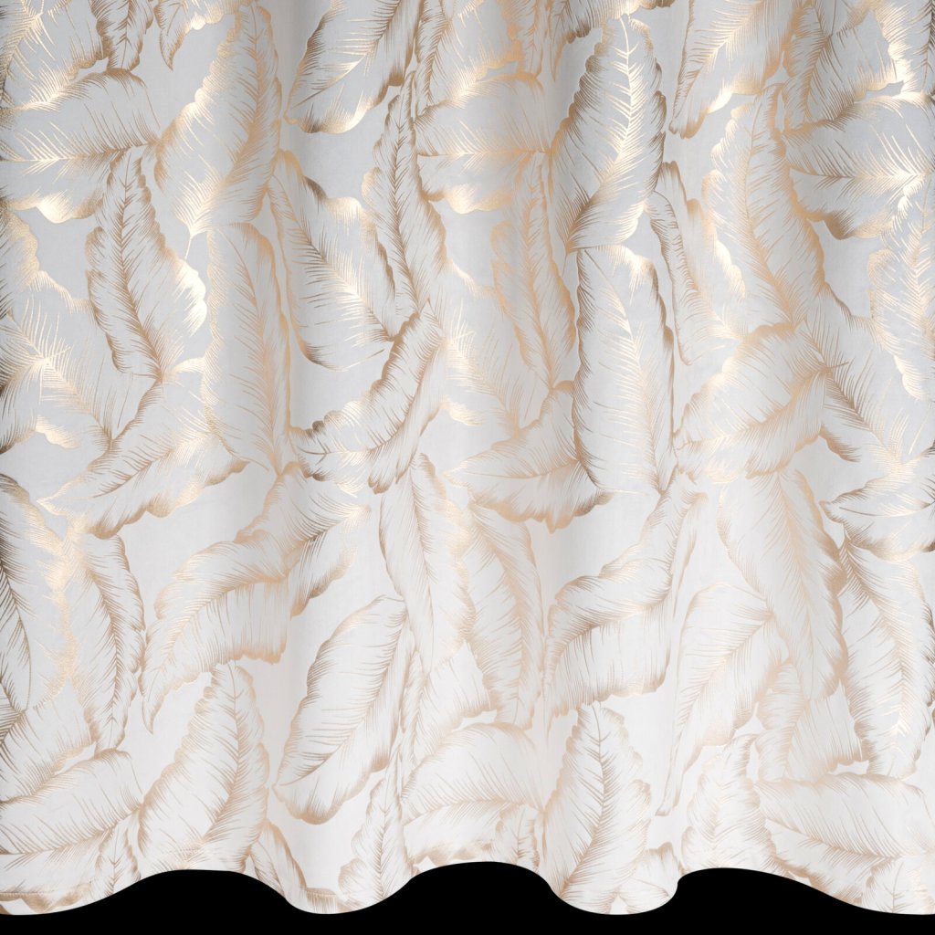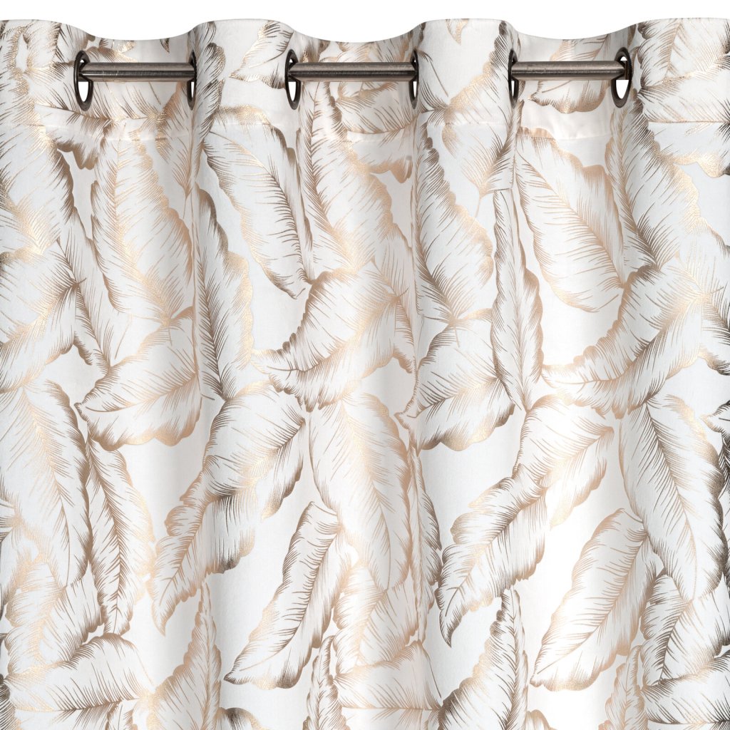 Kolekce závěsů Milena s moderním lesklým potiskem listů na jemné sametové látce. Hladká látka v jednotné barvě odráží světlo, což způsobuje mírný lesk v závislosti na úhlu dopadu světla. Šířka: 140 cm, délka: 250 cm, barva: bílá a šampaňská, hmotnost: 200 GSM, složení: 100% polyester.Doplňkové parametry