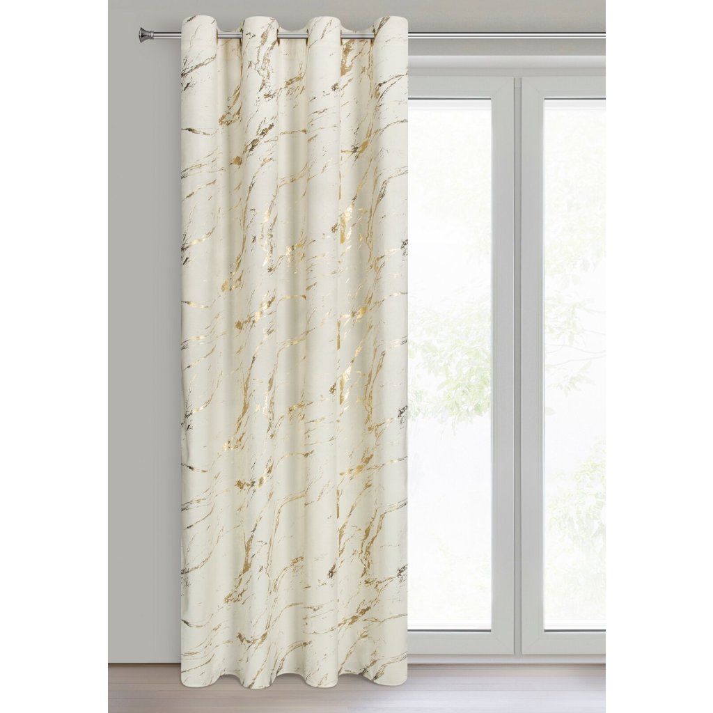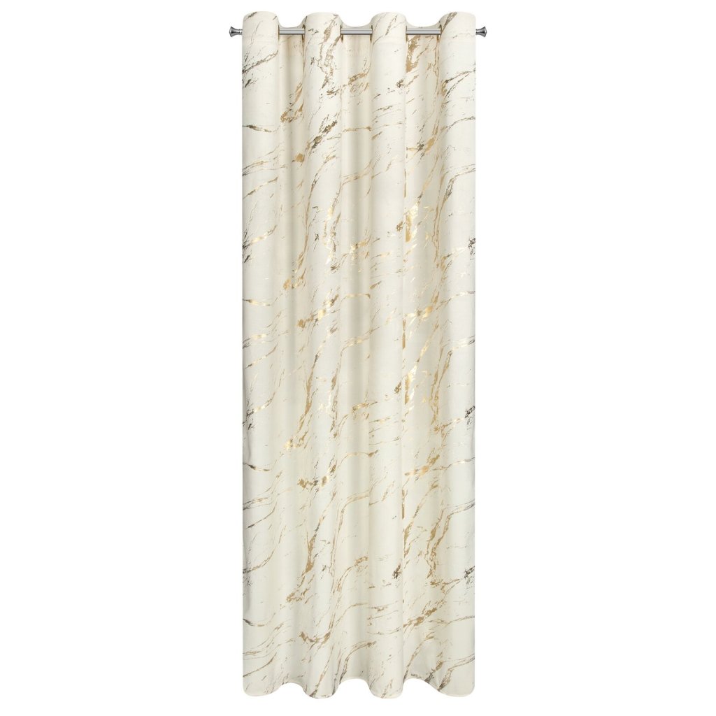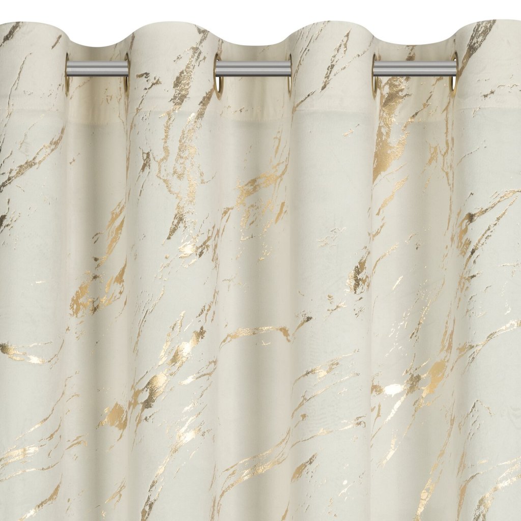 Dodejte svému interiéru elegantní šmrnc se sametovým závěsem MOLLY v jemném krémovém odstínu, ozdobeným zářivým metalickým potiskem. Vzor inspirovaný mramorem zachycuje světlo z každého úhlu a dodává prostoru styl. Závěs má střední úroveň zatemnění a kruhy ve zlatém dekoru. Šířka: 140 cm, délka: 250 cm, barva: krémová a šampaňská, hmotnost: 200 GSM, složení: 100% polyester.Doplňkové parametry