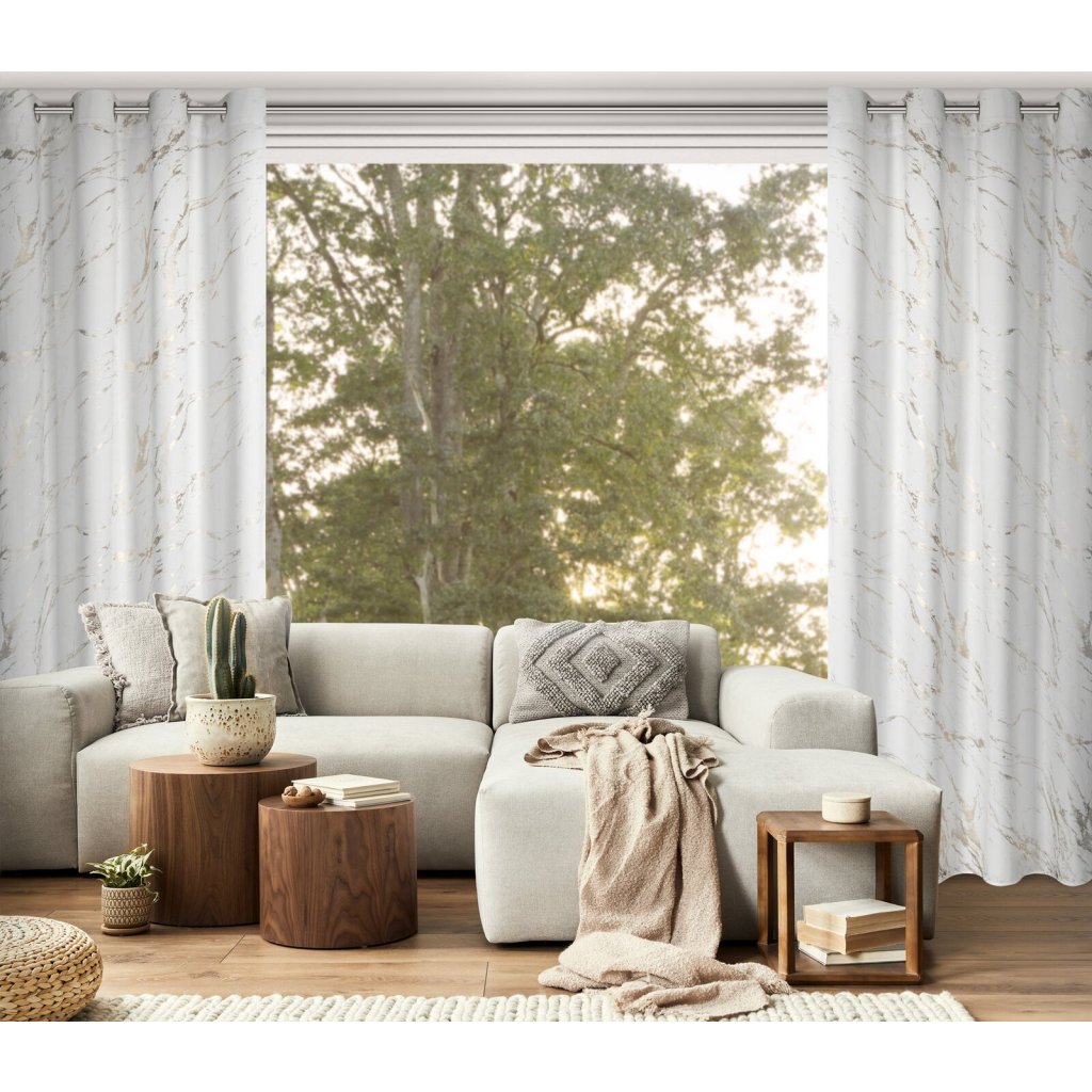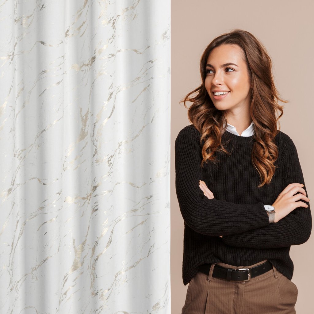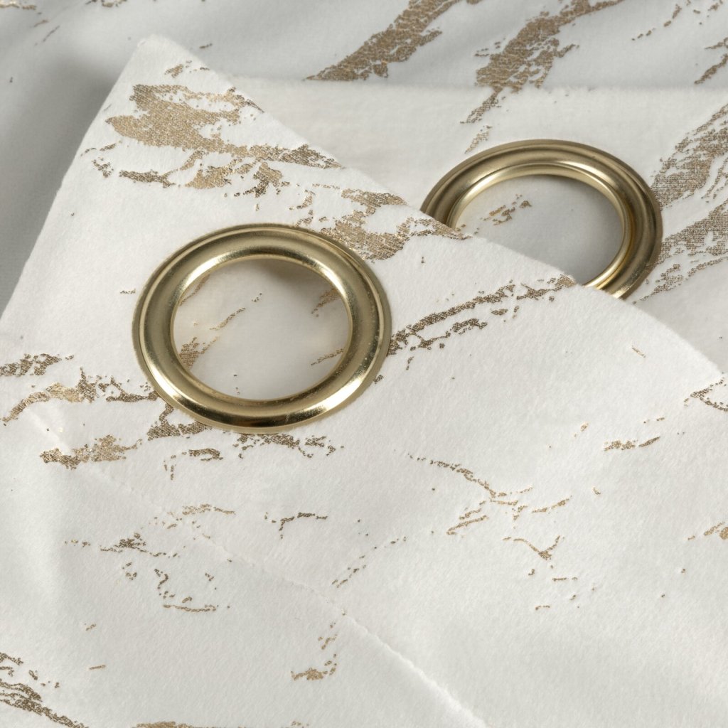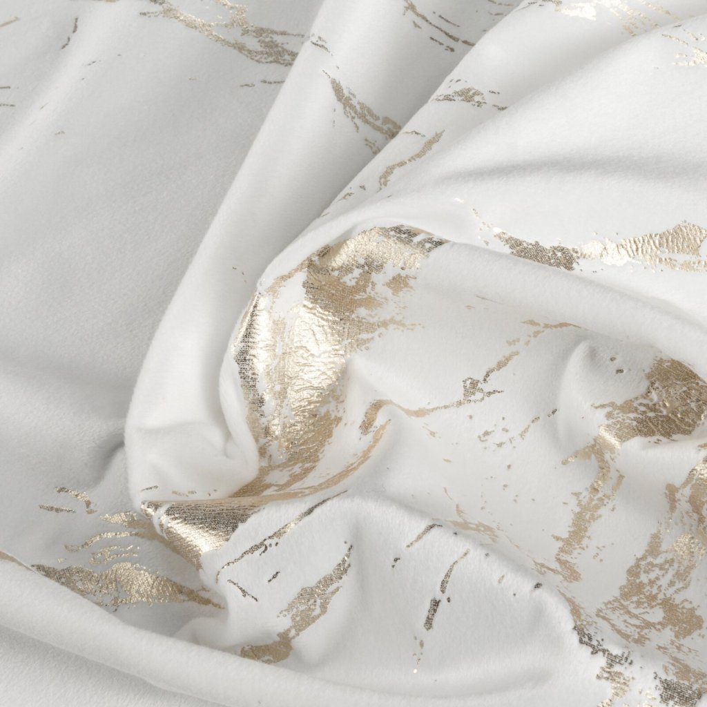 Hotový sametový závěs s lesklým zlatým potiskem, šířka: 140 cm, délka: 250 cm, barva: bílá, gramáž: 200 GSM, složení: 100% polyester.Doplňkové parametry