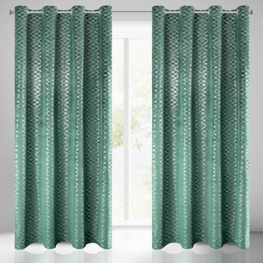 Sametový závěs se stříbrným potiskem, šířka: 140 cm, délka: 250 cm, barva: zelená, hmotnost: 200 GSM, složení: 100 % polyesterDoplňkové parametry